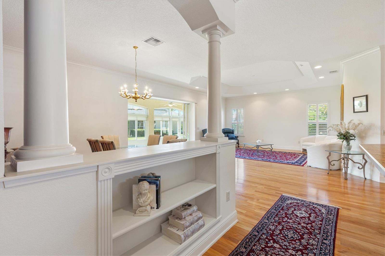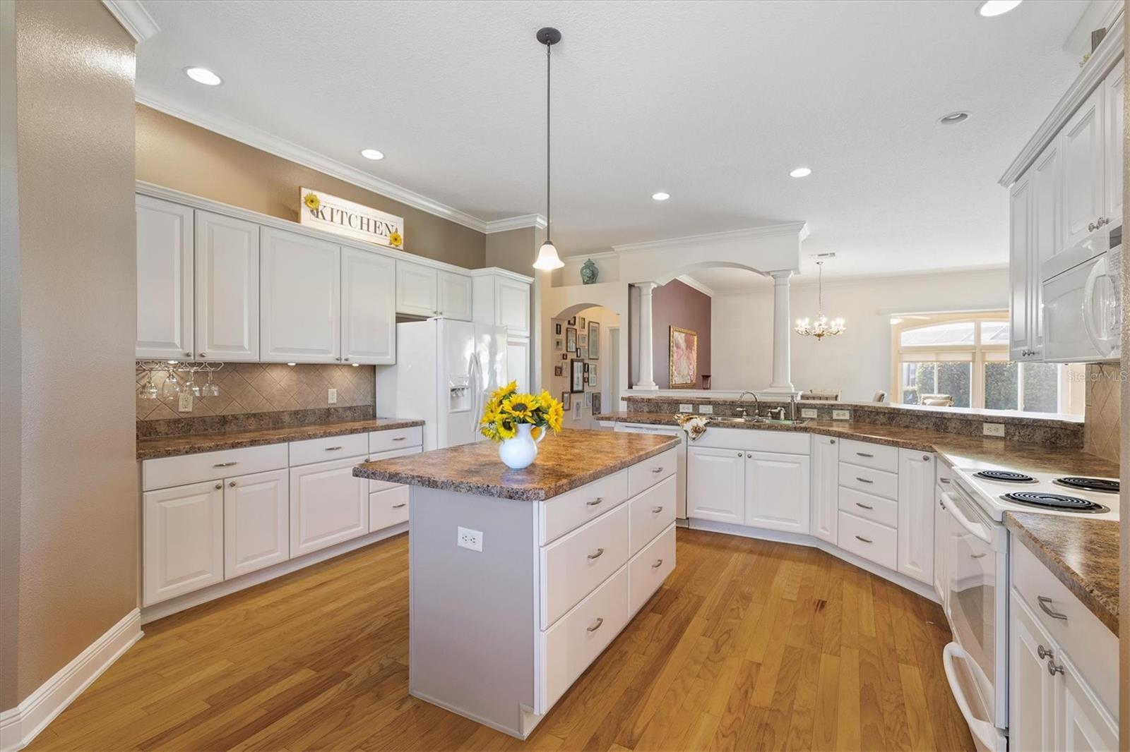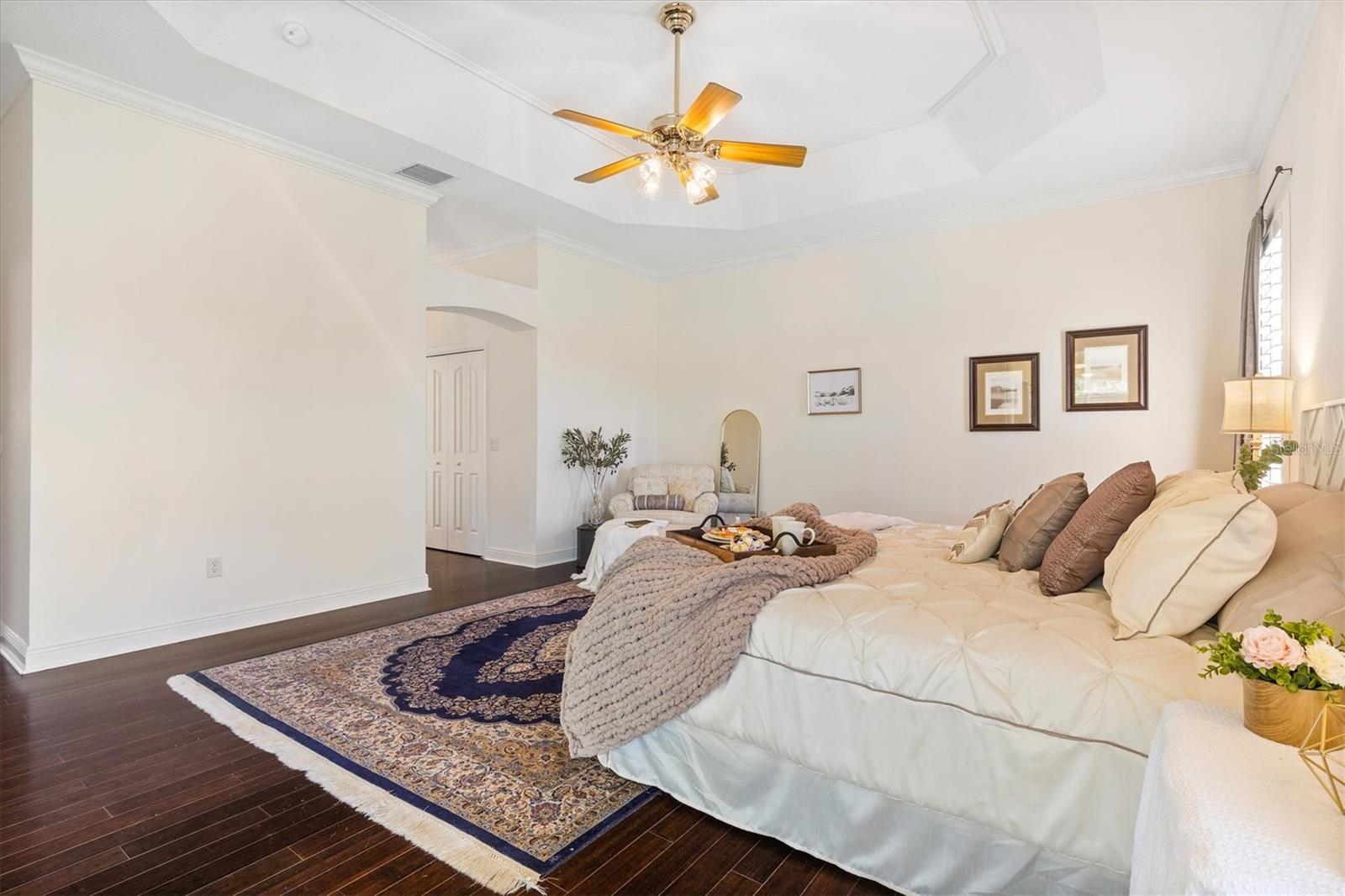 WOW!! NEW ROOF 2022. 100% Non-smoking, 100% Pet-free. A remarkable Home located in the gated *PREMIERE SERIES ONLY* Village of Bridgeport at Lake Sumter, For the AVID GOLFER this remarkable find next to PALMER LEGENDS CHAMPIONSHIP GOLF COURSE offers a quick 3- minute golf cart ride that will have you teeing off anytime. The GENEROUS 0.43-acre lot offers abundant space for customization, with infinite possibilities for an extra large pool, spa, outdoor kitchen or expanded lanai. This Premier 3 BEDROOM/2 BATH WILLIAMSBURG offers CURBSIDE APPEAL with COVERED FRONT PORCH featuring an OPEN AND SPLIT FLOOR PLAN complemented with HARDWOOD and CERAMIC TILE FLOORS throughout. The SPACIOUS OPEN KITCHEN boasts casual dining for 8 and a CENTRAL ISLAND with seating for 3. This open floor plan is accented with a formal dining room with ARCHED COLUMNS and living room that transitions to the lanai through STACKED FLOOR-TO-CEILING GLASS DOORS extending your interior entertaining space. Beautifully APPOINTED DETAILS THROUGHOUT include PLANTATION SHUTTERS, CROWN, BASEBOARD, WINDOW and DOOR MOLDINGS, HUNTER DOUGLAS HONEYCOMB BLINDS, HARDWOOD POCKET DOORS and much more. HIGH 10 FT. and 12 FT TRAY CEILINGS add elegance. The garage boasts a STEEL DOUBLE DOOR for multiple vehicles w/ separate golf cart garage, EPOXY FLOOR ATTIC ACCESS features additional space for storage or work bench with ample walk-around space. Experience luxury living in this PREMIER HOME with the ULTIMATE IN CONVENIENCE close to PALMER LEGEND’S CHAMPIONSHIP GOLF COURSE and a 4-minute golf cart ride to Lake Sumter Landing entertainment, your luxury PREMIER HOME embodies the quintessential Villages lifestyle. CALL TODAY TO SCHEDULE YOUR PRIVATE SHOWING.