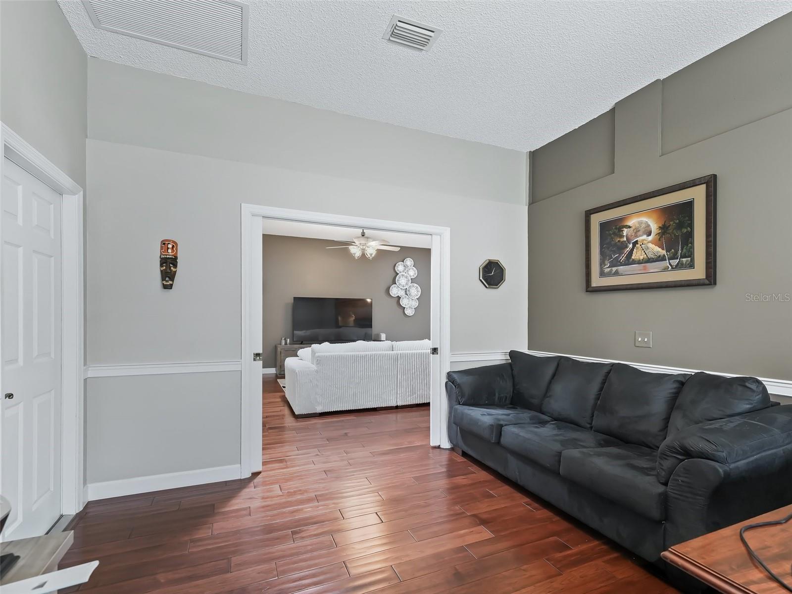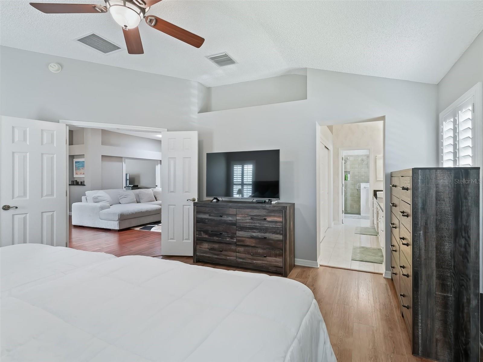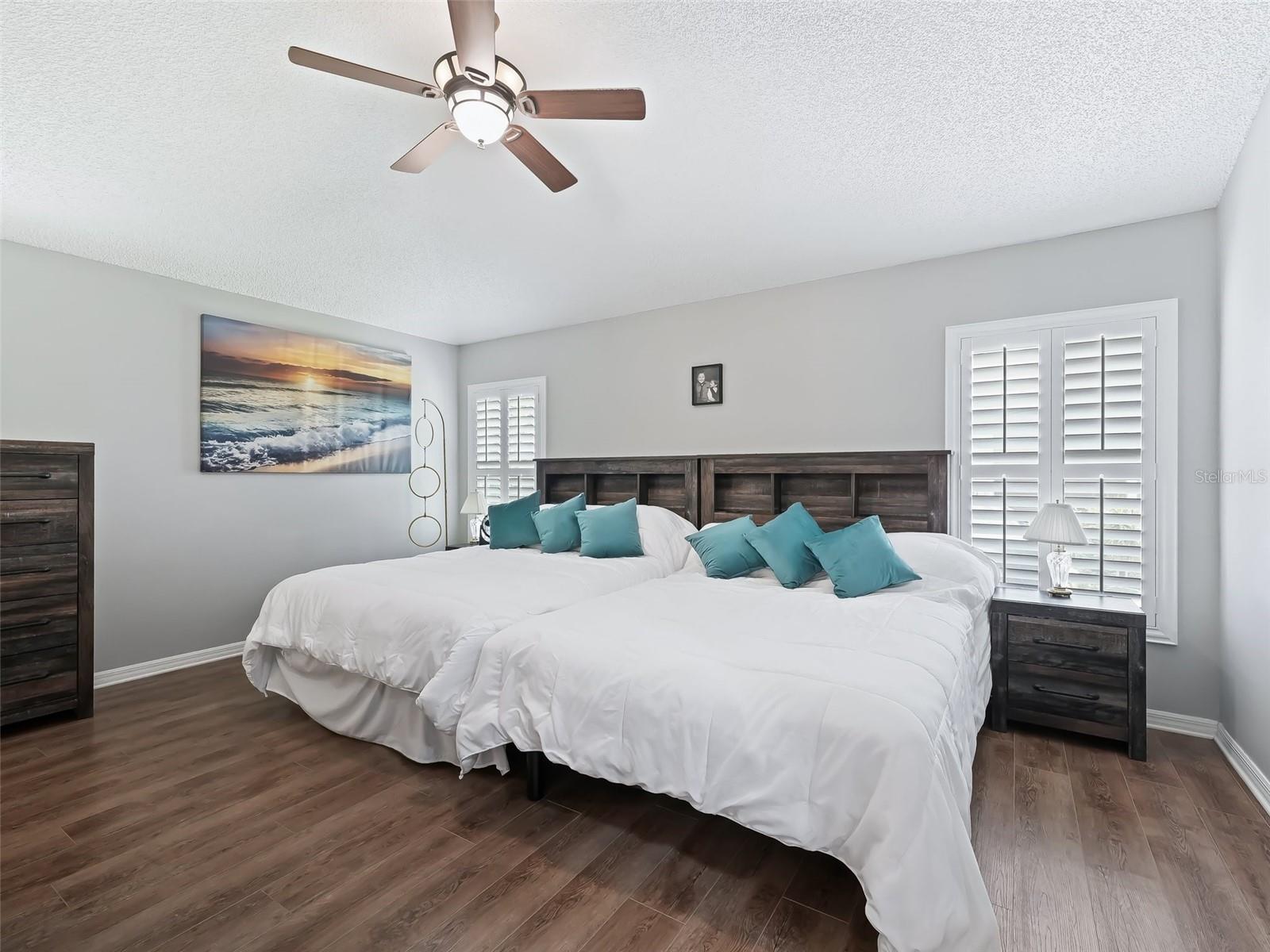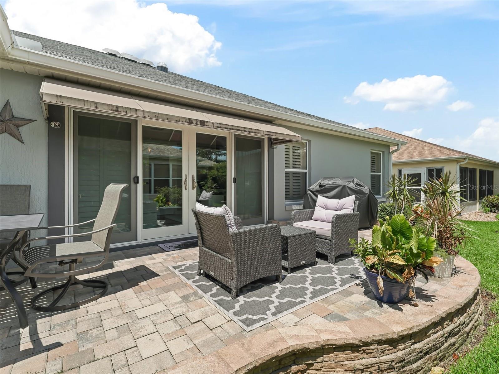 Welcome to this stunning "Grand Ficus" concrete block stucco home with elegant exterior stone accents and a charming screened-in front porch. As you arrive, you’re greeted by a paver drive/walkway and beautifully raised landscaping beds that add to the home’s already beautiful curb appeal. Enter through leaded glass double doors to the spacious foyer with a convenient closet that sets the tone for the home’s thoughtful design. The 10-foot vaulted ceilings create an airy, open atmosphere throughout the main living space. This is a 3-bedroom, 2-bath home, one of which is a versatile room without a closet, and perfect for use as a den or an office. Engineered hardwood flooring flows through the main living areas, complemented by architectural ledges that add a touch of character. The kitchen is a chef’s dream, featuring stone countertops, a full stainless steel appliance package with a gas range, a stylish tiled backsplash, and a custom hood above the range. Pendant lights illuminate the breakfast bar, which is accented with a tiled front. An eating area off the kitchen offers dining space, and a unique tower cabinetry design with a desk and the window above brings in extra natural light. The inclusion of a wine cooler adds a luxurious touch. The master suite is a true retreat, accessible through double doors. It includes a spacious walk-in closet, a linen closet, and a beautifully appointed bathroom with stone countertops, above-counter sinks, a walk-in shower, and upgraded faucets and fixtures. On the guest side of the home, you’ll find a large bedroom with a charming bumped out bay window, and a stunning renovated bathroom featuring a beautiful walk-in, tiled shower and gorgeous stone countertops! A large hall closet, equipped with washer/dryer hookups, adds extra convenience. The third room, equipped with double pocket doors, is ideally suited for an office or flex space. In addition, the Florida room, accessed through French doors, offers year-around climate control and can serve as another office, living area or exercise room. This home offers many options and is filled with beautifully upgraded fixtures and thoughtful details. Additional upgrades include - Plantation Shutters, Solar Tubes, a Brinks Camera System, Surge Protection, On Demand Hot Water Heater, an Automatic Screen Garage Door, and a lovely rear Paver Patio. Don’t miss the opportunity to make this exceptional property your new home! Schedule your private viewing now.