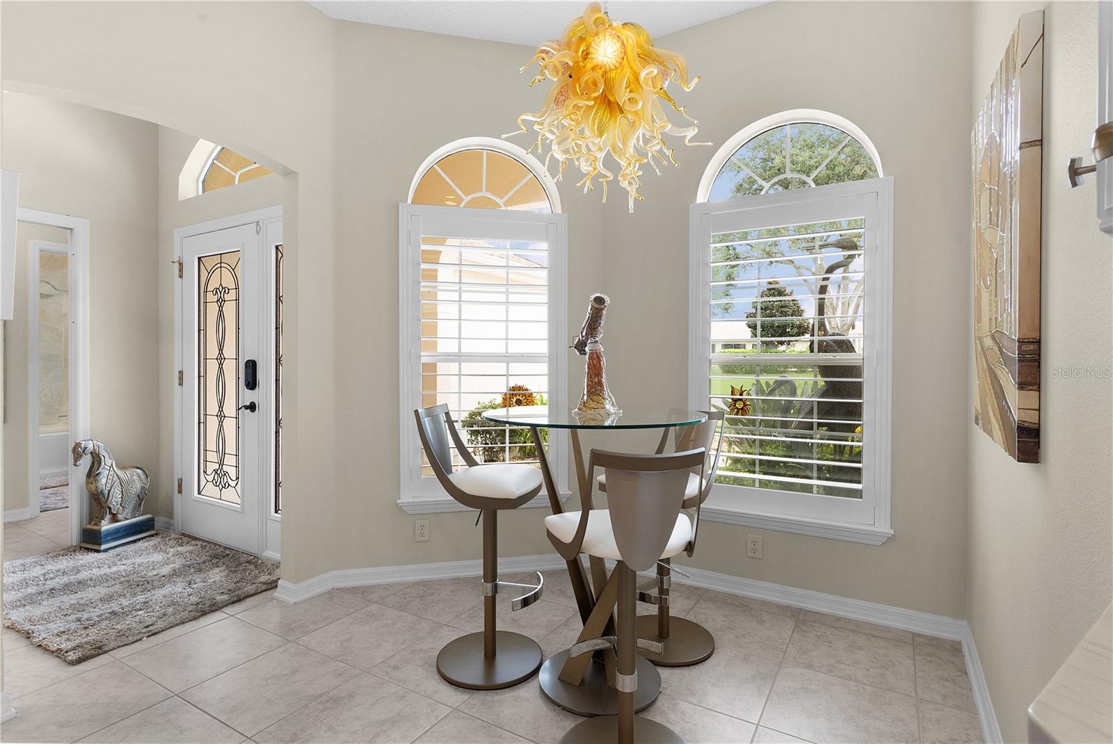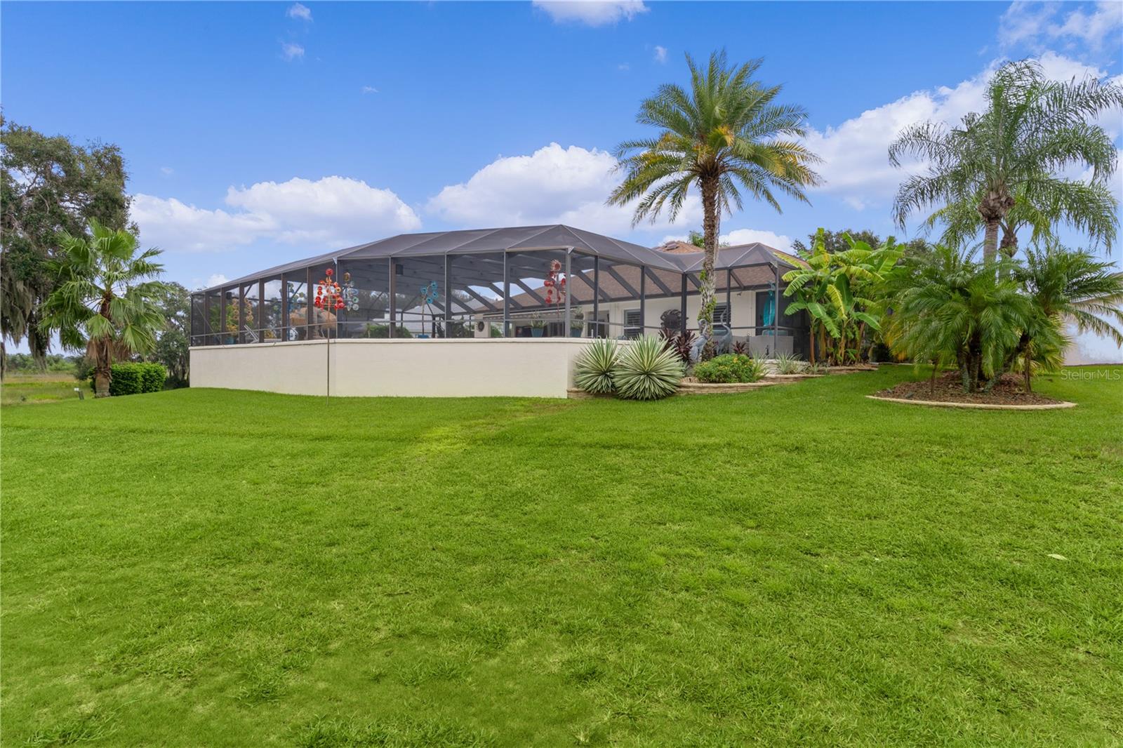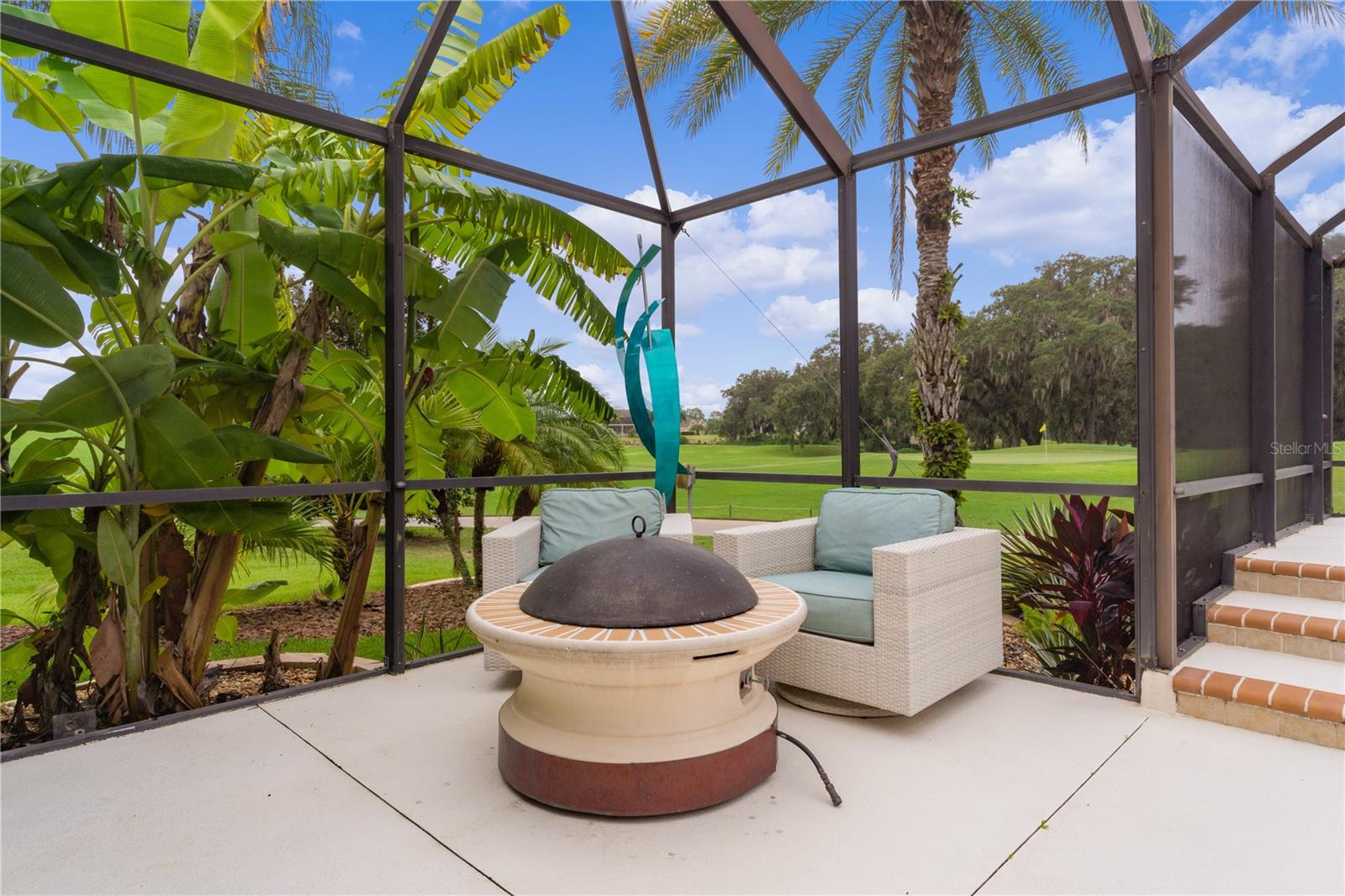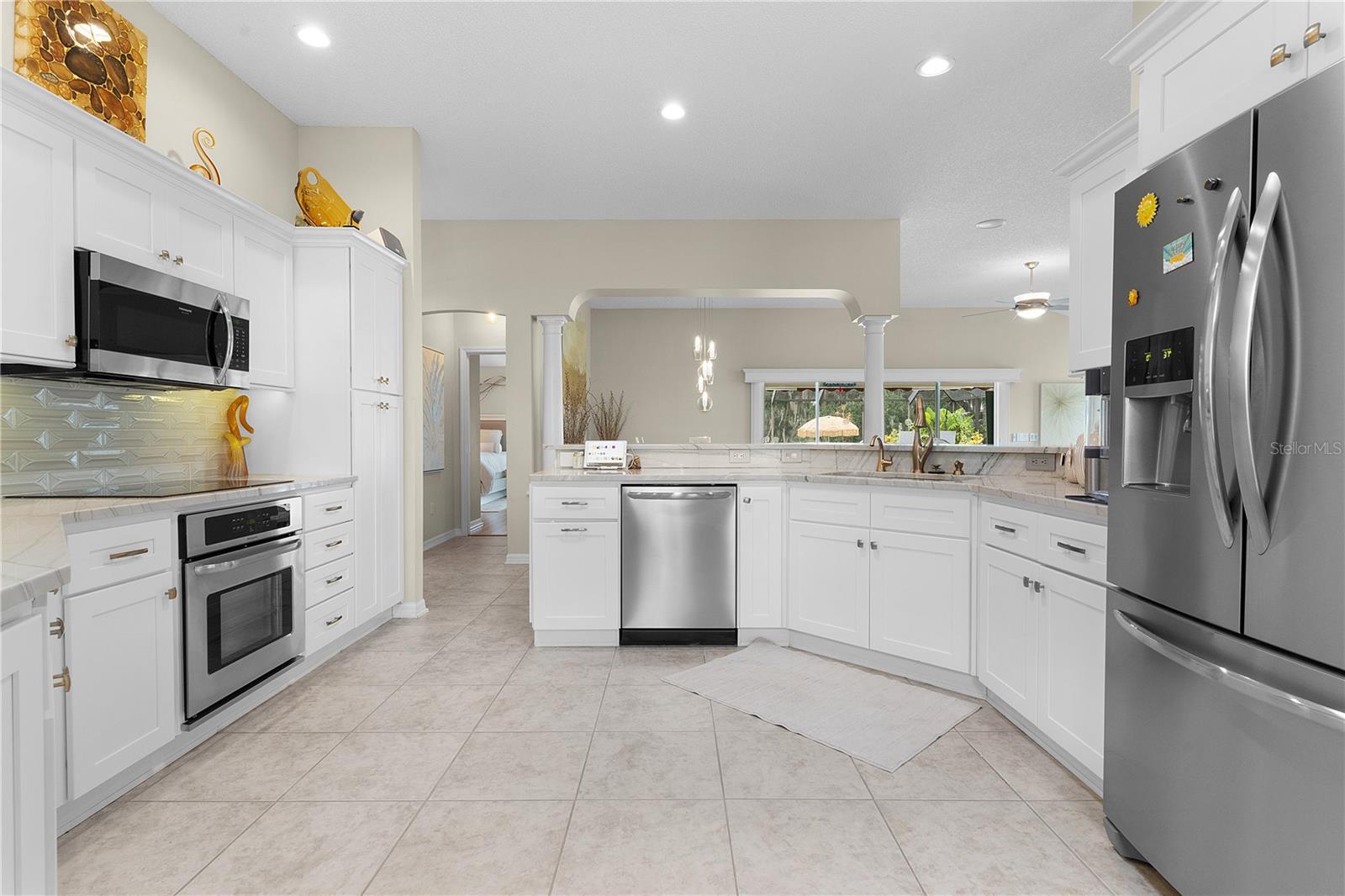 ~LOWER PRICE!~ ~BOND PAID~ ~POOL HOME~ ~ON GOLF COURSE~ ~2023 ROOF~ Step into the essence of luxury with this stunning 3/2 GARDENIA with POOL located in the sought-after Village of SUNSET POINTE near LAKE SUMTER LANDING! From the moment you arrive, you’ll be captivated by the GORGEOUS LANDSCAPING featuring PALM TREES, rocks, brick pavers, and a meticulous PAVER driveway and walkway, leading you to a grand entrance adorned with a LEADED GLASS FRONT DOOR. This house has been COMPLETELY TRANSFORMED! The HIGH VAULTED CEILING and OPEN-CONCEPT design offers a BREATHTAKING VIEW of the HIBISCUS GOLF COURSE HOLES #1 and #9 while looking over the top of the OVERSIZED and PRIVATE SALTWATER POOL and SPA with WATERFALL, creating a seamless transition between indoor and outdoor living. The POOL is unique in that the back wall of it completely shields you from the golf course, keeping you concealed and PRIVATE while floating in comfort! Outdoor entertainment is a breeze with a sprawling 28-FOOT LANAI, complete with an OUTDOOR KITCHEN with GRANITE countertops. The concrete textured flooring extends through the birdcage area, providing a fabulous space for hosting gatherings or simply relaxing while enjoying views of the GOLF COURSE and SERENE PRESERVE. There is OUTDOOR and LANDSCAPE LIGHTING throughout the backyard to show off that view at night. What makes this home even more unique? Step into the 306 square foot ADDITION which is PERFECT for a WORKSHOP, OFFICE or CRAFT ROOM – you won’t find a better one!. To make sure you have plenty of light while you work, the room is lined with PLENTY OF WINDOWS, 2 SKYLIGHTS plus a MINI-SPLIT AIR CONDITIONER to keep you comfortable! The kitchen is a chef’s dream, featuring NEW CABINETS, a breakfast bar, NEW GRANITE countertops, NEW STAINLESS-STEEL APPLIANCES, under and over-cabinet lighting, a SOLAR TUBE for natural light, and ceramic tile floors. There is even a REVERSE OSMOSIS under the sink that feeds the refrigerator as well as a WATER PURIFIER and SOFTENER. Brightness abounds with the beautiful light TILE BACKSPLASH which carries through to the front of the BREAKFAST BAR! The living room and dining room have HARDWOOD FLOORS that flow through the remainder of the home! The primary bedroom is a private retreat, boasting a stunning CEILING FAN, 2 WALK-IN CLOSETS and PLANTATION SHUTTERS. The en-suite bath is a SPA-LIKE SANCTUARY with double sinks, a TILE WALK-IN SHOWER with a LARGE LIT UP CUTOUT, MULTIPLE SHOWER HEADS and a stylish BENCH, GRANITE countertops, a SOLAR TUBE and ample cabinet space. Guests will feel right at home in the spacious 2nd and 3rd bedrooms, with a beautifully appointed guest bath with a VESSEL SINK, GRANITE countertops, NEW MIRROR, TILE TUB/SHOWER COMBO with 3 lit cut-outs and a SOLAR TUBE just steps away. The garage is a homeowner’s dream, offering 2-car capacity plus a GOLF CART GARAGE, attic stairs and EPOXY floors. The INSIDE LAUNDRY ROOM has plenty of cabinet storage and an LG washer and dryer. There are PLANTATION SHUTTERS, UPDATED LIGHTING and UPDATED CEILING FANS throughout as well as a NEW POOL HEATER. The ROOF is 2023, HVAC is 2005 and the HOT WATER HEATER is 2014. This home is close to the CANE GARDEN Country Club, HIBISCUS Rec Center and the SUNSET POINTE NEIGHBORHOOD POOL. In addition, you are minutes away from LAKE SUMTER LANDING and close to 466A for your choice of dining, shopping & medical facilities!