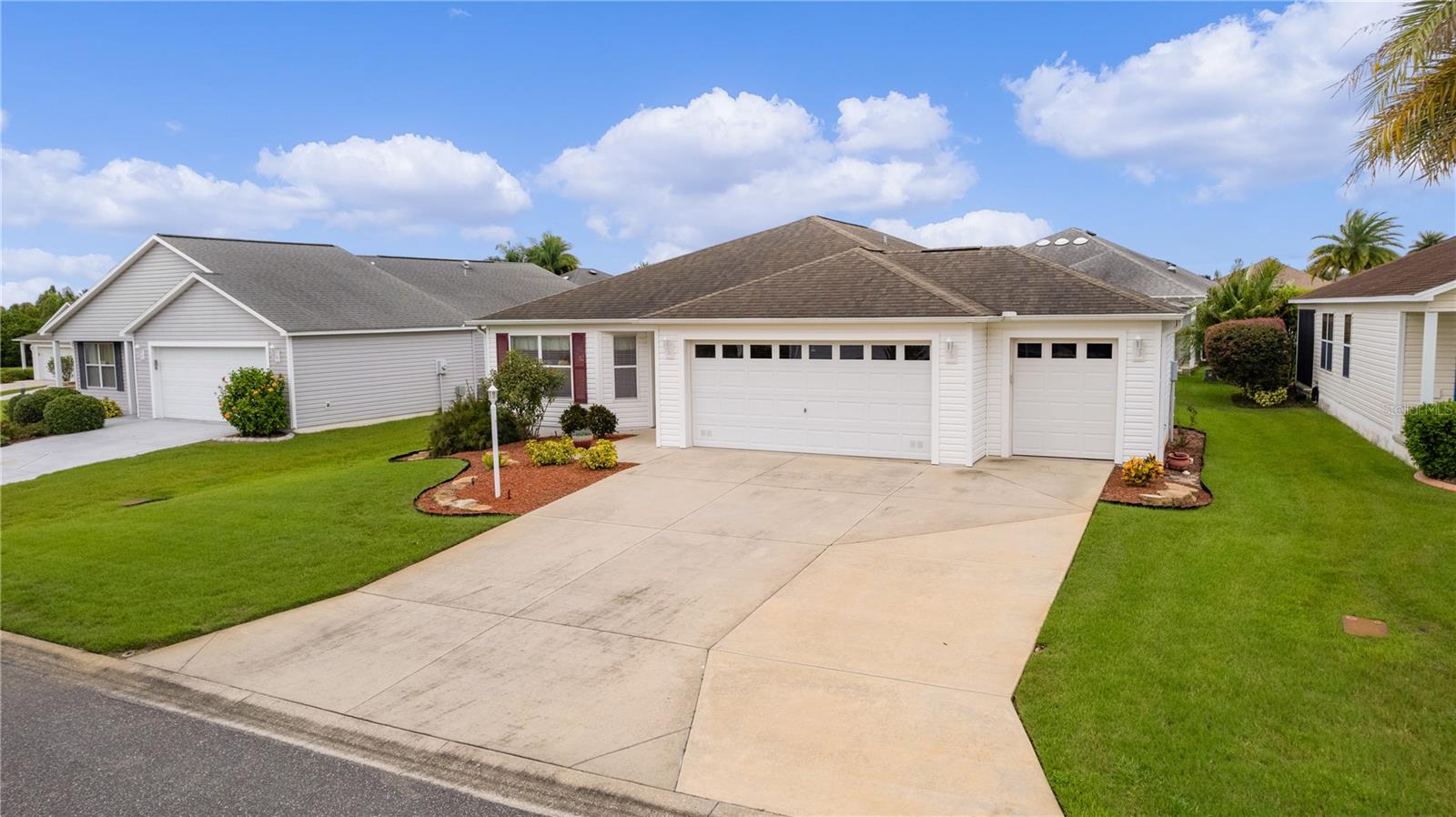 NOW AS OF May 25, This IS A Complete TURNKEY WITH YAMAHA GOLF CART PRE-RENTED February and March 2026 for $5500/month. That's $11,000 income for you. Bond Paid! No carpet! Enter this colorful Seabreeze II home through a beautiful art-glass front door with side lens. No need for a key, the exterior doors have electronic locks. At over 1500 square feet, this newly painted quaint home has an open floor plan with an island in the kitchen and extra cabinets below. Stainless steel appliances with French four door ridge with ice/water dispenser. No popcorn ceilings add to her charm. The 10 x 20- foot lanai is enclosed with glass panels over the screens. There is an additional ~8 x ~20- foot paver patio for outside grilling, etc. All furnishings down to the utensils are included in this TURNKEY. The garage is large, approximately 24 x 28 feet with an additional golf cart garage door. The golf cart garage door has an added feature: remote controlled screen in lieu of garage door to keep the garage comfortable. All three bedrooms have closets, and the front bedroom has a murphy bed with cabinets built it in along with more cabinets and a custom built-in desk. Tasteful window treatments. Centrally located. So, how about 13 minutes to Sumter Landing by golf cart…17 minutes to Brownwood and only 22 minutes by golf cart to Spanish Springs…! Very close to Sterling Heights Rec Center where the only 12-foot snooker table in The Villages is. Southern Star and Yankee Clipper Executive golf courses are there also…one of the few executive courses to have two par four holes. On a quiet street with great ceramic planked (~6inch by~28inch) floors. Hear the ducks just beyond the nearby Cul de sac on the pond. This is also a superb investment property. It was rented January through March 2025 at $5,500/month.
