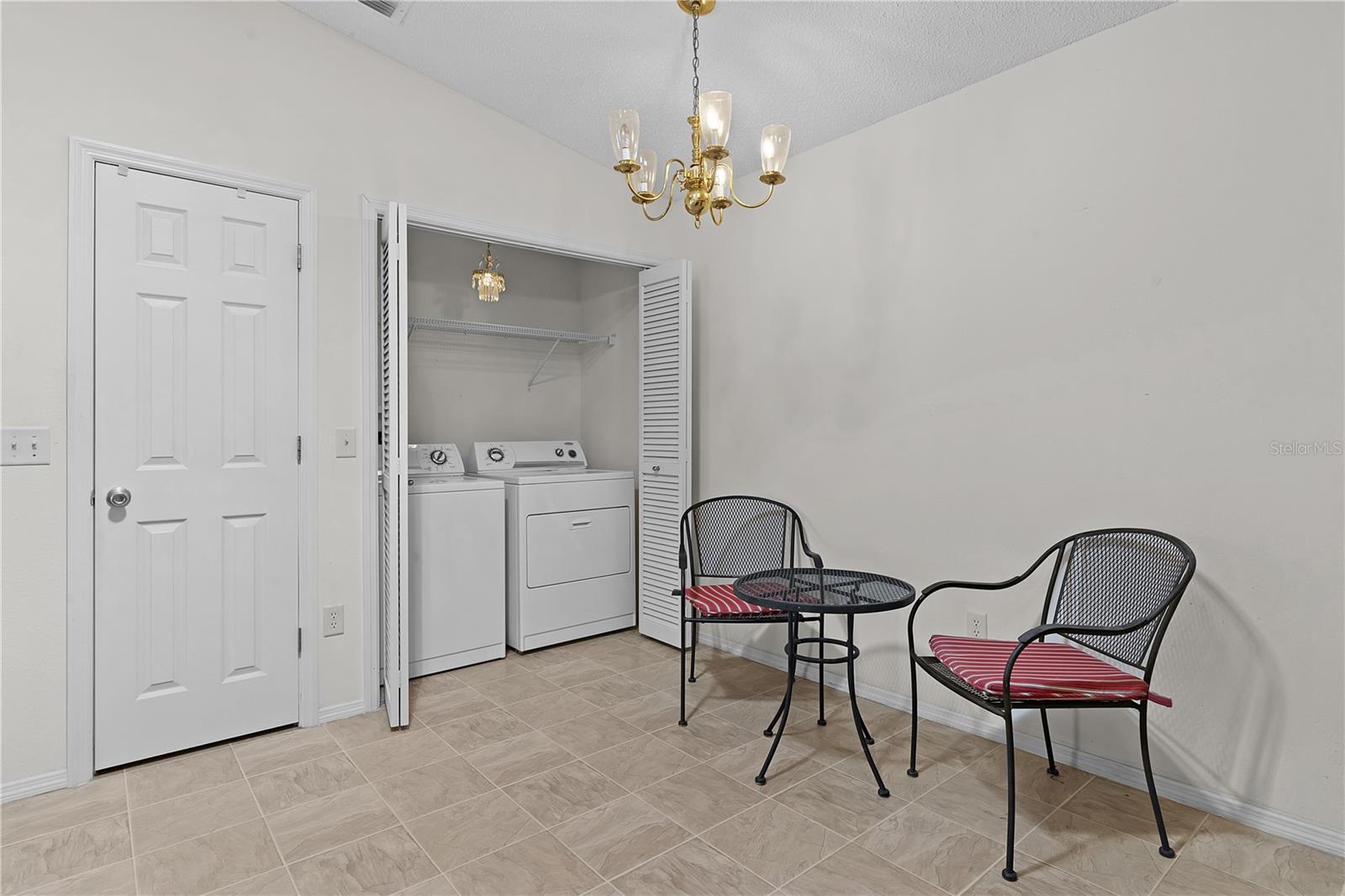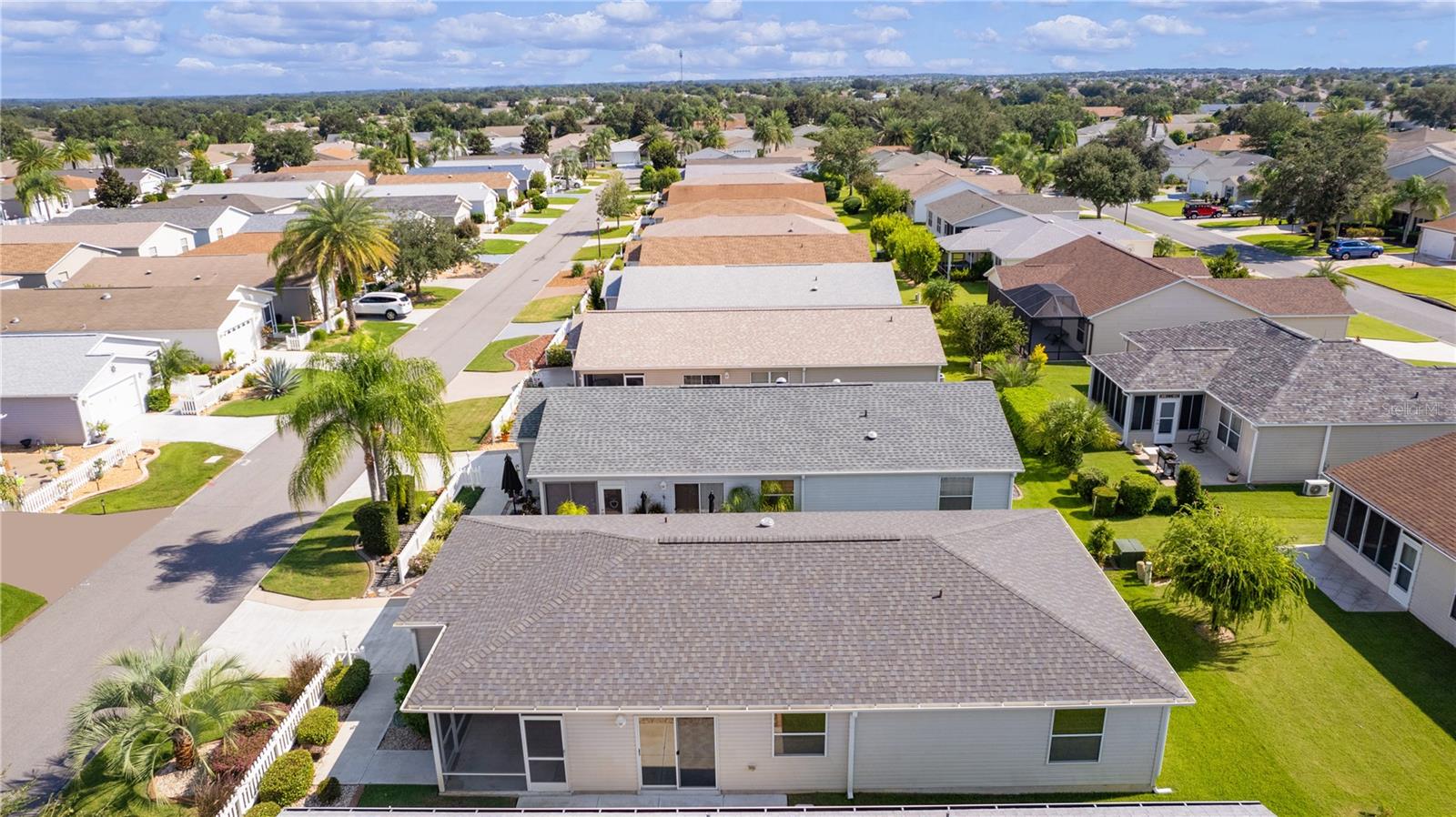 Welcome to this delightful 2-bedroom, 2-bathroom Colony Patio Villa, nestled in the heart of the sought-after Village of Duval. Village of Duval is perfectly nestled between the 6's! Offering a serene, low-maintenance lifestyle and low bond, this home is ideal for enjoying everything the community provides. Step inside to find a bright and airy open floor plan with vaulted ceilings, plenty of natural light and interior laundry. The kitchen features ample cabinet space, solar tube and a convenient breakfast bar perfect for casual dining. The spacious living and dining areas make entertaining a breeze. The master suite boasts a large walk-in closet and en-suite bathroom, while the guest bedroom is perfect for visitors or a home office. Enjoy peaceful mornings on the screened lanai, or take a short golf cart ride to Seabreeze Regional Recreation Center, other nearby recreation centers, pools, and golf courses. Havana Country Club and Cane Garden Country Club and golf courses just mere minutes away. This home has been upgraded with a new HVAC system (2020), ensuring year-round comfort and energy efficiency. In addition, this home has a newly installed roof in 2022. With both of these major upgrades, you can rest easy moving into your new home. This home’s prime location offers easy access with a 10-15 minute golf car ride to Lake Sumter Landing and Brownwood Paddock Square for shopping, dining, and entertainment. In addition to all The Villages provides, there are many shopping and dining opportunities close by on County Road 466A. Whether you're looking for a seasonal getaway or a full-time residence, this villa is ready to welcome you home!