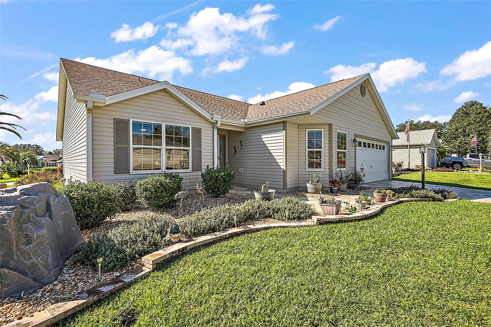 Welcome to your dream 3/2 Wisteria model on a large CORNER LOT located in the beautiful Village of Woodbury. BOND PAID!! This stunning home boasts a full two-car garage with PVC Flooring, CROWN MOLDING throughout, CUSTOM kitchen and bathrooms, and an entertainer's dream lanai. The enhanced landscaping features a border wall and stone and the painted driveway creates a warm welcome as you approach the home. As you enter, you are greeted by an expansive living room with a tray ceiling and double ceiling fans, creating an elegant yet inviting atmosphere. The open floor plan seamlessly connects the living space to the heart of the home. The kitchen is a chef's delight, featuring GAS COOKING, breakfast bar, STAINLESS STEEL appliances, and stylish CUSTOM backsplash that complements the UPGRADED WHITE cabinetry. The cabinetry has been extended to include a pantry and coffee bar perfect for those early mornings. The large dinette area is framed by ample windows, allowing natural light to flood the space, making it perfect for casual dining or entertaining guests. Retreat to the primary bedroom, where you'll find a ceiling fan for added comfort, an en suite bathroom with double pedestal sinks, handicap rails, and an EXPANSIVE walk-in closet that provides plenty of storage. The primary bath is a spa-like experience with a large walk-in shower, offering both luxury and functionality. Bedrooms 2 and 3 each feature ceiling fans and built-in closets, providing comfort and convenience for family members or guests. A thoughtfully designed guest bath includes a walk-in shower and vanity, ensuring ample space for your guests’ needs. Step outside to the exterior oasis highlighted by a LARGE glassed-in lanai, perfect for enjoying your morning coffee or unwinding in the evenings while taking in the serene views of the surrounding landscape. Updates include: Roof: 2021, HVAC: 2024, Water Softener: 2023, Kitchen Sink Filtration System: 2023. The village of Woodbury is conveniently located five miles from Spanish Springs Town Square; Close to First Responder Recreation Center & Championship Golf Courses; multiple pools, golf, and pickle ball; and 441 with an abundance of shopping, restaurants, banks, and medical. PLEASE WATCH OUR WALKTHROUGH VIDEO OF THIS BEAUTIFUL HOME and call today to schedule your Private Showing or Virtual Tour!