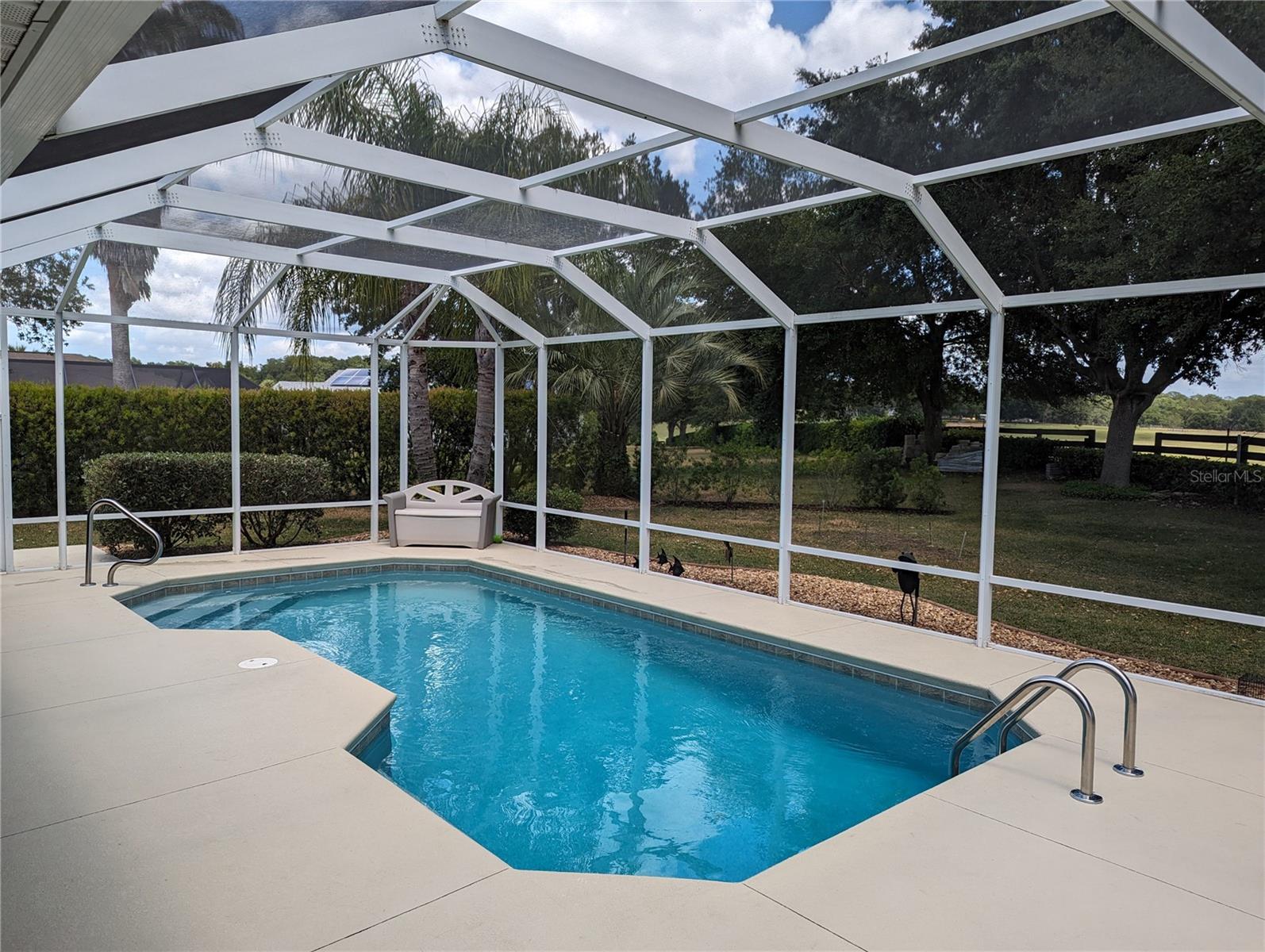 Location Location Location. This stunning Designer Lantana model home is situated in the highly sought-after Village of Hadley, at the end of a peaceful cul-de-sac. The property boasts an oversized pie-shaped lot with privacy and incredible views of a tranquil pasture. Enjoy outdoor living at its best with a private, heated T&D pool, surrounded by lush landscaping for seclusion. The Summer Kitchen/Bar features marine-grade cabinets and elegant granite countertops, perfect for entertaining. The oversized 2-car garage offers additional space, including a deep bay for a golf cart, and there's also attic storage measuring 8' x 22'. Inside, the home includes an expanded Master Bedroom closet (11' x 6'6"), professionally designed for added convenience. The luxurious Master Bath features a Roman shower. The front guest room is currently set up as an office with twin Murphy beds for versatile use. The kitchen is a chef’s dream with cabinetry and beautiful granite countertops, oak cabinetry has been added in the laundry room. Throughout the home, you'll find crown molding, 10-foot ceilings, a central vacuum system, and four solar tubes that bring in abundant natural light. This home has it all—comfort, style, and privacy. Don’t miss the chance to see it for yourself! Bond Paid & A Must-See!