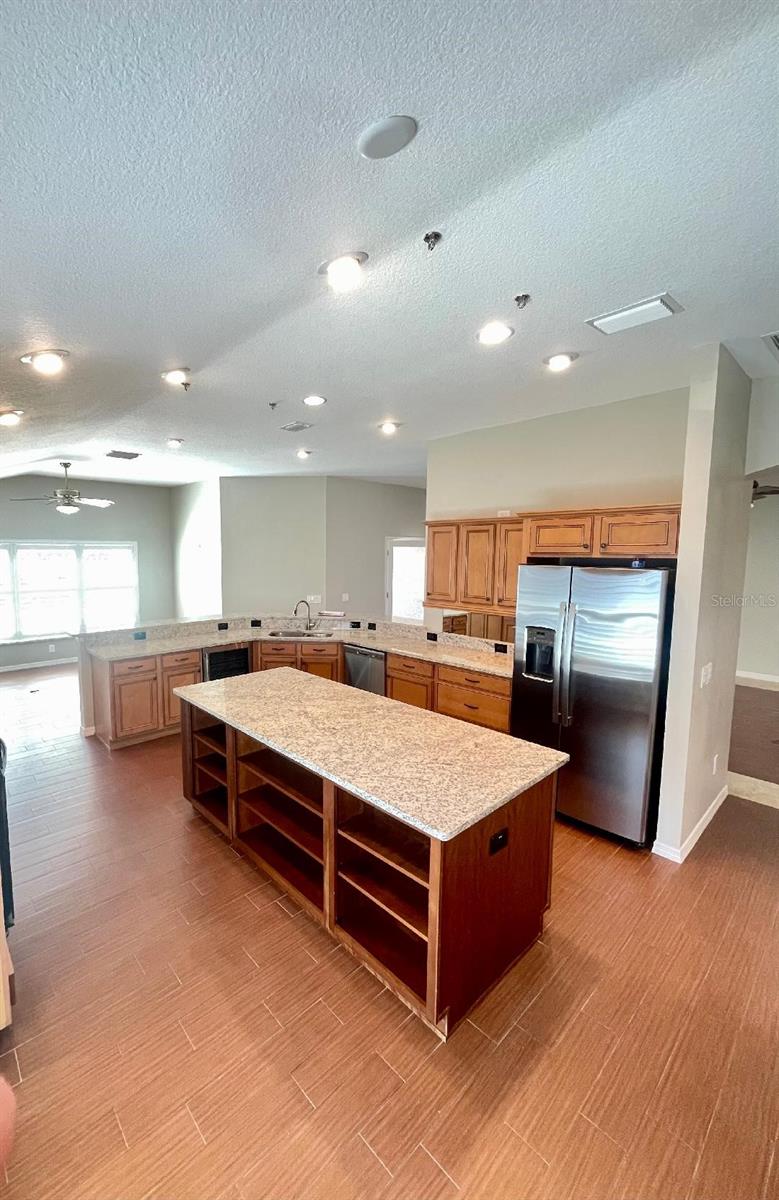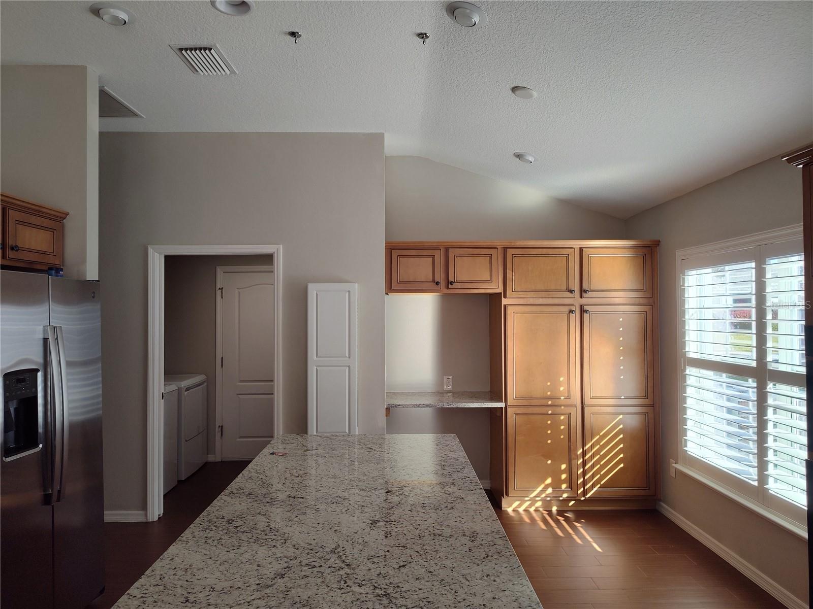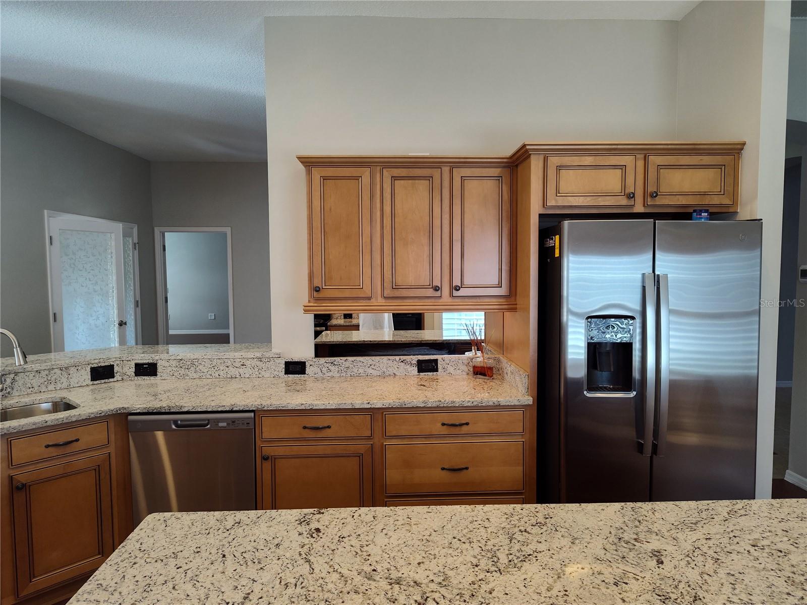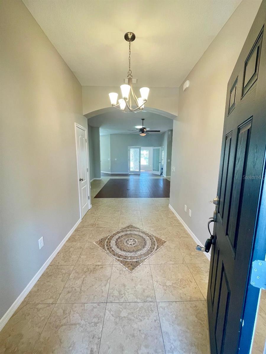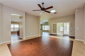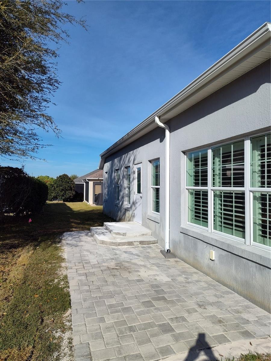 STOP! AND SEE OUR NEW BACK PATIO WITH NEW REAR ACCESS DOOR! BOND IS PAID!! HVAC AND HWH REPLACED IN 2022. This Beautiful 3 bedroom, 2 bathroom (Holly Model) residence is featuring ceramic tile flooring, plantation shutters, solar tubes, French doors, soaring ceilings, complete gutter system, attic ventilation and so much more! The standout highlight of this home is it's expansive Chef's kitchen, boasting maple cabinetry, a wine/beverage cooler, sizeable breakfast bar, dining area and custom center island, A truly remarkable kitchen you really have to see! The dining area flows into a generous living space adorned with a custom ceiling fan and custom French doors. The opulent Master bedroom suite showcases dual walk-in closets vaulted ceiling and an ensuite bathroom with double vanities, linen closet, separate toilet room and spacious walk in shower. Bedroom 2 features another walk-in closet and ample space for another king bed, while Bedroom 3 offers a vaulted ceiling and another double closet. Inside, there is convenient indoor laundry room complete with laundry sink and built in cabinetry, perfect for year round convenience. Situated in Gilchrist, conveniently located just south of CR466A between Lake Sumter Landing and Brownwood Paddock Square, offering easy access to many Championship and Executive golf courses, Eisenhower regional rec Center, Gilchrist Neighborhood Rec Center, Bradenton Pool and Rec Center, as well as shopping and dining options at Pinellas and Colony Plazas. Schedule your viewing today and seize the opportunity!