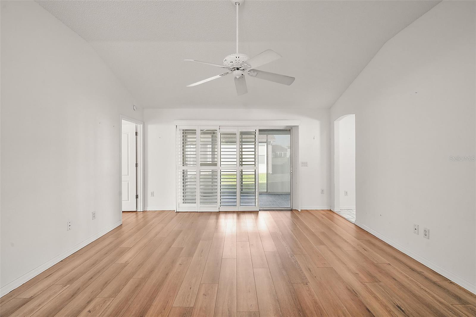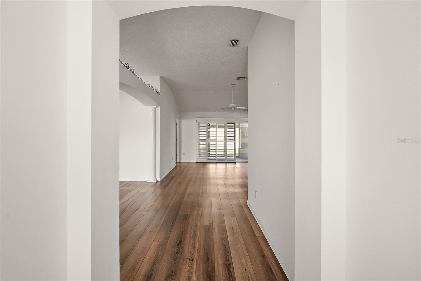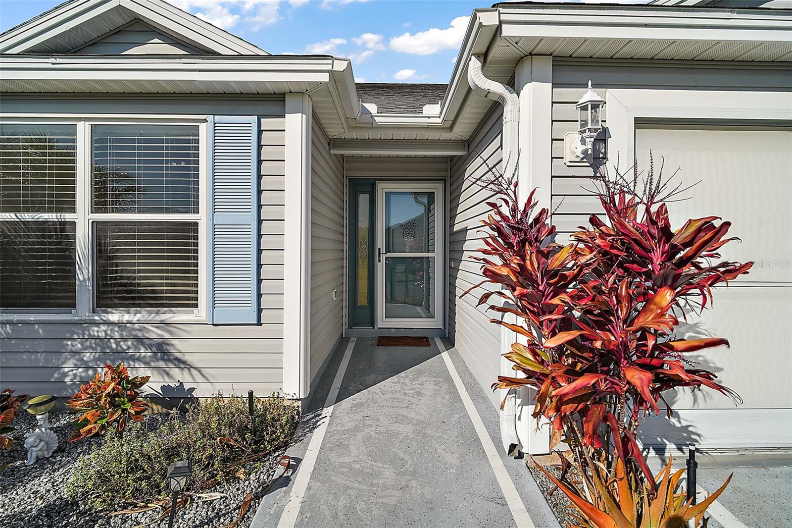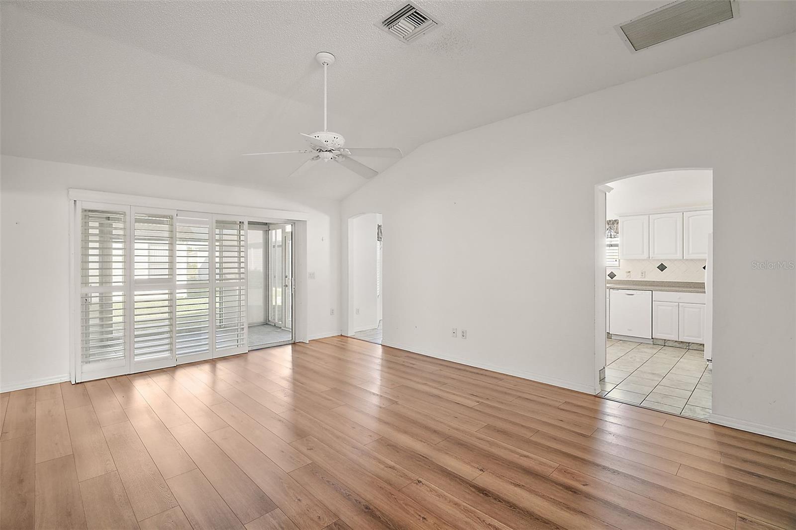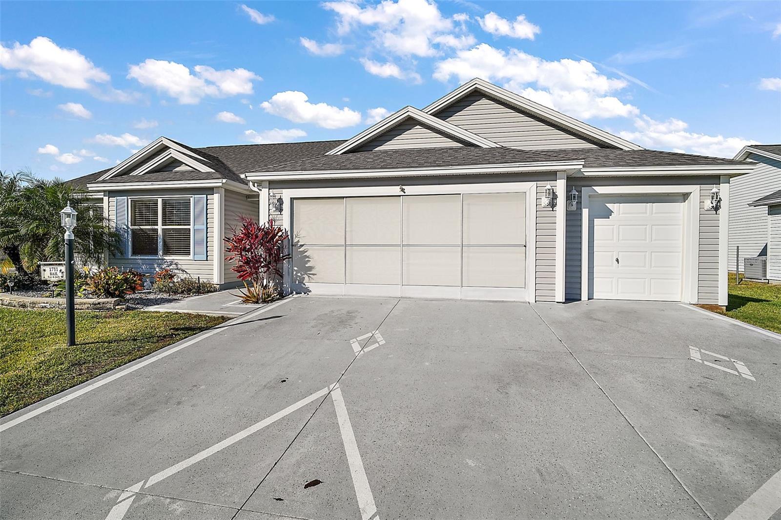 One or more photo(s) has been virtually staged. Nestled in the desirable Village of Santo Domingo, this charming 3/2 Whispering Pine home with NO BOND offers a FULLY ENCLOSED lanai, a STUNNING kitchen, and UPDATED LANDSCAPING creating a harmonious blend of style and functionality. The front exterior boasts a beautifully decorative painted driveway, NEW landscaping, a two-car + GOLF CART GARAGE, and a screened garage door. Inside, the VAULTED CEILINGS in the living room create an airy ambiance, complemented by architectural features, sliding doors to the lanai, and elegant arched doorways leading to the kitchen. From the living room, arched openings with decorative pillars introduce the formal dining room, perfect for gatherings. The kitchen shines with tile flooring, a cozy dinette framed by bay windows, recessed lighting, white appliances and cabinetry, and a custom TILE backsplash. The primary bedroom, privately located in the back of the home, features vaulted ceilings, a spacious walk-in closet, and an en-suite bathroom with dual sinks, extended vanity, large mirror, and TILED walk-in shower with a glass door. The second bedroom includes a built-in closet; while the versatile third bedroom, ideal as an office or hobby room, showcases FRENCH DOORS but no closet. The guest bathroom provides a tiled tub/shower combo and single vanity. Relax in the GLASS-ENCLOSED lanai with ceramic tile flooring, or step outside to the quaint patio for fresh air. The living areas feature stunning Luxury Vinyl Plank (LVP) flooring, while the wet areas are beautifully finished with tile. Additional updates include a new HVAC system in 2020, a roof replacement in 2015, and a new water heater in 2022, ensuring peace of mind and modern efficiency. Don’t miss your opportunity to make this exceptional home your own! The village of Santo Domingo is conveniently located in SUMTER COUNTY between Lake Sumter Landing and Spanish Springs Town Square; close to Glenview Country Club & Championship Golf Course; Savannah & Hacienda Regional Recreation Centers; multiple pools, golf, and pickle ball courts; and both County Road 466 and Highway 441/27 with an abundance of shopping, restaurants, banks, medical, and more. PLEASE WATCH OUR WALKTHROUGH VIDEO OF THIS BEAUTIFUL HOME and CALL TODAY to schedule your Private Showing or Virtual Tour!