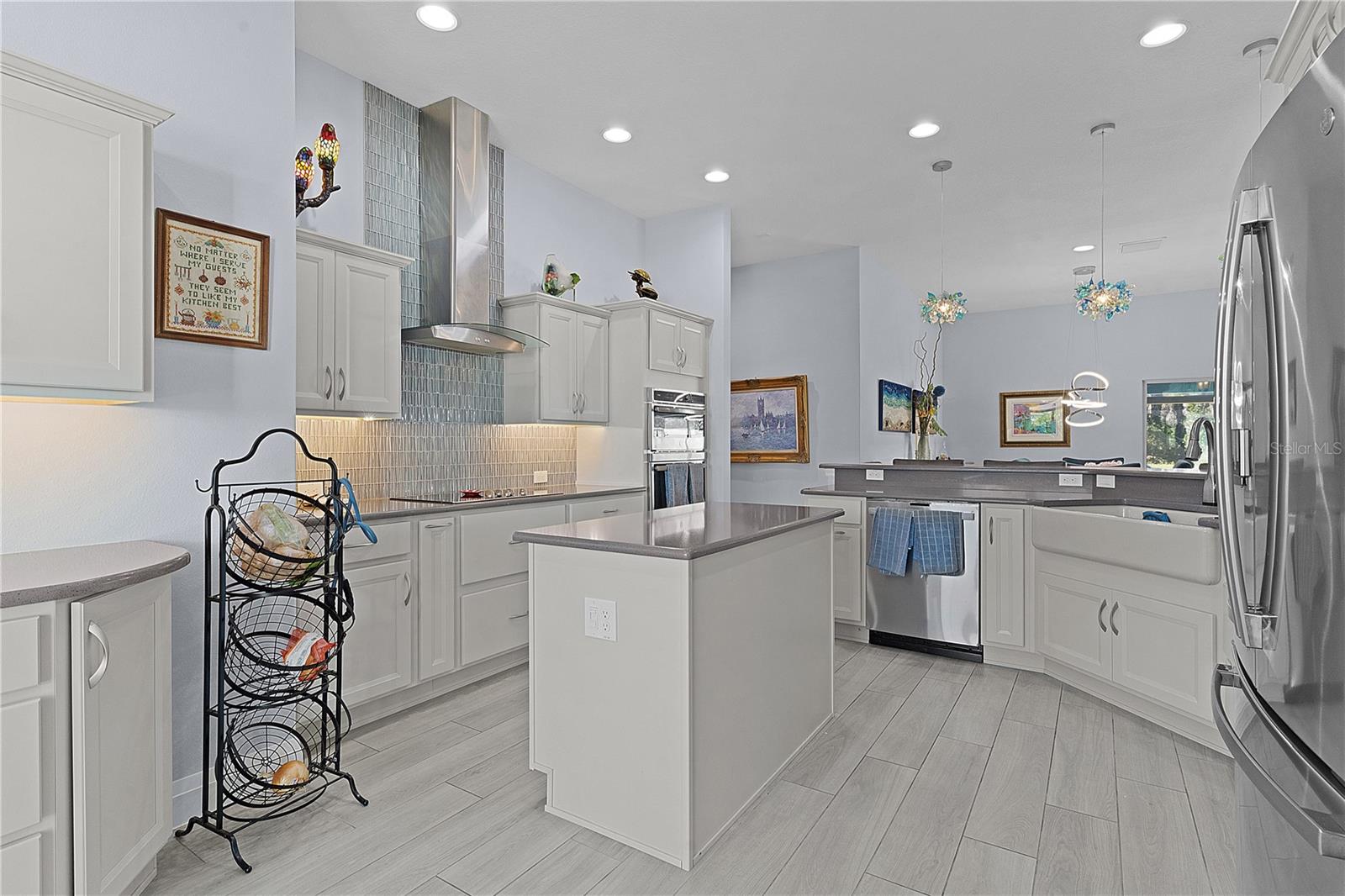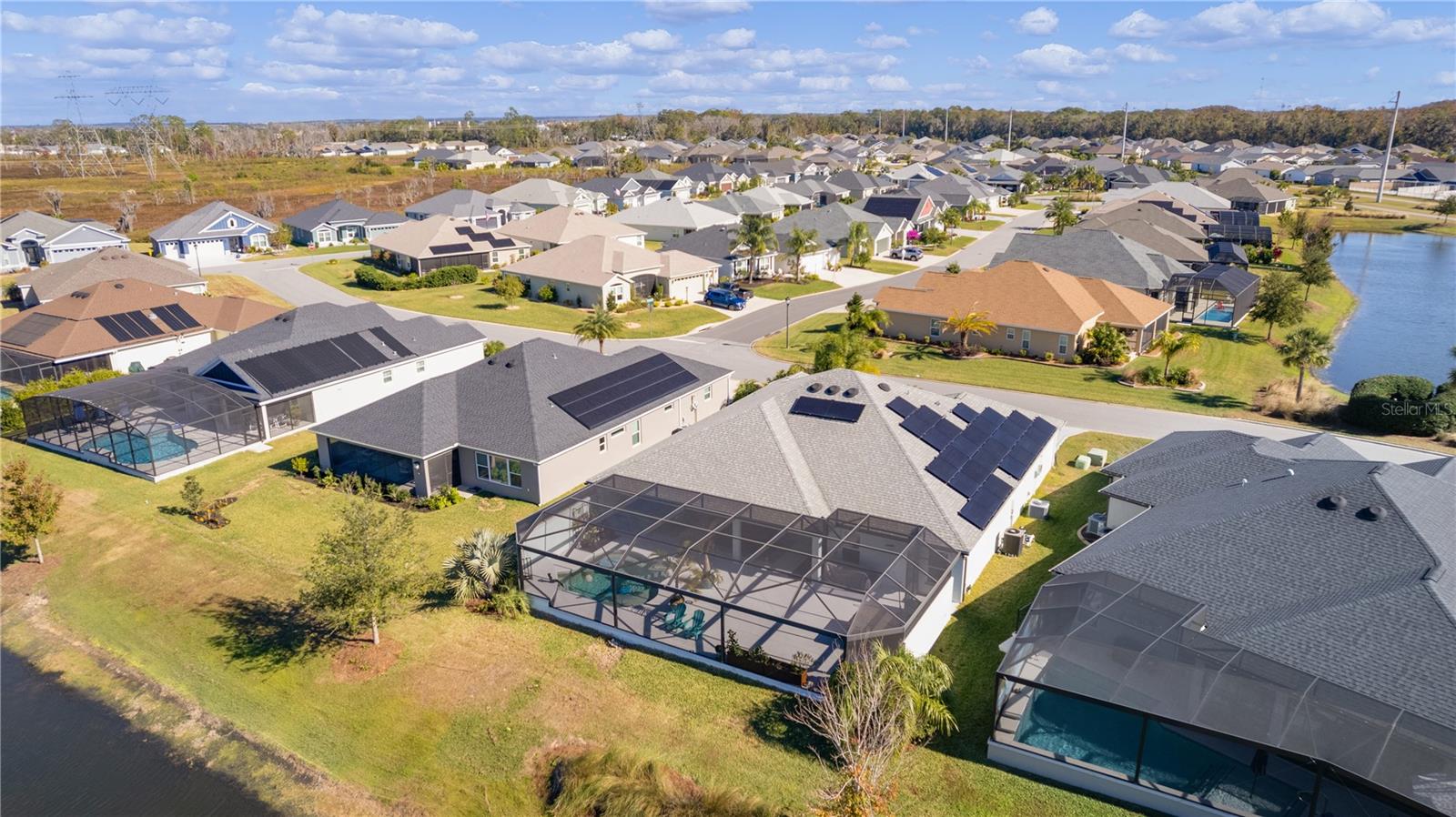 ~WATER VIEW~ ~POOL & SPA HOME~ ~2020 ROOF~ ~GC GARAGE~ ~SOLAR SAVINGS~ This stunning 4/3 WOODSIDE DESIGNER POOL home, nestled in the Village of CHITTY CHATTY, offers a blend of elegance, comfort, and functionality. Its inviting exterior features a PAINTED DRIVEWAY, 2-CAR GARAGE, GOLF CART GARAGE, and a charming courtyard leading to a LEADED GLASS front door with a matching sidelight. Upon entering, your eyes are drawn to the sliding doors in the living room, revealing a spectacular view of the SOLAR HEATED SALTWATER POOL, WATER VIEW and LARGE BIRDCAGE ENCLOSURE—ideal for relaxation or entertainment. The interior boasts 5-1/2” BASEBOARDS and exquisite PORCELAIN TILE FLOORING throughout, enhancing the seamless flow of space. There is also UPDATED LIGHTING and FANS in each room. The dream kitchen is paradise, featuring GRANITE countertops, a FARMHOUSE SINK, stainless steel appliances, a TILE BACKSPLASH, under- and over-cabinet lighting, rollout shelves, wall oven, electric cooktop and stylish PENDANT LIGHTING above the spacious BREAKFAST BAR. Additional storage is provided by a central island, a hallway pantry, as well as extra cabinetry in the eat-in area - perfect for all your culinary needs. The primary suite offers a serene retreat with its tray ceiling, ceiling fan, 2 oversized closets, and a luxurious en-suite bath. The en-suite features elegant cabinetry, DOUBLE GLASS SINKS, a tiled ROMAN SHOWER, and a separate commode. Guests will feel at home in the generously sized secondary bedrooms, one with a MURPHY BED and the other with ample space and built-in drawers in the customized closet, both conveniently located near the stylish guest bath. A versatile 4th bedroom can serve as an office or hobby space with another full bath with WALK-IN SHOWER just across the hall. The laundry room includes upper and lower cabinets and a laundry sink for added convenience. Step outside to the expansive 38’ x 9’ lanai with a birdcage enclosure, covering the pool and HOT TUB. The serene water view enhances the outdoor experience, making it perfect for relaxing afternoons or lively gatherings. The garage also has ATTIC STAIRS for additional storage, a WATER PURIFIER and WATER SOFTENER plus EPOXY floors. The ROOF, HVAC & Hot Water Heater are all 2020. Solar panels also provide monthly savings on your electric bills! The Chitty Chatty Pool is just down the street, and you are conveniently located near Route 44, shopping, dining, and via the CHITTY CHATTY BRIDGE, minutes from LAKE DEATON PLAZA and BROWNWOOD TOWN SQUARE! This home truly embodies luxury living in a prime location.