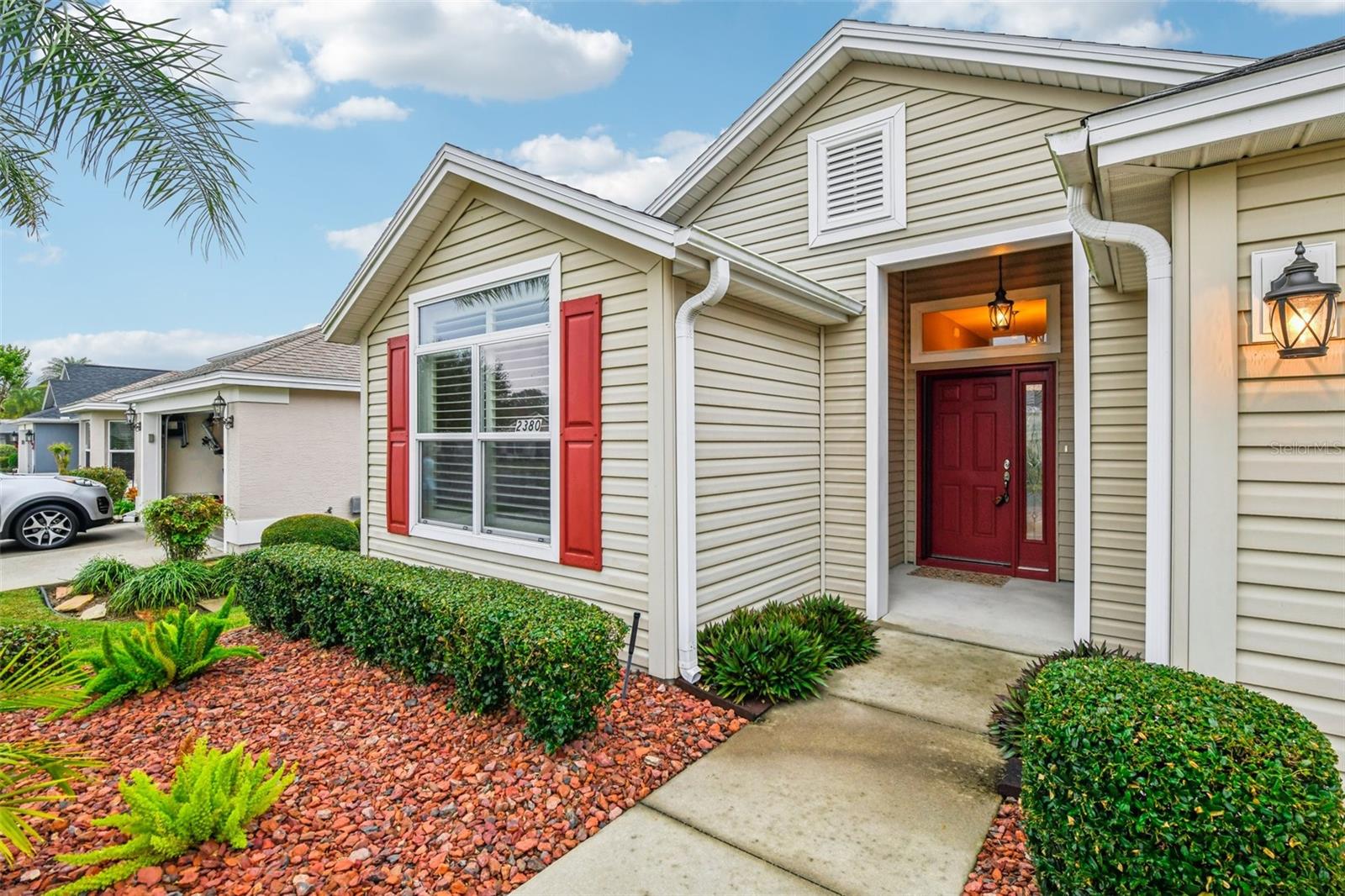No Bond. Location, Location, Location. Sunflower Model 3 BR 2 BA with Golf Cart Garage home located in the Village of Tamarind Grove between the 6's and minutes from Sumter Landing by Golf Cart. Stainless Steel Appliances, Laminate flooring in Living Room, Dining Room, and all three bedrooms. 15" Tile in the kitchen, baths, and laundry room. Plantation Shutters, high ceilings including all bedrooms, Screen enclosed lanai is painted concrete with a privacy wall behind. Beautiful landscaping with rock all the way around home. Fantastic neighbors and neighborhood. Live here or Fantastic Rental Home. Buy now and enjoy the new year in your new home. Call me today for a private showing or a FaceTime showing, if not local.