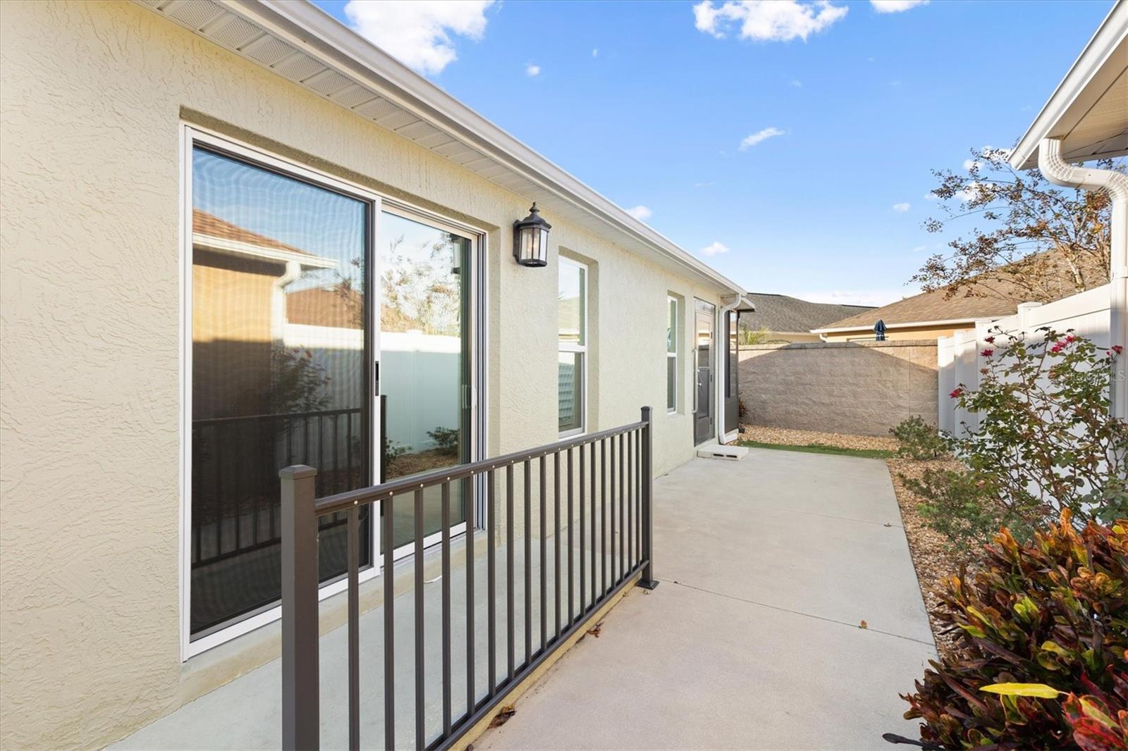 TURNKEY! NO BOND! (2015 Roof, HVAC) HWH 2025 Lovely 3/2 Anaheim Courtyard Villa in Leo Villas, the Village of Pine Ridge. Minutes to Brownwood Town Square. Low Maintenance Landscaping graces the property along with stacked stone courtyard walls. No grass to mow. Step inside through the elegant leaded front door into a welcoming foyer that leads to an open and split floor plan. The kitchen features a breakfast bar, pull-out cabinet shelves, and pantry closets, seamlessly connecting to the spacious living and dining areas, enhanced by plantation shutters, Cornices on the sliding doors, and stylish tile flooring. Retreat to the carpeted master bedroom, complete with a tray ceiling, walk-in closet and ensuite bath. The ensuite bath has a tiled walk-in shower, water closet, and single vanity. The guest bedroom, located at the front of the home, serves as an ideal space for an office or sitting room. The second guest bedroom, accessible through a pocket door for enhanced privacy, complements the guest bath featuring a tub-shower combo and nearby laundry room. The sliders from the Living Room lead to enclosed lanai while the sliders from the dining room lead to an outdoor patio for grilling and dining. Easy maintained rock beds grace the rest of the private courtyard. Additional features include: front door with built in blinds, knock down ceilings, attic stairs with upgraded ladder, and insulated garage doors. It’s a great location with the neighborhood WalMart is 1.2 miles away, Sarasota Golf driving range 1.4 miles away. And the neighborhood pool and recreation center is less than a mile. Shopping, dining, golf, medical, and so much more are easily accessible. This home is move in ready for you to start living The Villages Dream. Watch our video and make your appointment to see this home today.