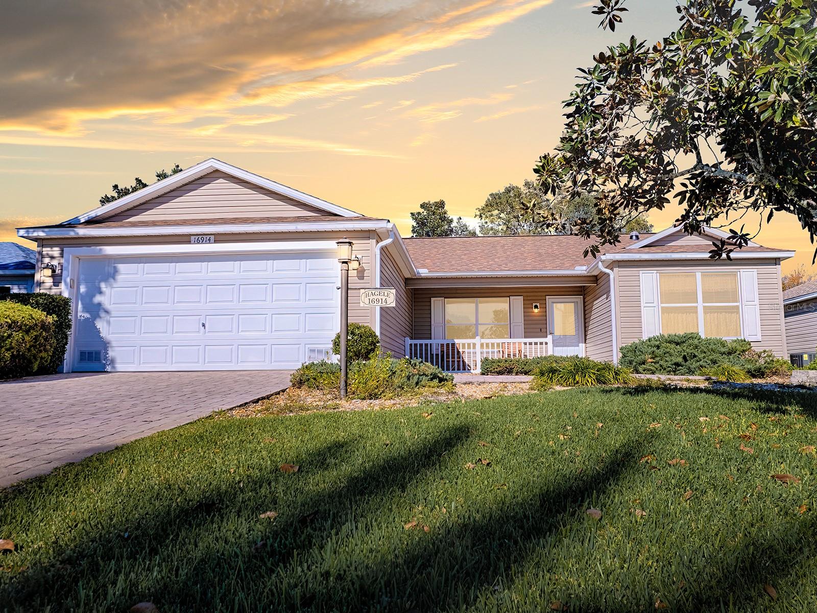 $0 BOND BALANCE; AMARILLO OPEN-FLOOR CONCEPT with HUGE backyard (ROOM FOR A POOL) in The VILLAGE of WOODBURY; MOVE-IN READY; Originally a MODEL HOME; ONE OWNER- IMMACULATELY CLEAN and Well-Loved; Looks Like a New Home; New Roof 2021; Water Heater 2018; New Air Conditioner; Newer Dishwasher, Washer/Dryer and Refrigerator; PAVERS (Driveway, Walk-way and Front Porch); Storm Door; Neutral Paint Colors; Vaulted Ceilings; Clean BERBER CARPET with a Unique Design; Laundry has Pantry Cabinets; QUARTZ COUNTERTOPS and large granite kitchen sink; Whole House Water Filtration System; En-Suite Primary Bath with Double Sink, separate toilet closet and His/Hers Separate Walk-In Closets; BONUS ROOM has windows throughout looking onto a quiet backyard with vinyl fence on the end for privacy; ENCLOSED LANAI; Easy access to shopping, restaurants and medical offices on 42 ( Publix Plaza, VA Clinic, Mulberry Recreation Center) or 441; Golf at nearby Nancy Lopez Legacy Championship Golf Course- Dine at the Lopez Pool Bar or the Country Club dining room; Take a golf cart ride to Sumter Landing or Spanish Springs for music and dancing, Chatham or Savannah Recreation Centers. Claim this house and start enjoying your retirement with everything there is to enjoy in “The Villages”!