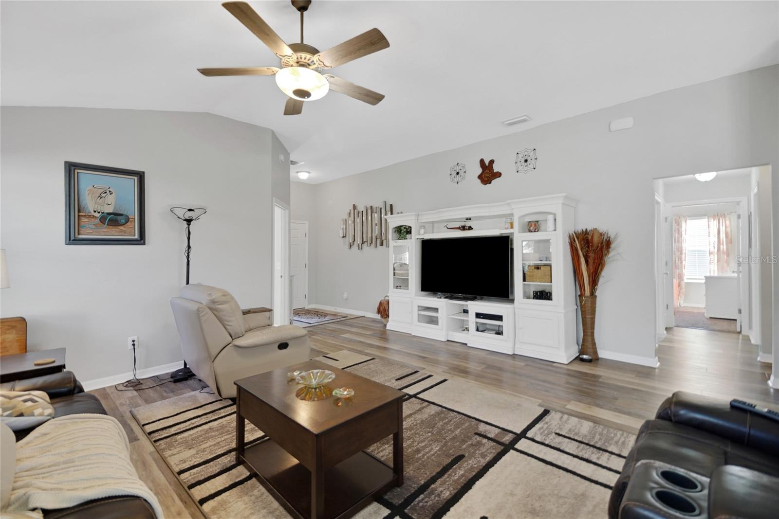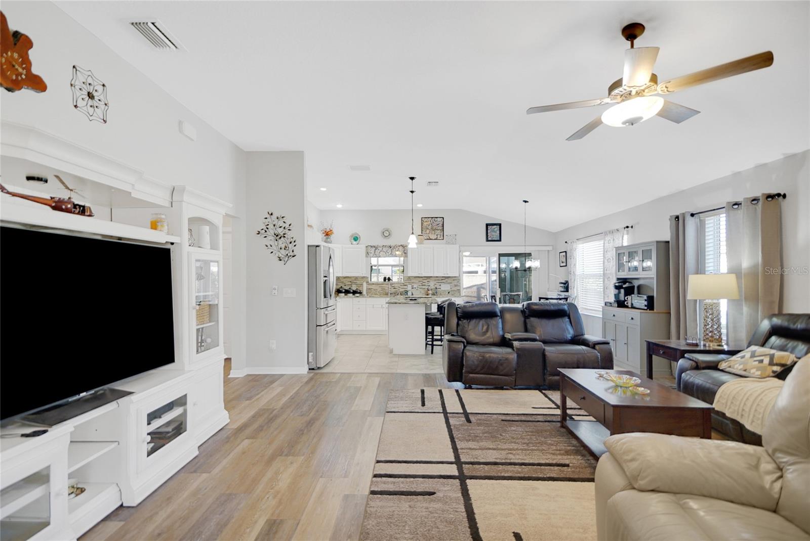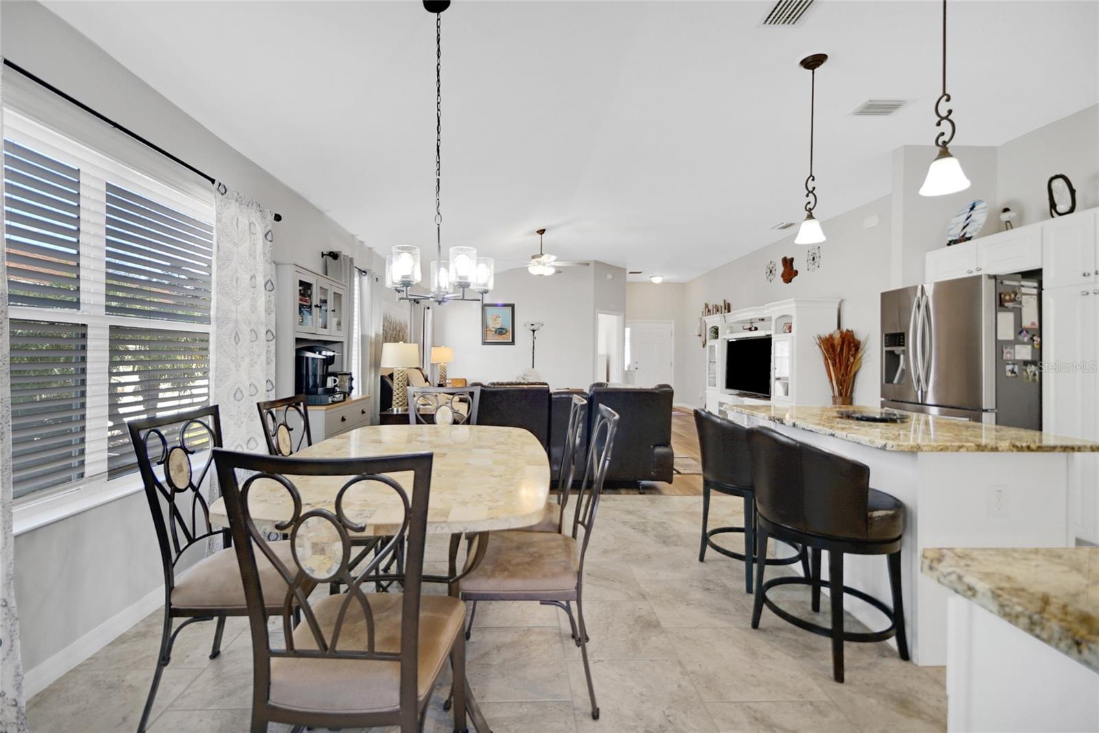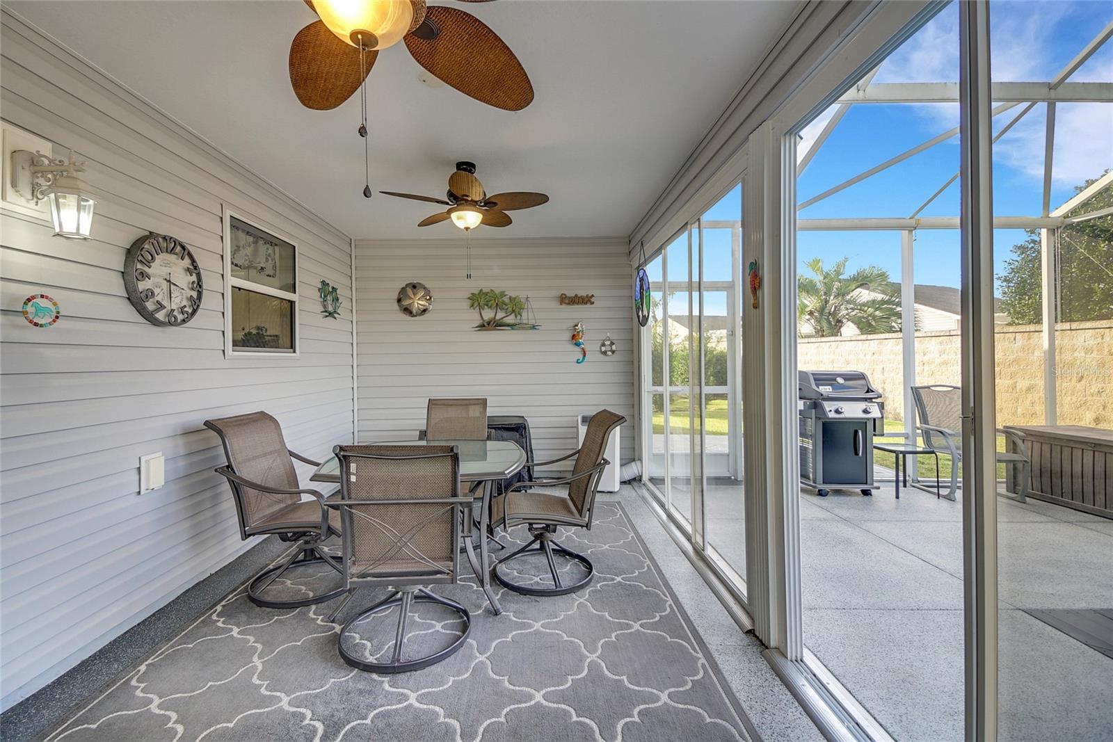NEW ROOF as of February 2025. This lovely updated, Oversized Sea Breeze Model Home with Privacy, an enclosed Florida Room, Birdcage with a Spa plus an additional outdoor patio is available in the highly sought after Village of Tamarind Grove just a few minutes to 466A shopping & Brownwood. This house backs up to a stone wall ensuring the privacy that so many are searching for. This 3/2/2 has an inviting open floor plan boasting 1542 heated square feet, gorgeous luxury vinyl plank in the main areas and tile in the wet areas, ceiling fans, inside laundry and vaulted ceilings with No Popcorn! The beautiful kitchen includes stainless steel appliances, stunning granite countertops and backsplash, an island and plenty of storage with the extra cabinetry that was added. The spacious primary bedroom (17.8x13.4) includes a large walk-in closet, the en-suite has double sinks with granite countertops, a linen closet, a private commode and walk-in shower. The 2nd and 3rd bedrooms share a bathroom with a granite countertop and a tub/shower combination. Relax in the spacious living room (18.8x19) or head out to the enclosed Florida room with the portable heat and air unit or out to the birdcage and hop in the jacuzzi or out on your open air patio and sunbathe. All of these concrete floors are very tastefully painted and add charm to each area. Additionally, this home includes a whole house water filtration system, new garage door opener, new garbage disposal, and upgraded irrigation system. ONE HUGE BONUS IN ADDITION TO THE LOCATION TO BOTH BROWNWOOD & LAKE SUMTER SQUARES being JUST A FEW MINUTES AWAY is THE POOL & MAILBOXES ARE at THE END OF THE STREET. The Villages is a wonderful place to live with so much to do including golf, nightly entertainment, restaurants, shops, grocery stores and all of the amenities and clubs that are offered. Please call for your private showing and make your Dreams a Reality!