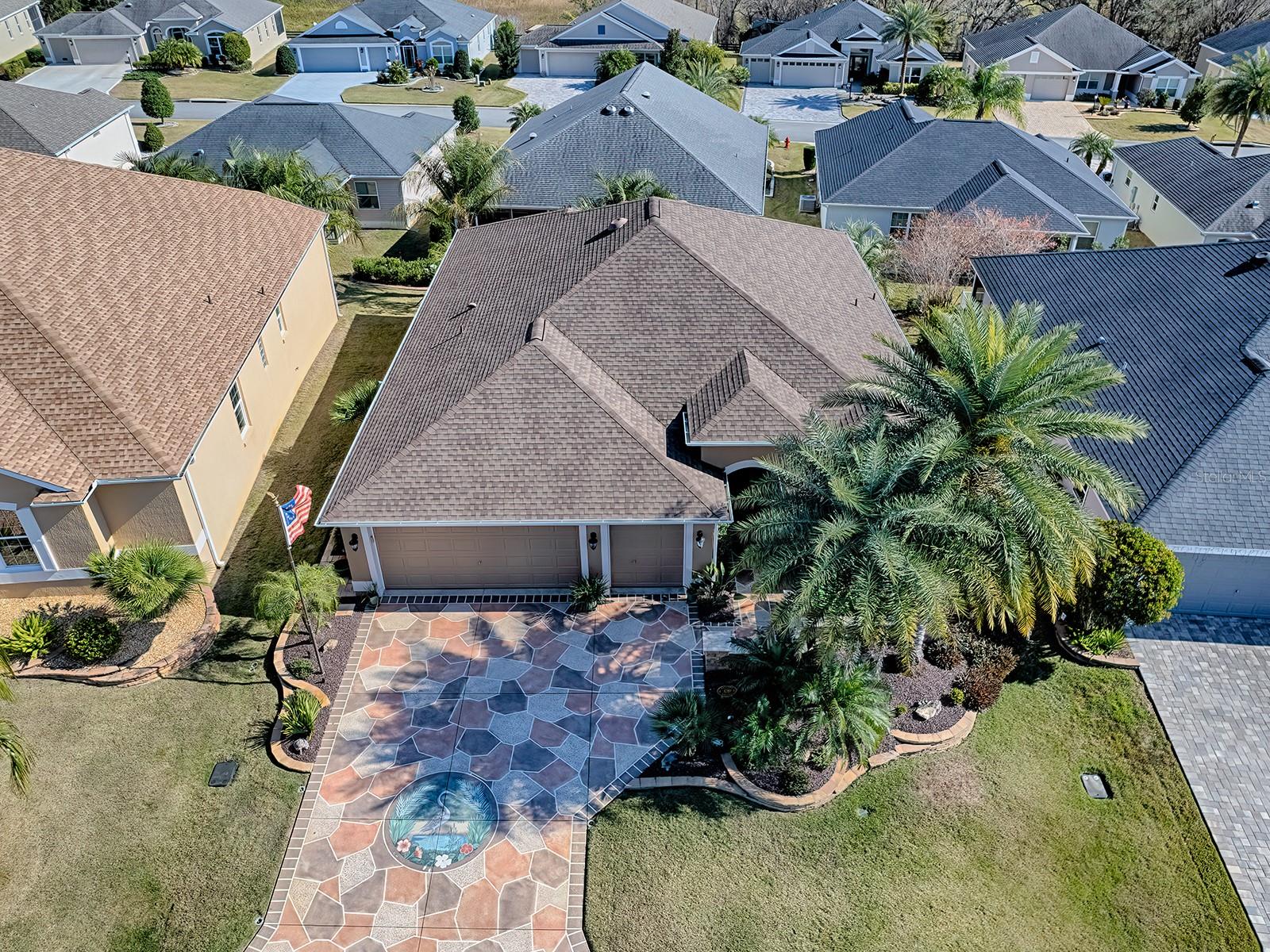 3/2 IRIS DESIGNER in PINE HILLS! This home is sure to impress starting with Curb Appeal - Beautifully Landscaped Front Yard, Decorative Custom Drive, Brick Paver Front Patio all leading to a covered entry with a LEADED STAINED GLASS FRONT DOOR, Complemented by Side Panels and a Transom Window. Inside, ENGINEERED HARDWOOD FLOORING flows throughout, Enhanced by CROWN MOLDING, and PLANTATION SHUTTERS. The OPEN and SPLIT plan features a Spacious LIVING/DINING ROOM Combo that extends to an ENCLOSED LANAI. The Kitchen features GRANITE COUNTER TOPS, CLOSEST Pantry, & A BREAKFAST BAR w/tiled side walls. The Primary Bedroom has a TRAY CEILING enhanced with elegant crown molding and Plantation Shutters. The EN-SUITE Bathroom is equipped with dual split vanities, GRANITE COUNTERS, a Beautifully TILED ROMAN SHOWER, and a spacious WALK-IN CLOSET designed for optimal organization and storage. The GUEST BEDROOMS also include BUILT-IN CLOSETS, and Plantations Shutter. The Guest Bath includes a GRANITE TOPPED Vanity, Tub /Shower combo. A Pocket Door ensures privacy for your visitors. The Inviting and Lanai is a perfect additional room for relaxing and entertaining, it's equipped with pull-down shades and connects to a brick paver patio perfect for grilling. The 2 CAR PLUS GOLF CART GARAGE has plenty of space for storage. Additional items that you are certain to appreciate and make this home a GREAT VALUE: Fresh Exterior Paint (2024), Professional Front & Back Landscaping Enhancements, Elevated Lot, Pull-down Stairs to the Attic along with added insulation to Garage and Lanai, Upgraded Oil Rubbed Bronze Fixtures & Hardware, Extra Cabinets & Utility Sink in Laundry Room, Etc.. One of two neighborhoods sharing their name with Fruitland Park, The Village of Pine Hills is close to all the amenities. You're close to golf and dining at the Belle Glade County Club, recreation galore at the Colony Cottage Recreation Center, plus shopping and dining in the adjacent Colony Plaza. The scenic Sharon Rose Wiechens Preserve adjoins the neighborhood, and offers a great place to walk and take in the beauty of natural Florida.