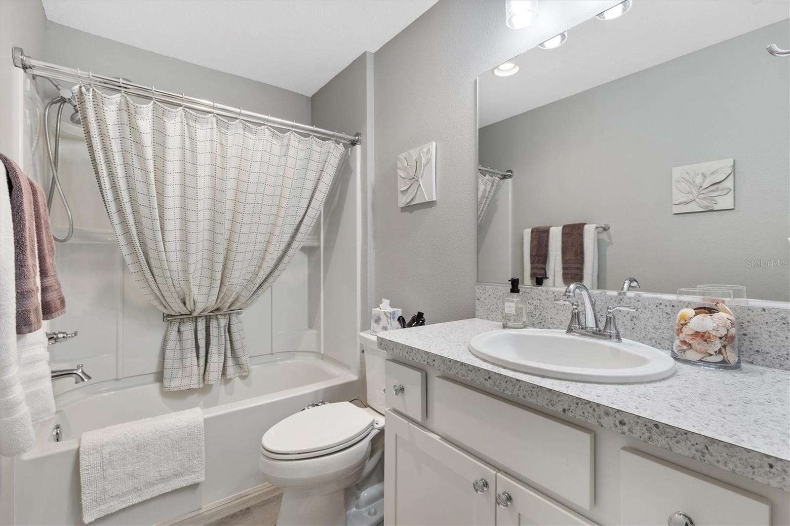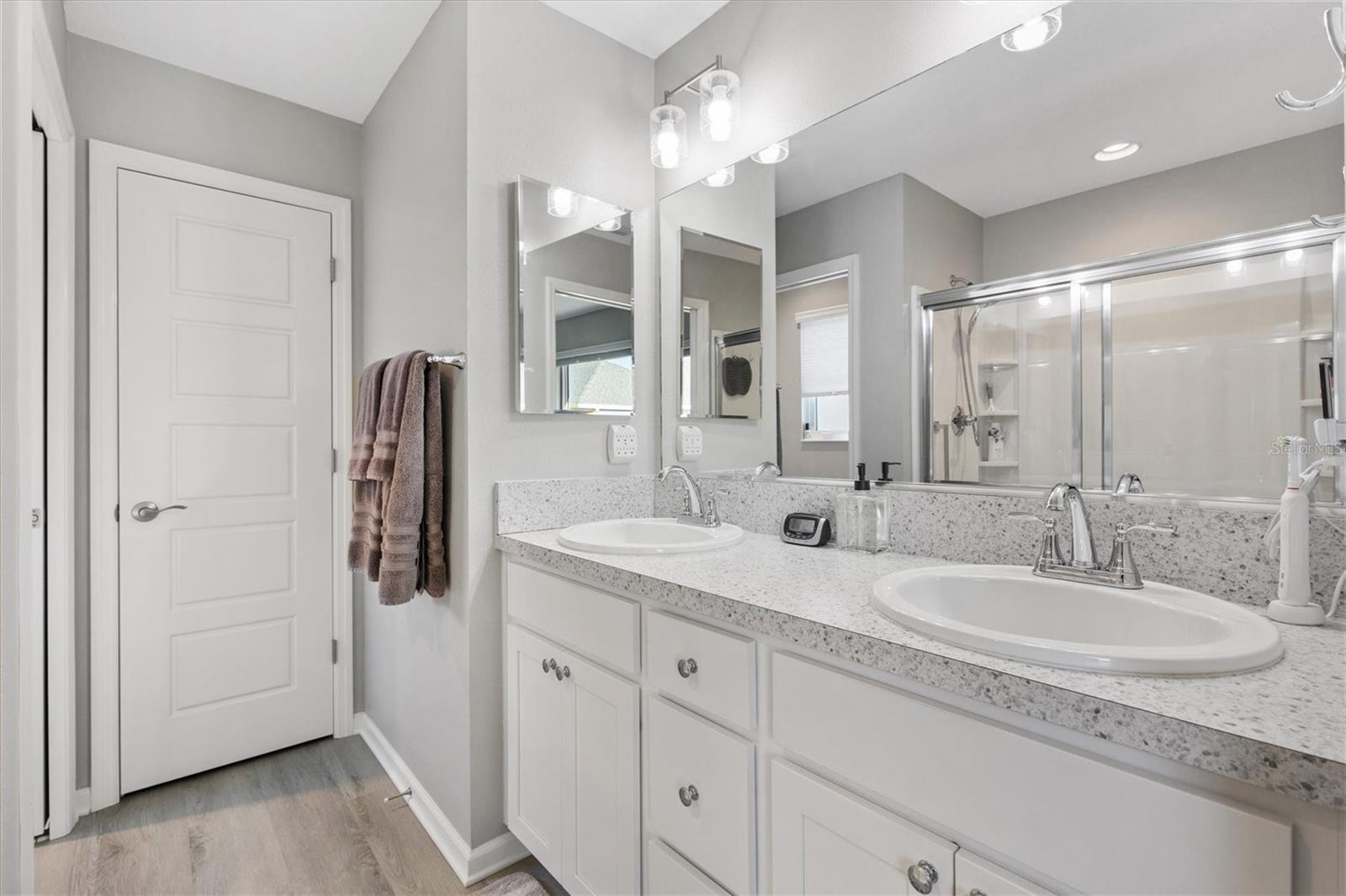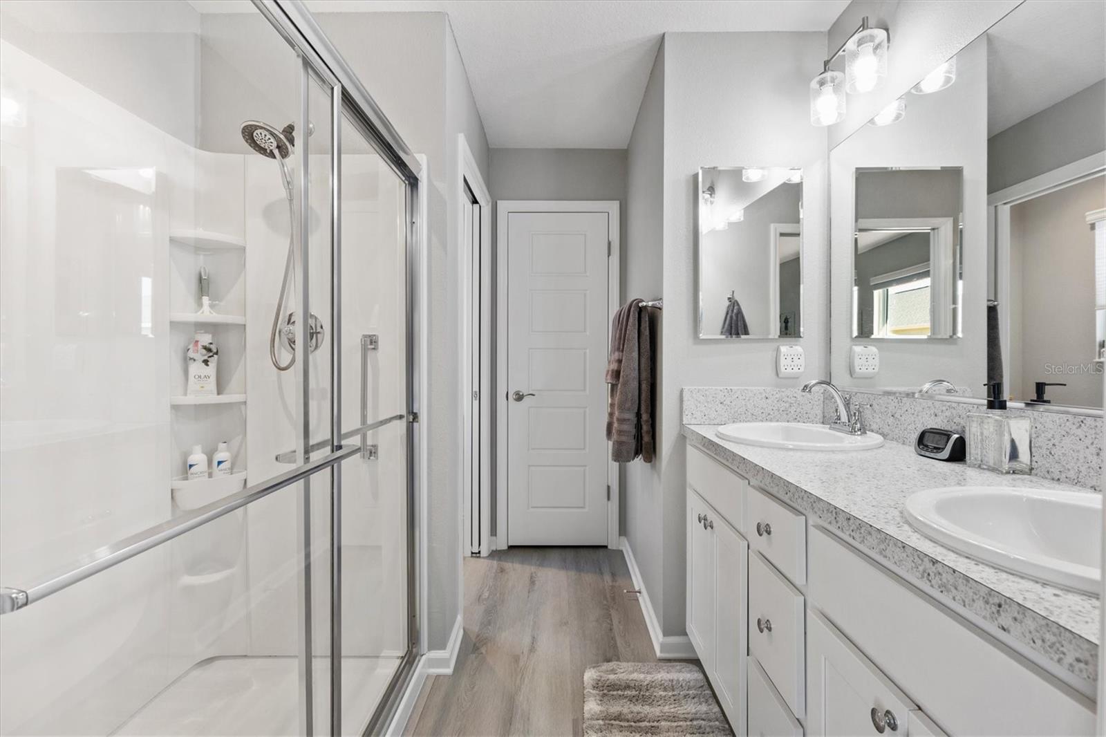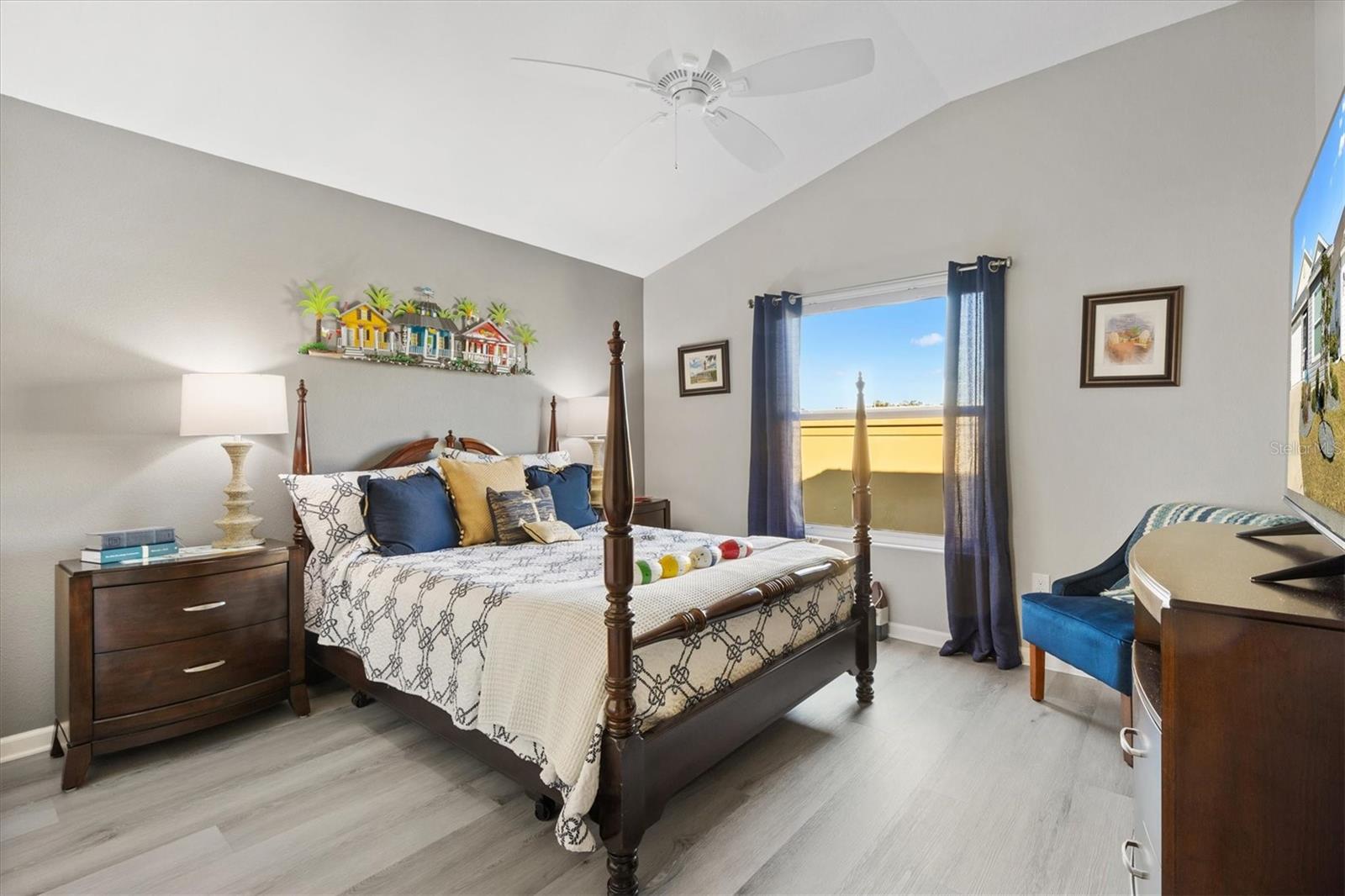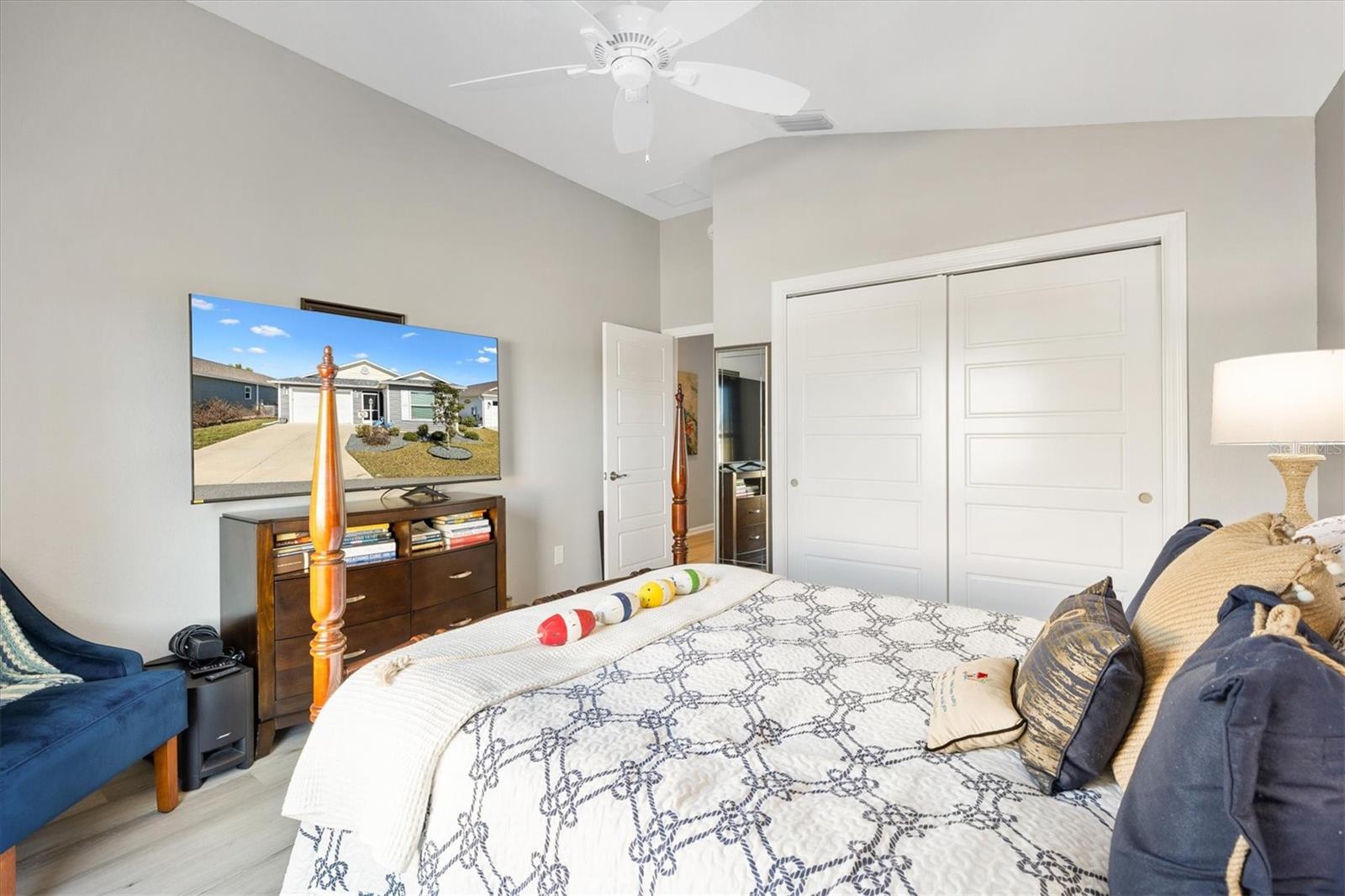 Pristine 2/2 Emerald Patio Villa. Swallowtail Villas in the Hammock at Fenney. Enjoy the screened front lanai with epoxy floors to relax after a day of activities. Then walk into your freshly painted open floor plan with luxury vinyl plank flooring throughout, top down bottom up black out shades on all the windows, upgraded lighting in the kitchen and dining rooms, ceiling fans in the living room and bedrooms. The kitchen is open to the living and dining room with a large island and breakfast bar. The kitchen boasts stainless steel appliances, 4 burner gas range with griddle, oversized Stainless Steel sink, pull out shelves, pantry closet, and desk. Inside laundry closet complete with washer and dryer and additional storage shelves is just off the kitchen. The master bedroom has an ensuite bath with shower, dual vanity, water closet, linen closet and a large walk in closet with added shelving. The guest bath has a pocket door and a shower tub combination. Garage and golf cart garage have epoxy floors and insulated doors. The garage has a Mitsubishi mini split dehumidifier AC system. Enjoy outdoor relaxing, grilling and dining patio, low maintenance landscaping, Nova Water Filtration System, Teeho Key Pad entry on all exterior doors, tankless hot water heater, bidet toilets in both bathrooms, high vaulted ceilings throughout, interior utility closet with additional shelving. Rain gutters around the house have been added. This home has a fire hydrant on the property giving you an insurance benefit. Located less than a quarter mile to the Hammock’s golf courses, and less than 1 mile to Fenney Recreation Center and Nature Trail for activities and swimming. Savor life in all The Villages and surrounding area have to provide. Be sure to watch our virtual tour of this wonderful home and schedule your appointment to see it today!