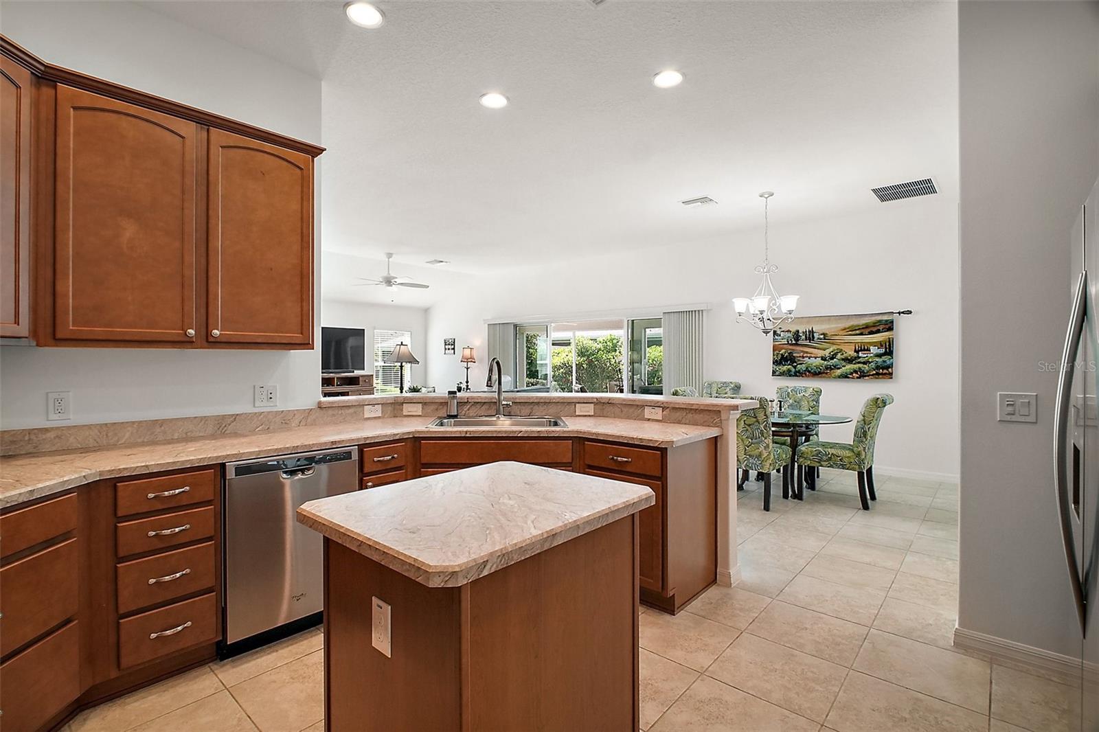 3/2 Elm with Golf Cart Garage located in the VILLAGE of PINE HILLS! This Designer Home is PRISTINE, LIGHT & BRIGHT with an OPEN FLOOR PLAN and has the perfect blend of STYLE and FUNCTIONALITY! Newer Laminate and Tile Flooring extend seamlessly across the entire home, adding a modern touch. The Airy & Spacious Living Room has Volume Ceilings, Plenty of Windows & Sliding Glass Doors leading to the 250-square-foot lanai, creating a seamless indoor-outdoor flow, perfect for relaxing or entertaining. The Spacious Kitchen is a chef's dream with an abundance of Cabinet & Counter Space- including a Breakfast Bar, Pull-out Drawers, a Center Island, and STAINLESS STEEL APPLIANCES. Retreat to the Spacious Ensuite Primary Bedroom showcasing natural lighting & high tray ceilings. The Primary Bath is complete with a LARGE WALK-IN CLOSET, Dual Sinks, Private Water Closet, and a ROMAN SHOWER. The Guest Suite is located on the opposite side of the home with two additional bedrooms and a good-sized Guest Bath with Tiled Tub/Shower and a secondary door leading out to the Lanai. The interior laundry room offers added practicality with a wet sink and built-in cabinets. A 2-car garage, complete with an additional golf cart garage, provides outstanding storage and convenience. The Village of Pine Hills is close to all the amenities you've come to enjoy, yet feels like you're out in the country. Close to plenty golf, recreation and dining options including Belle Glade County Club, Colony Cottage Recreation Center, plus shopping in the adjacent Colony Plaza. The scenic Sharon Rose Wiechens Preserve adjoins the neighborhood, and offers a great place to walk and take in the beauty of natural Florida.