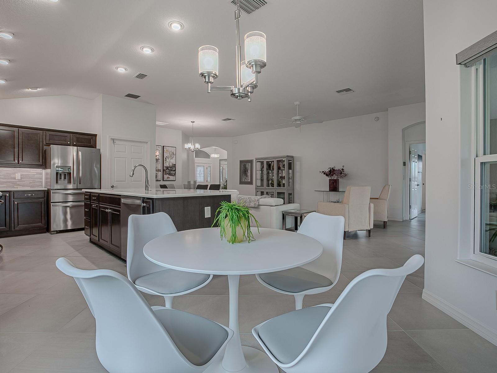3/2 IRIS DESIGNER HOME with POND VIEW! Located in The Village of DeSoto - BETTER THAN NEW AND LIGHTLY LIVED IN! BOND IS PAID! Discover the perfect blend of LUXURY and CONVENIENCE in this EXCEPTIONAL PROPERTY! From the moment you arrive you will be impressed - Terrific Curb Appeal, Lush Landscaping all around the home & a Decorative Driveway. As you enter into the Foyer, you will notice a coat closet and the Diagonal Designer Porcelain Tile throughout the main living area. The OPEN, 'LIGHT & BRIGHT' FLOOR PLAN seamlessly connects the kitchen, breakfast nook, dining, and family rooms, creating an ideal space for entertaining and everyday living. The KITCHEN includes HANDSOME CABINETRY with COMPLEMENTARY BACKSPLASH ENHANCING THE EXQUISTIE LOOK, QUARTZ COUNTERS, a Breakfast Nook, and STAINLESS STEEL APPLIANCES. The Extended GLASS ENCLCOSED LANAI is equally IMPRESSIVE and likely to be your FAVORITE ROOM - a PLACE TO TAKE IN THE LOVELY POND VIEWS and Bird Watch. The Dreamy Primary Suite easily accommodates your king-sized furniture. The ENSUITE Bath has DUAL SINKS, a WALK-IN CLOSET and a TILED ROMAN SHOWER. The Secondary Guest Bedrooms are Spacious and have an adjacent Guest Bath with Tub/Shower and located in the front of the home. The laundry room includes a washer & dryer, and extra storage cabinets. The two car + golf cart garage offers room for storage and a utility sink. Located in the highly desirable Village of Desoto, a short golf cart ride will take you to Magnolia Plaza, Everglades Recreation Center, and the Eastport Downtown area. Experience upscale living in a vibrant, active community—don’t miss this incredible opportunity! **FURNITURE PACKAGE AVAILABLE & SEPARATE**