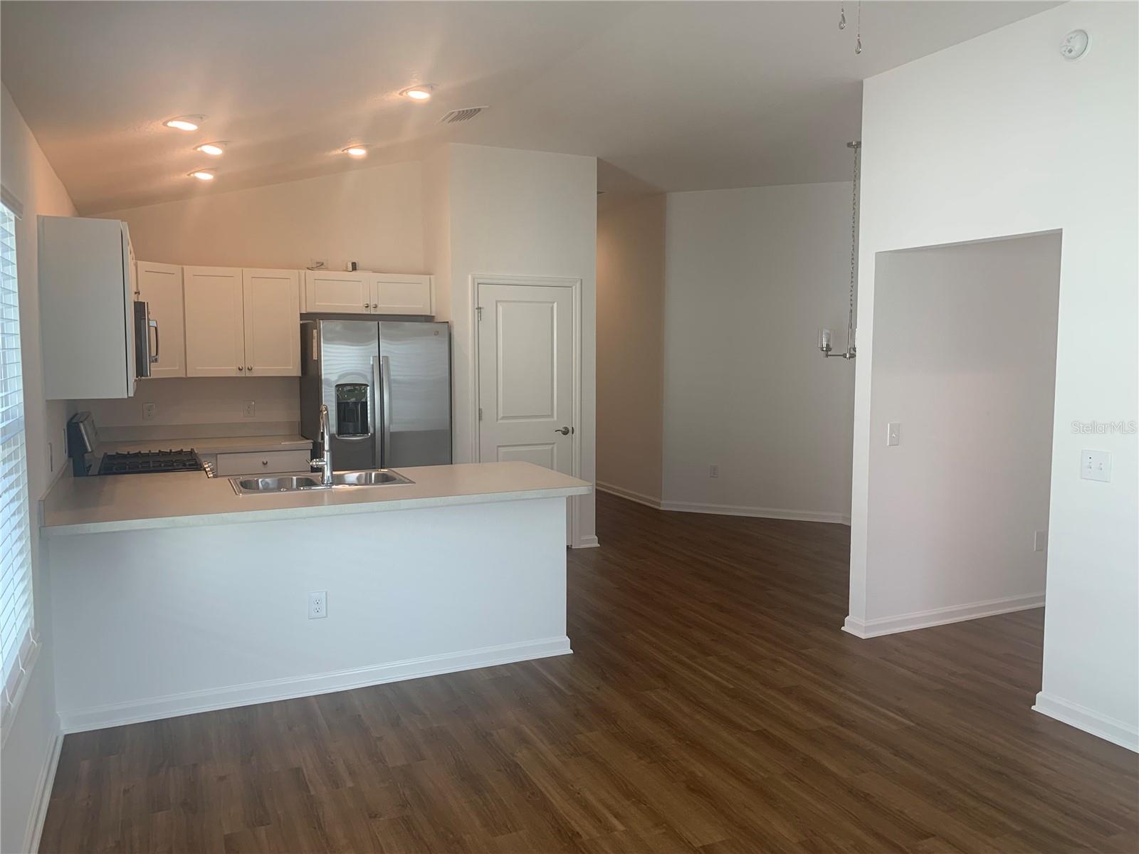 The Village of Lake Denham – Annison Villas – HAVEN Patio Villa built in 2023 – JUST MINUTES BY GOLF CART TO SAWGRASS GROVE ® ENTERTAINMENT COMPLEX & MARKET, with nearby Recreation Facilities & Golf Courses!! A Dog Park & The Villages® Astronomy Viewing Pads are close by at Homestead Recreation Center, also the Franklin Recreation Center and Mickylee Pitch & Putt! *** Investor Opportunity!! – *** Tenant in-place until September 30th, 2025!!! - *** This HAVEN Villa Model with Rear SCREENED LANAI features a Primary En-Suite with a Spacious Walk-in Shower (with Grab Bar), Single Vanity & Large Closet ** A Separate Guest Wing has a Bedroom & Bathroom (Shower/Tub Combo)*** The GREAT ROOM consists of a Living Room, Dining Room and Kitchen combination with Vaulted Ceiling. The Kitchen Features STAINLESS STEEL APPLIANCES WITH GAS STOVE, Side-By-Side Refrigerator, Mounted Microwave, Dishwasher and Breakfast-Bar Overhang. ***** There is an INSIDE LAUNDRY ROOM with WASHER/DRYER. .. Added CEILING FANS & Blinds!! – The Garage can park both Car & Golf Cart.