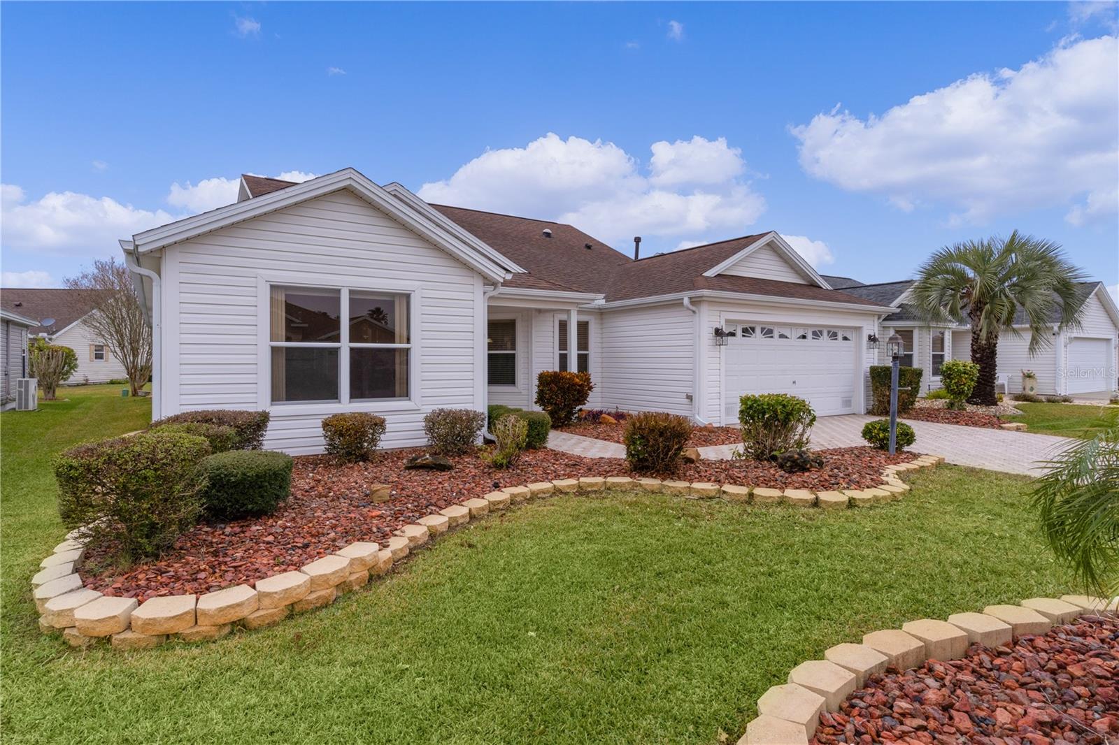 ~NO BOND~ ~2018 ROOF~ ~2019 HVAC~ ~ENCLOSED LANAI~ Welcome to this stunning 3/2 CAMELLIA model, nestled in the Village of GLENBROOK. A charming PAVER DRIVEWAY and walkway lead you to the entrance, where meticulous rock and paver landscaping creates inviting curb appeal. Step through the elegant LEADED GLASS front door with matching sidelight and be greeted by CERAMIC TILE FLOORS that flow seamlessly through the main living areas. The OPEN FLOORPLAN is perfect for entertaining, with sliding glass doors off the living room that open to an ENCLOSED LANAI—your private retreat. The upgraded kitchen is a dream, featuring stainless steel appliances, GRANITE countertops, a TILE BACKSPLASH, convenient rollout cabinets, a ceiling fan, and a cozy EAT-IN AREA. A large BREAKFAST BAR offers additional seating, while the ISLAND simplifies meal prep. An INDOOR LAUNDRY ROOM with cabinets and a laundry tub adds convenience. Relax in your spacious primary bedroom, complete with 2 WALK-IN CLOSETS, high ceilings, and a ceiling fan. The luxurious en-suite bath boasts a tile walk-in shower with glass doors, DOUBLE SINKS, GRANITE countertops, a vanity, and elegant ceramic tile floors. The 2 guest bedrooms are generously sized, with the guest bath conveniently nearby. Outdoor living is easy in your enclosed lanai, equipped with 2 ceiling fans and a ceramic tile floor—perfect for year-round enjoyment. The 2-CAR GARAGE includes attic stairs and shelving for extra storage. The ROOF is 2018, HVAC is 2019 and the Hot Water Heater is 2019. Glenview Country Club is minutes away as is the Savannah Center, The Villages Polo Club and the Saddlebrook Softball Complex! Conveniently located next to Southern Trace Plaza with shopping, dining and medical along Highway 466, this home offers the perfect balance of comfort, style, and accessibility.