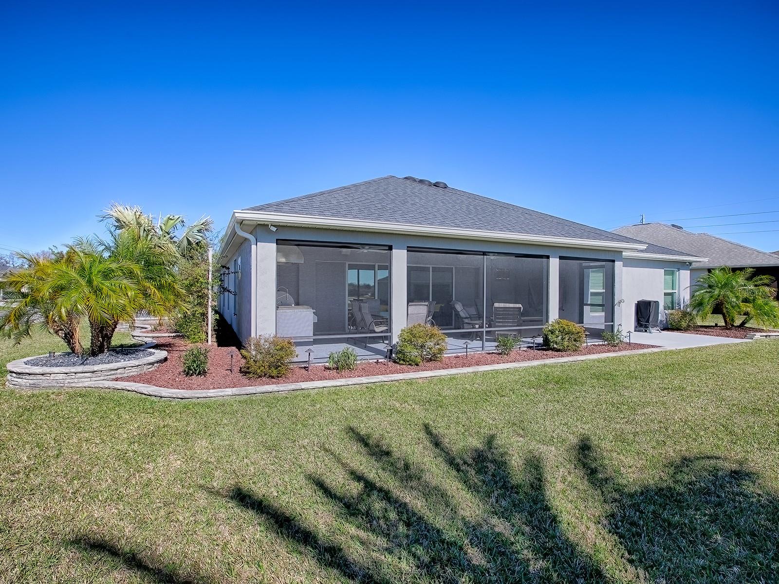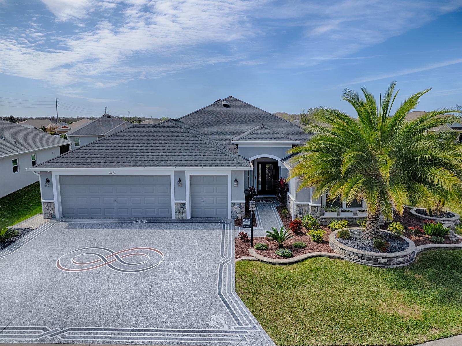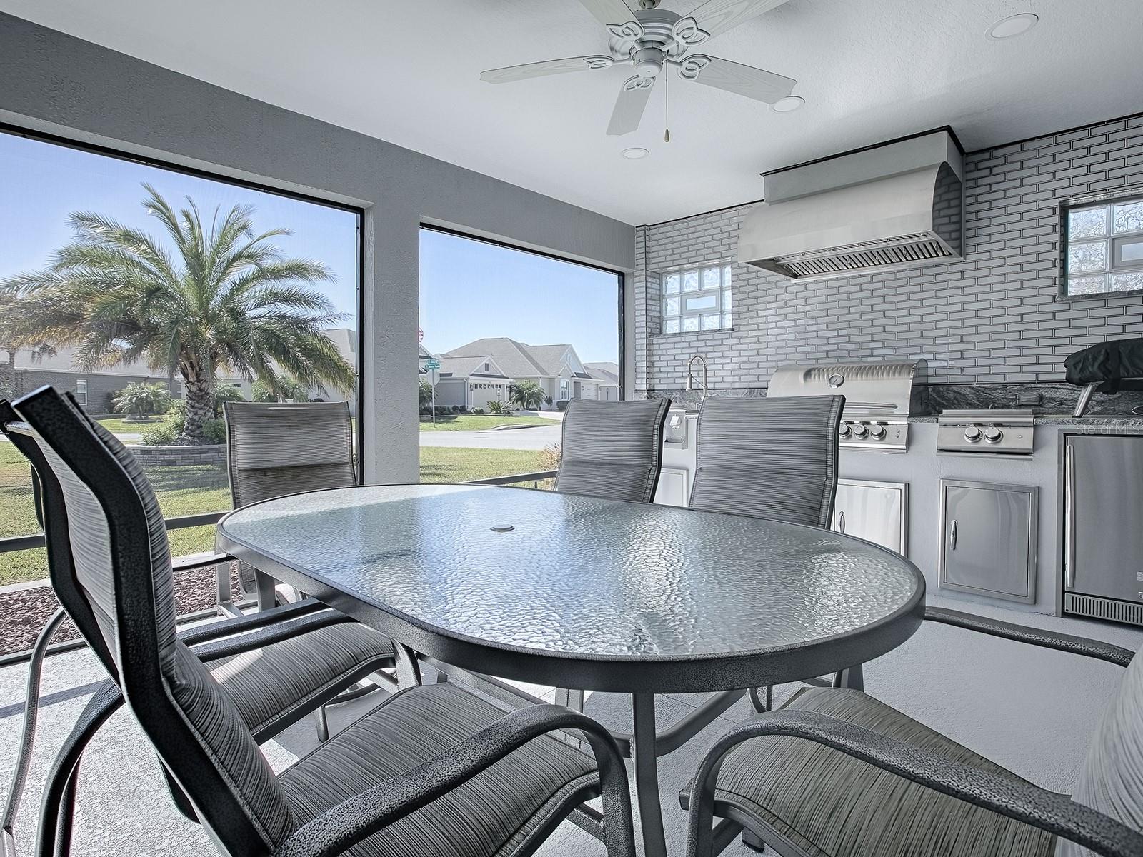 Welcome to a Beautifully Designed Block & Stucco Gem, where STYLE meets COMFORT in this STUNNING 3/2 Designer home! Approximately 200K in upgrades! As you approach the home you will notice the Terrific Curb Appeal - Custom Painted Driveway, New Exterior Paint, Upgraded Landscaping - All setting the stage for the Quality and Style you will discover inside starting with the handsome lead glass front door w/side lite and transom! The home has many high-end updates and finishes - What is sure to be one of your favorites is the Concrete Block Lanai Buildout with a Top of the Line Fully Equipped Outdoor Kitchen. The reconstructed Lanai adds additional Living and Entertaining Space to enjoy for years to come! There is even room to add a pool to this oversized corner lot. The Custom Stone Wall & Fireplace in the Living Room add Character & Style to the home and are sure to impress the most discerning buyer. From the Living Room there are Stackable Tinted Glass Sliding Doors that lead to the outdoor living area. The Kitchen is designed for both beauty and practicality, featuring Stainless Steel Appliances, Sleek Gray Soft-Close Cabinetry w/ under counter and in-cabinet lighting, Complimentary Subway Tile Backsplash, Quartz Countertops and a Breakfast Nook to complete this beautiful Kitchen that overlooks the dining and living room. Moving to the Owner's Suite you notice the Tray Ceiling, lots of Natural Light, Two Walk-In Custom Designed Closets, Dual Sinks and a Walk-In Tiled Roman Shower that finishes off the owner's bathroom with luxury. In this split home design, you find the guest bedrooms on the other side of the home offering privacy and comfort and a Guest Bath with Tiled Tub/Shower. The Stretched Garage has 24k 20 Seer Ductless Mini-Split, Recessed Lighting, Double Insulated Garage Doors, Heavy Duty Shelving and Epoxy Floors. The insulated Attic has stairs, flooring and built in shelving as well. Bonus Upgrades: Wood-look Tile throughout the main living area, Surround Sound, Upgraded Power Wattage, Wall/Attic/Closet Wiring, Outlets, Wall Mounts, and Wiring Panel. Hot Water Heater is a Recirculating System. Pegasus Water Filtration System plus Reverse Osmosis System. 6" Gutters all around the house, Outdoor Landscape Lighting, Liberty Centurion 32 Gun Safe, etc. The Village of Chitty Chatty offers one of the most unique, picturesque settings and Villagers in this neighborhood will have amazing views of the preserve and all its natural beauty. Enjoy shopping, dining and entertainment at the Lake Deaton Shopping Plaza and Brownwood Paddock Square, just a golf car ride away. There's plenty of recreation close by, with Rohan Regional Recreation Complex to the north and the Southern Oaks Championship Golf to the south. The Chitty Chatty Neighborhood Recreation Area is located in the heart of this neighborhood and offers Villagers an adult pool, corn toss, bocce and shuffleboard. For nature lovers, there are walking and biking trails and lots of bird watching.