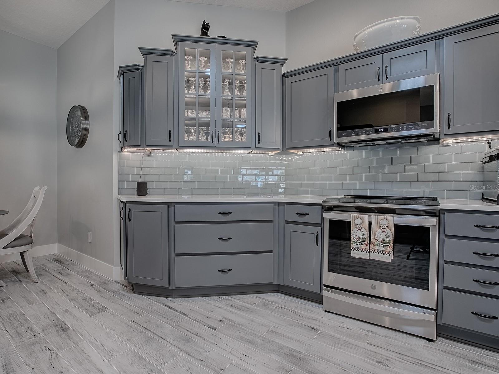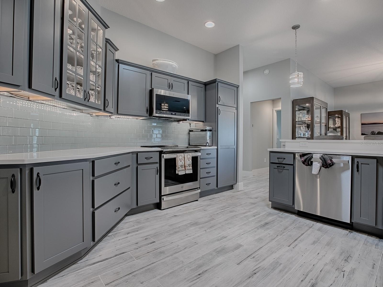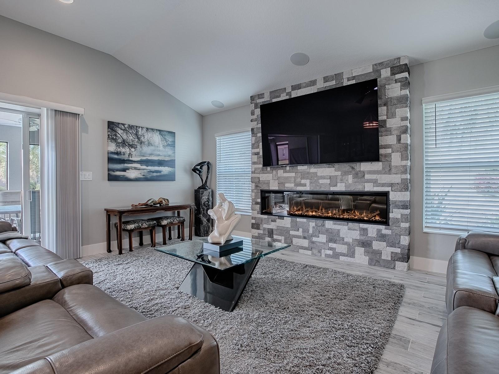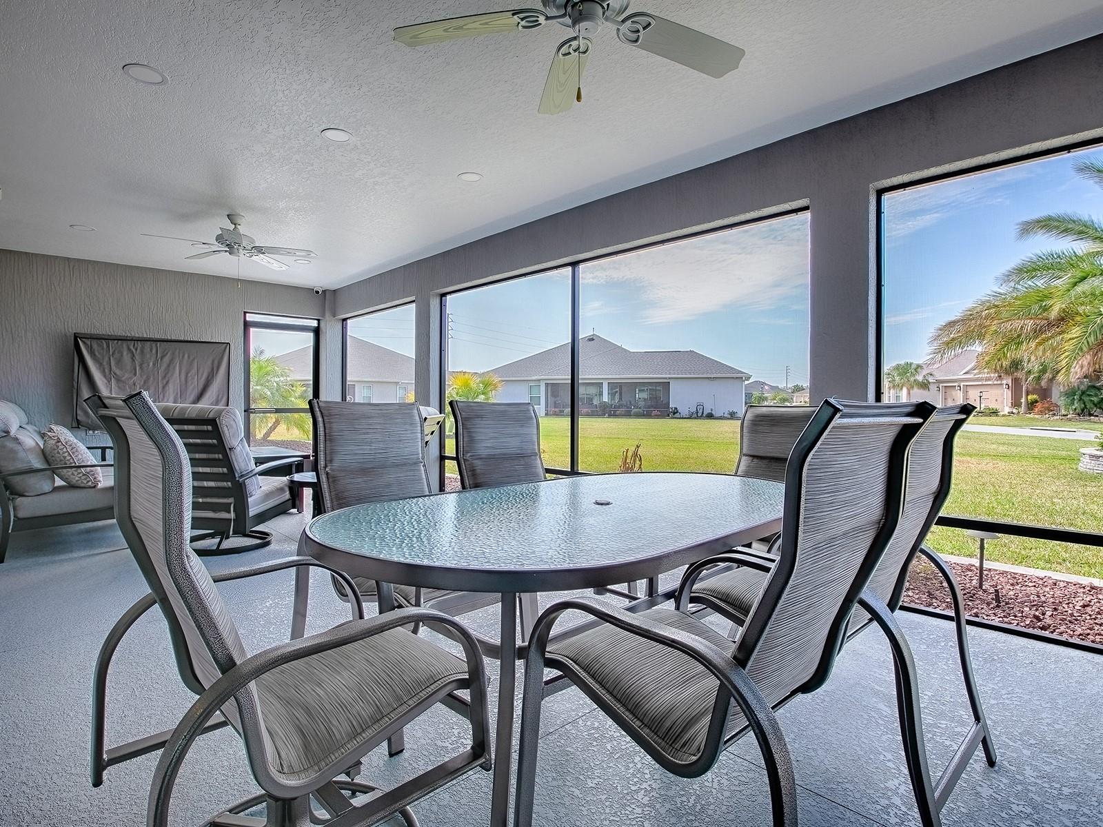 Welcome to a Beautifully Designed Block & Stucco Gem, where STYLE meets COMFORT in this STUNNING 3/2 Designer home! Approximately 200K in upgrades! As you approach the home you will notice the Terrific Curb Appeal - Custom Painted Driveway, New Exterior Paint, Upgraded Landscaping - All setting the stage for the Quality and Style you will discover inside starting with the handsome lead glass front door w/side lite and transom! The home has many high-end updates and finishes - What is sure to be one of your favorites is the Concrete Block Lanai Buildout with a Top of the Line Fully Equipped Outdoor Kitchen. The reconstructed Lanai adds additional Living and Entertaining Space to enjoy for years to come! There is even room to add a pool to this oversized corner lot. The Custom Stone Wall & Fireplace in the Living Room add Character & Style to the home and are sure to impress the most discerning buyer. From the Living Room there are Stackable Tinted Glass Sliding Doors that lead to the outdoor living area. The Kitchen is designed for both beauty and practicality, featuring Stainless Steel Appliances, Sleek Gray Soft-Close Cabinetry w/ under counter and in-cabinet lighting, Complimentary Subway Tile Backsplash, Quartz Countertops and a Breakfast Nook to complete this beautiful Kitchen that overlooks the dining and living room. Moving to the Owner's Suite you notice the Tray Ceiling, lots of Natural Light, Two Walk-In Custom Designed Closets, Dual Sinks and a Walk-In Tiled Roman Shower that finishes off the owner's bathroom with luxury. In this split home design, you find the guest bedrooms on the other side of the home offering privacy and comfort and a Guest Bath with Tiled Tub/Shower. The Stretched Garage has 24k 20 Seer Ductless Mini-Split, Recessed Lighting, Double Insulated Garage Doors, Heavy Duty Shelving and Epoxy Floors. The insulated Attic has stairs, flooring and built in shelving as well. Bonus Upgrades: Wood-look Tile throughout the main living area, Surround Sound, Upgraded Power Wattage, Wall/Attic/Closet Wiring, Outlets, Wall Mounts, and Wiring Panel. Hot Water Heater is a Recirculating System. Pegasus Water Filtration System plus Reverse Osmosis System. 6" Gutters all around the house, Outdoor Landscape Lighting, Liberty Centurion 32 Gun Safe, etc. The Village of Chitty Chatty offers one of the most unique, picturesque settings and Villagers in this neighborhood will have amazing views of the preserve and all its natural beauty. Enjoy shopping, dining and entertainment at the Lake Deaton Shopping Plaza and Brownwood Paddock Square, just a golf car ride away. There's plenty of recreation close by, with Rohan Regional Recreation Complex to the north and the Southern Oaks Championship Golf to the south. The Chitty Chatty Neighborhood Recreation Area is located in the heart of this neighborhood and offers Villagers an adult pool, corn toss, bocce and shuffleboard. For nature lovers, there are walking and biking trails and lots of bird watching.