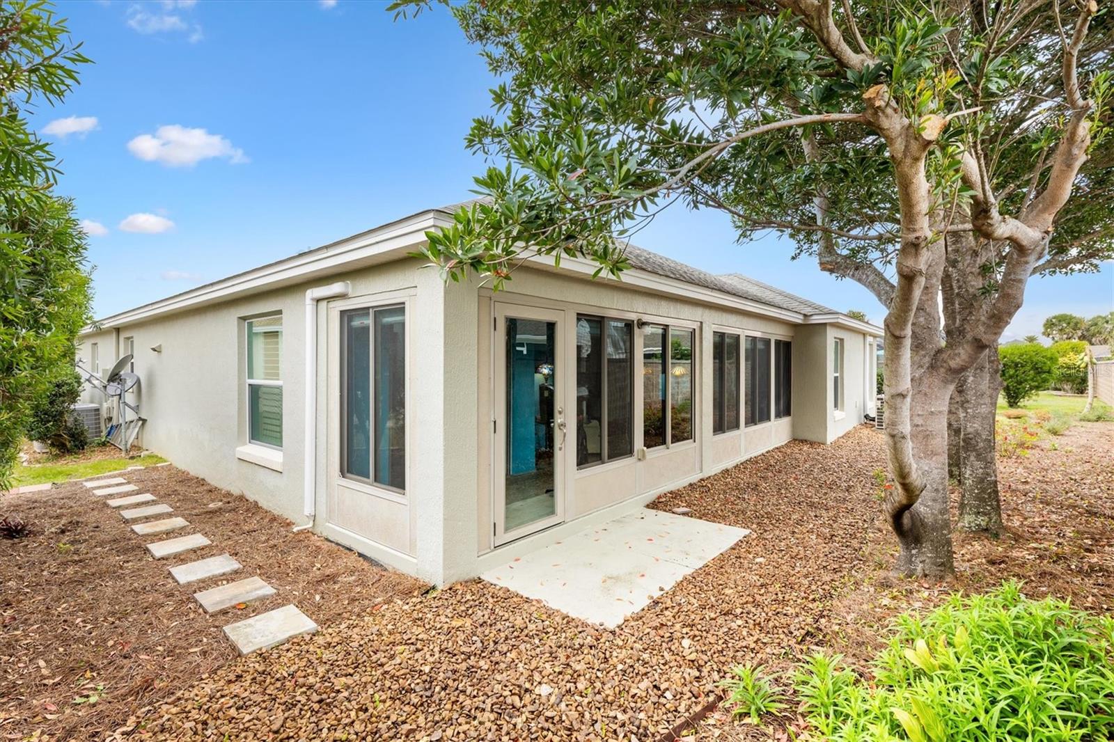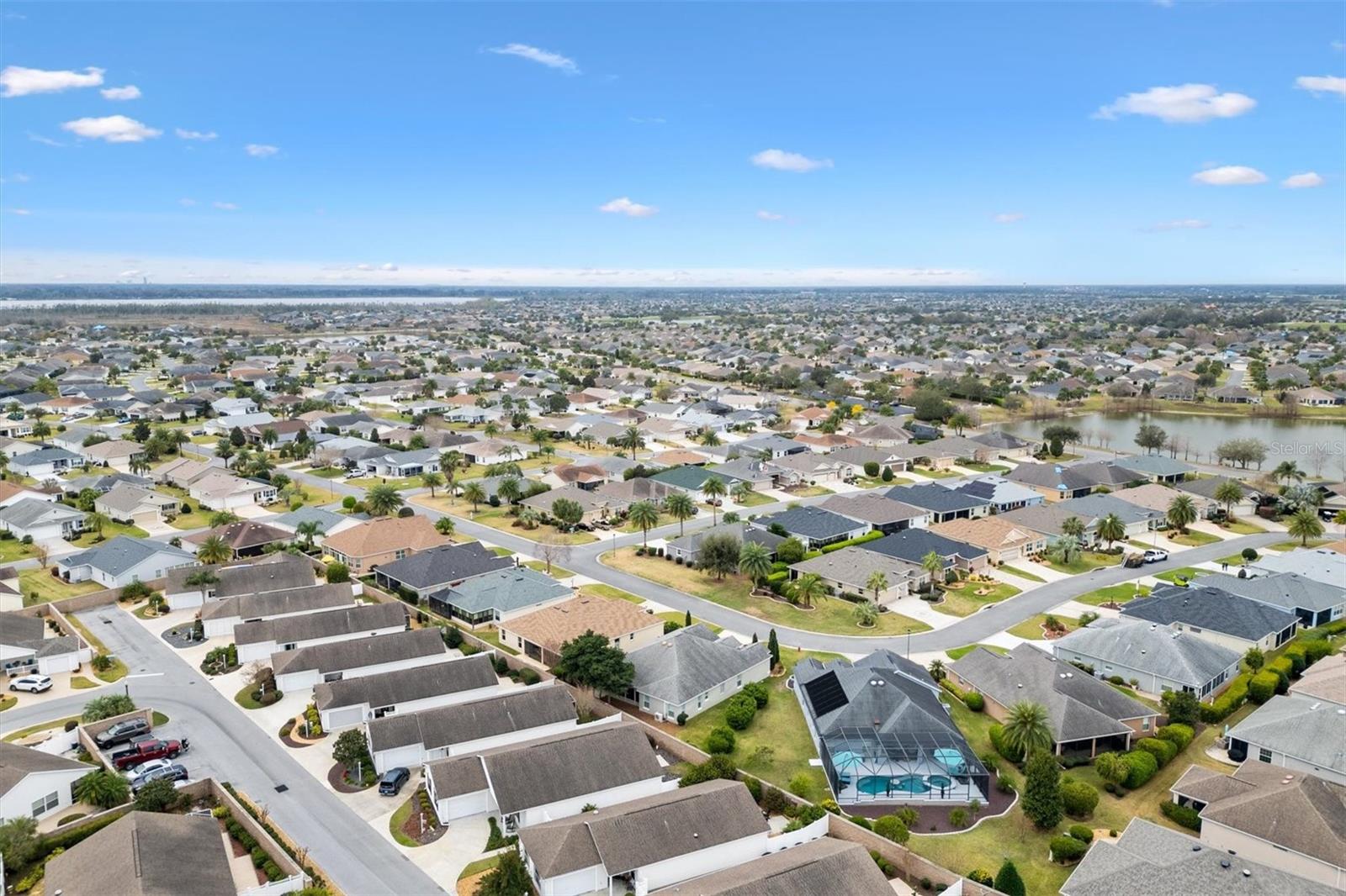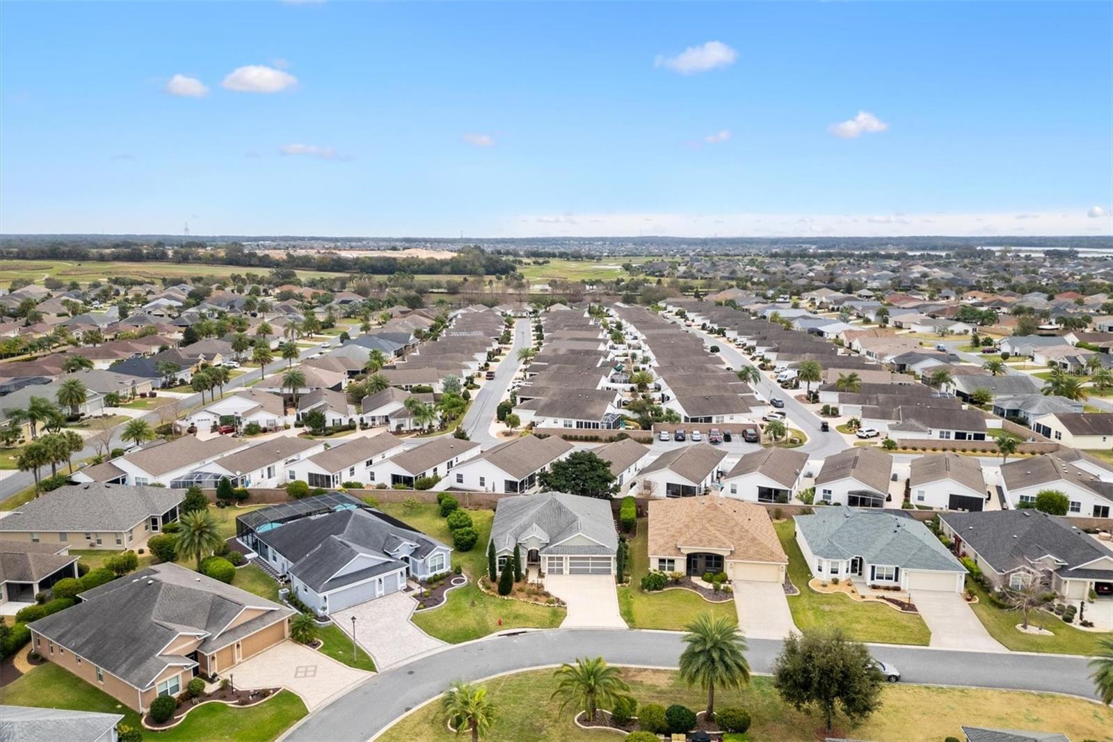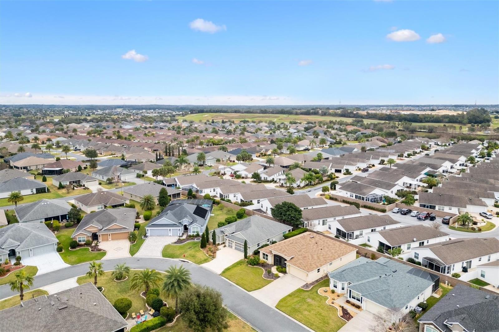 2-Car plus Golf Cart Garage with Privacy Wall. This turn-key 3-bedroom, 2-bathroom Iris floorplan with two-car garage and golf cart garage with privacy in the desirable Village of Charlotte is available to call home. A widened decorative driveway leads to the two-car garage plus golf cart garage, with privacy screens, adding convenience and curb appeal. Step through the covered entry and lead glass doors into a bright foyer, where the split floorplan ensures privacy between the guest and primary suites. To the left, two guest bedrooms provide comfortable accommodations—one featuring a bump-out with plank flooring, while the other also boasts plank floors, both guest rooms have closets. A nearby guest bath has a tiled tub/shower combo and is nestled away for privacy. The open-concept living area is highlighted by vaulted ceilings, creating an airy and inviting space. The kitchen is thoughtfully designed with granite countertops, stainless steel appliances, a decorative tile backsplash, and tile flooring that extends into the dinette and laundry room. Adjacent to the kitchen, the laundry room offers versatility, with space to add extra cabinets or an office nook. The primary suite is a private retreat with a tray ceiling and a mini-split temperature controller for personalized comfort. Enjoy the walk-in closet with a pocket door and closet organizers. The en-suite bath features dual vanities with a granite countertop, a separate water closet, an easy-care Roman shower, and a soaking tub for a spa-like experience. Decorative shutters throughout the home add a charming touch. Step into the enclosed lanai with a mini-split for an ideal space to relax and enjoy the Florida lifestyle year-round. The backyard features a privacy wall and shade, providing a peaceful outdoor escape. With a golf cart available separately, this home is waiting for you to call home. Enjoy The Villages, FL, lifestyle with abundant amenities for you to attend golfing, shopping, dining, and enjoy many entertainment choices, club meetings, medical services, and more, all accessible by a golf cart. (Most art and decor items do not convey.)