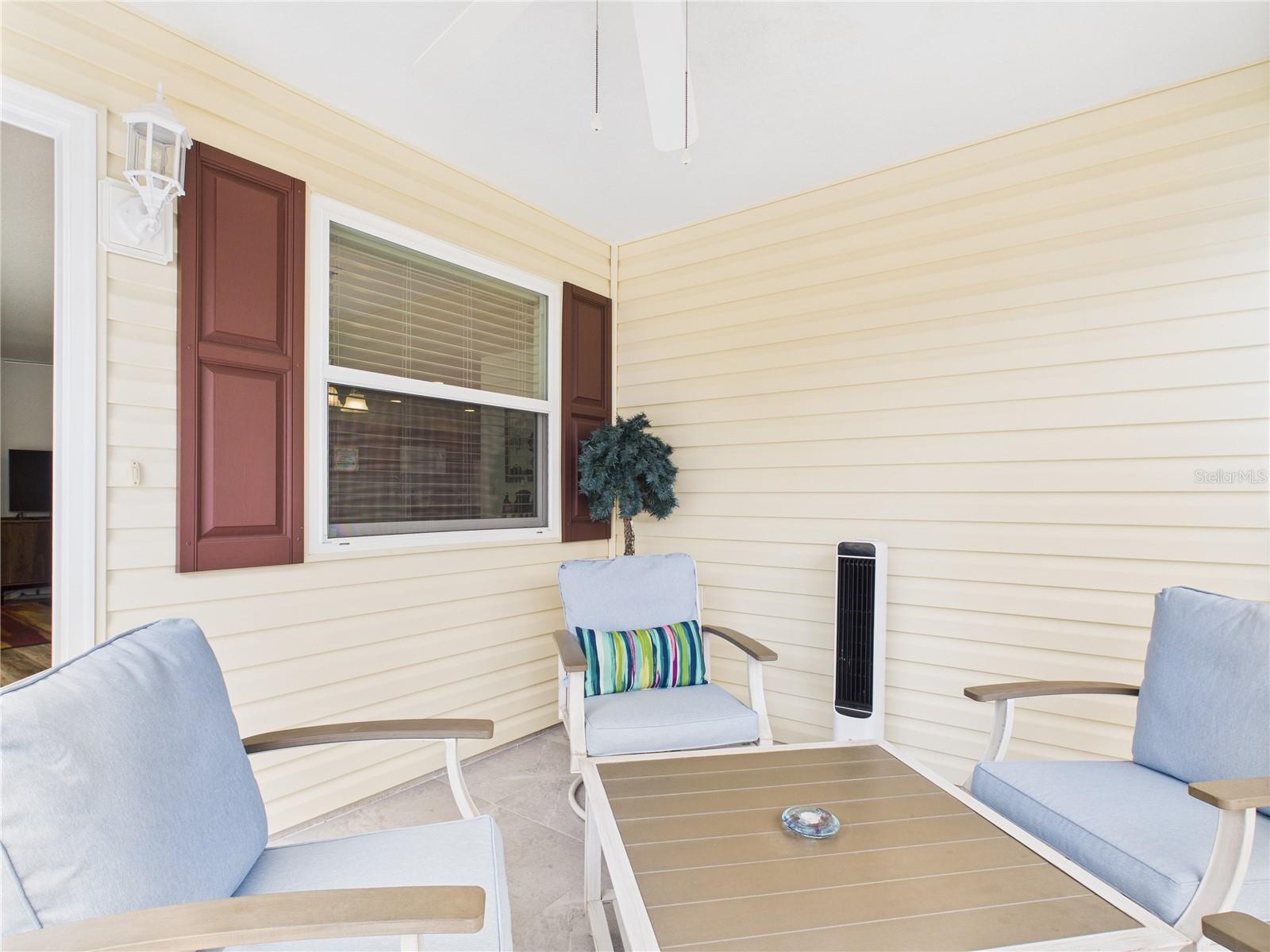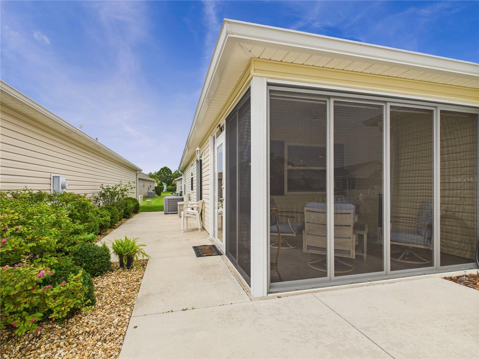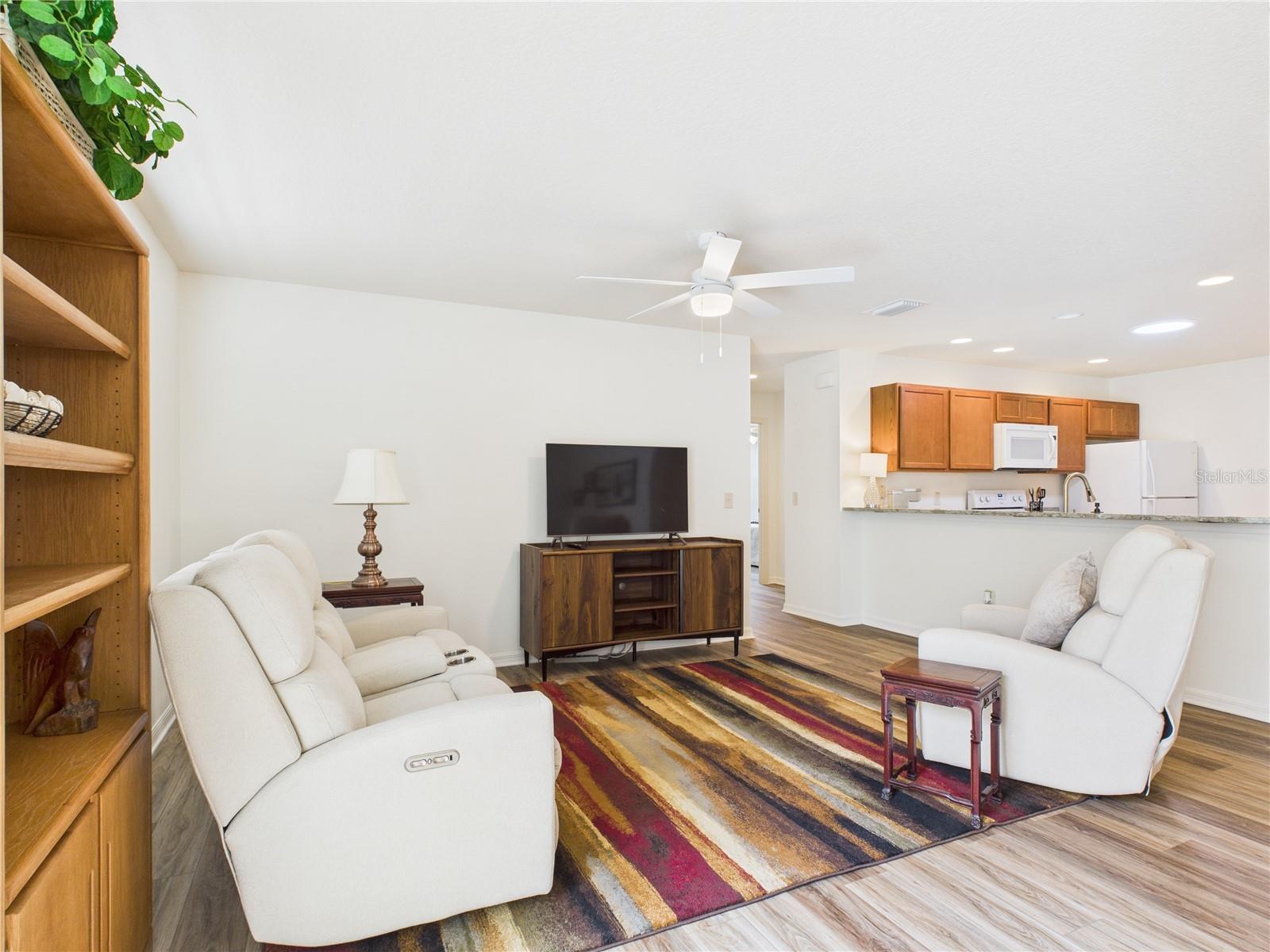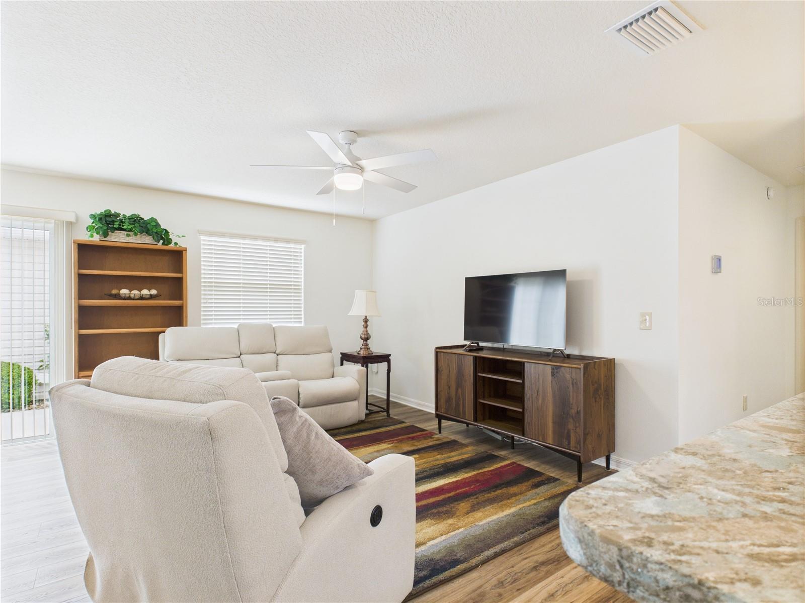 NEW REDUCED PRICE! Meet your perfect home in The Villages in the best location! This beautifully maintained 2-bedroom, 2-bathroom Colony Villa is completely turnkey and provides comfort and convenience in a prime location. The spacious, open floor plan is ideal for both relaxation and entertaining, whatever mood strikes you! With a NEW roof, solar tubes and luxury vinyl throughout the home, you can begin living the dream on the very first day! Step inside to your private enclosed lanai, an ideal space to enjoy the beautiful Florida weather year-round, with an entrance on the side, providing extra privacy. With comfortable seating for 4, you will spend hours relaxing and chatting with the new friends you will make in this exceptionally friendly neighborhood! The large living room provides plenty of natural light, creating a warm and inviting atmosphere. There is a slider opening to your private patio for sunbathing or grilling. The kitchen is fully equipped with modern appliances, ample cabinet space, and a breakfast bar—perfect for casual meals or enjoying your morning coffee. There is even a pantry with additional storage! The primary suite is a peaceful retreat, complete with an ensuite bathroom and generous closet space. The guest bedroom is equally spacious and offers easy access to the newly updated second bathroom. The villa also includes a 1-car garage, large enough for your car and the golf cart, which comes with the home. You will find extra storage space in the garage as well. Located in the Village of Osceola Hills, this home provides access to a vibrant community with numerous amenities, including golf courses, recreation centers, and a variety of social clubs. The neighborhood swimming pool is just outside this villa community. Whether you're looking for relaxation or an active lifestyle, this Colony Villa is the perfect place to call home. Osceola Hills is perfectly located between the "established" Villages, near Brownwood Square, but minutes to the "new" area of the Villages with easy access to Sawgrass Grove and the new Eastport Square (due to open later in 2025). Don’t miss out—schedule your private tour today!