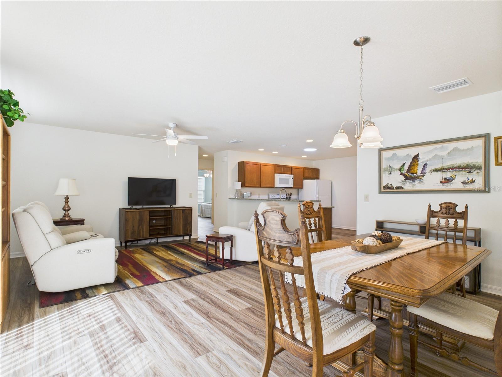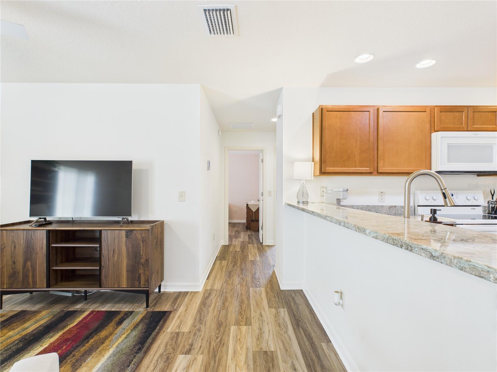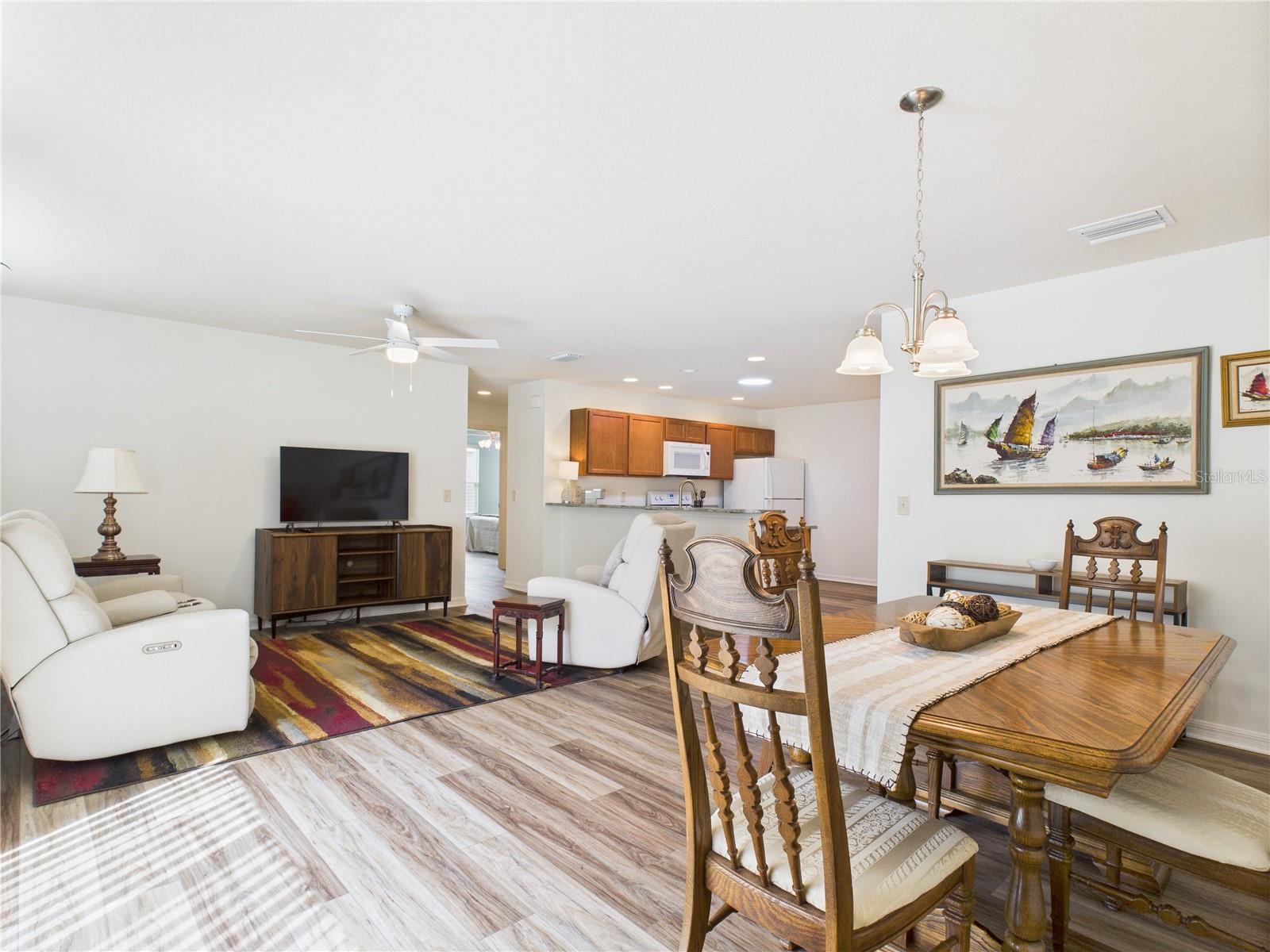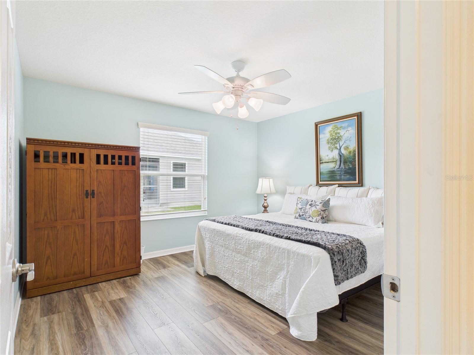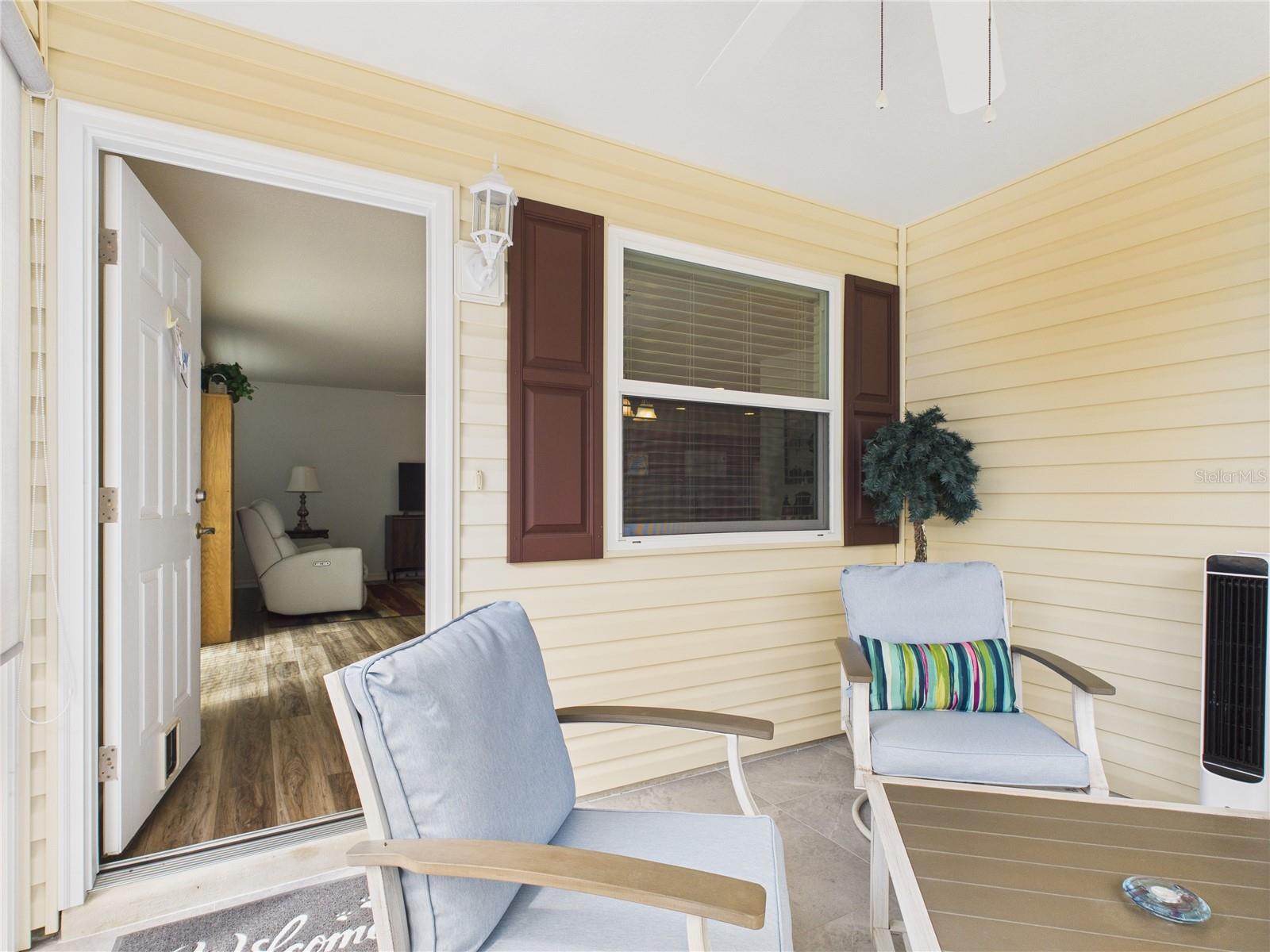NEW REDUCED PRICE! Meet your perfect home in The Villages in the best location! This beautifully maintained 2-bedroom, 2-bathroom Colony Villa is completely turnkey and provides comfort and convenience in a prime location. The spacious, open floor plan is ideal for both relaxation and entertaining, whatever mood strikes you! With a NEW roof, solar tubes and luxury vinyl throughout the home, you can begin living the dream on the very first day! Step inside to your private enclosed lanai, an ideal space to enjoy the beautiful Florida weather year-round, with an entrance on the side, providing extra privacy. With comfortable seating for 4, you will spend hours relaxing and chatting with the new friends you will make in this exceptionally friendly neighborhood! The large living room provides plenty of natural light, creating a warm and inviting atmosphere. There is a slider opening to your private patio for sunbathing or grilling. The kitchen is fully equipped with modern appliances, ample cabinet space, and a breakfast bar—perfect for casual meals or enjoying your morning coffee. There is even a pantry with additional storage! The primary suite is a peaceful retreat, complete with an ensuite bathroom and generous closet space. The guest bedroom is equally spacious and offers easy access to the newly updated second bathroom. The villa also includes a 1-car garage, large enough for your car and the golf cart, which comes with the home. You will find extra storage space in the garage as well. Located in the Village of Osceola Hills, this home provides access to a vibrant community with numerous amenities, including golf courses, recreation centers, and a variety of social clubs. The neighborhood swimming pool is just outside this villa community. Whether you're looking for relaxation or an active lifestyle, this Colony Villa is the perfect place to call home. Osceola Hills is perfectly located between the "established" Villages, near Brownwood Square, but minutes to the "new" area of the Villages with easy access to Sawgrass Grove and the new Eastport Square (due to open later in 2025). Don’t miss out—schedule your private tour today!