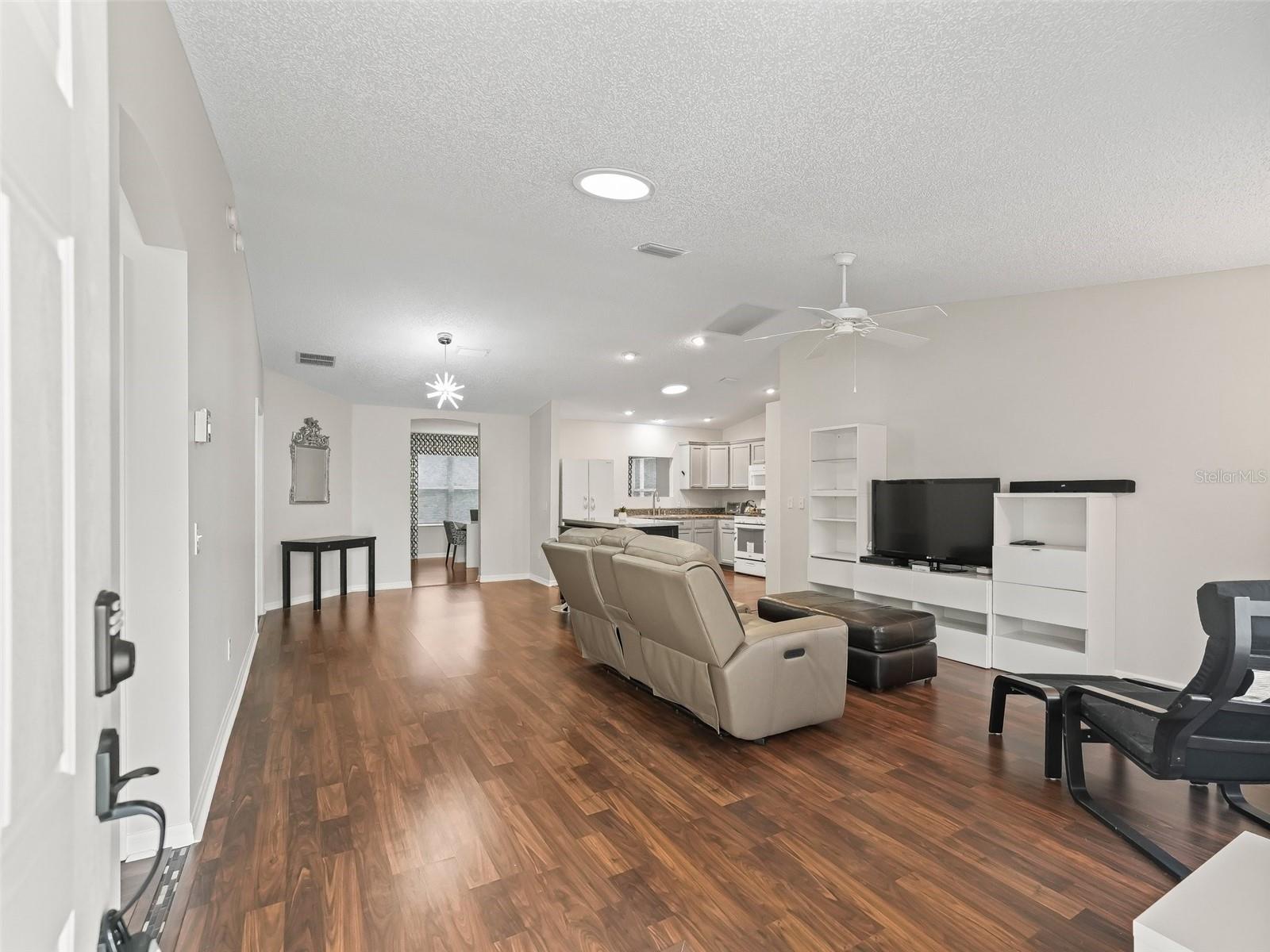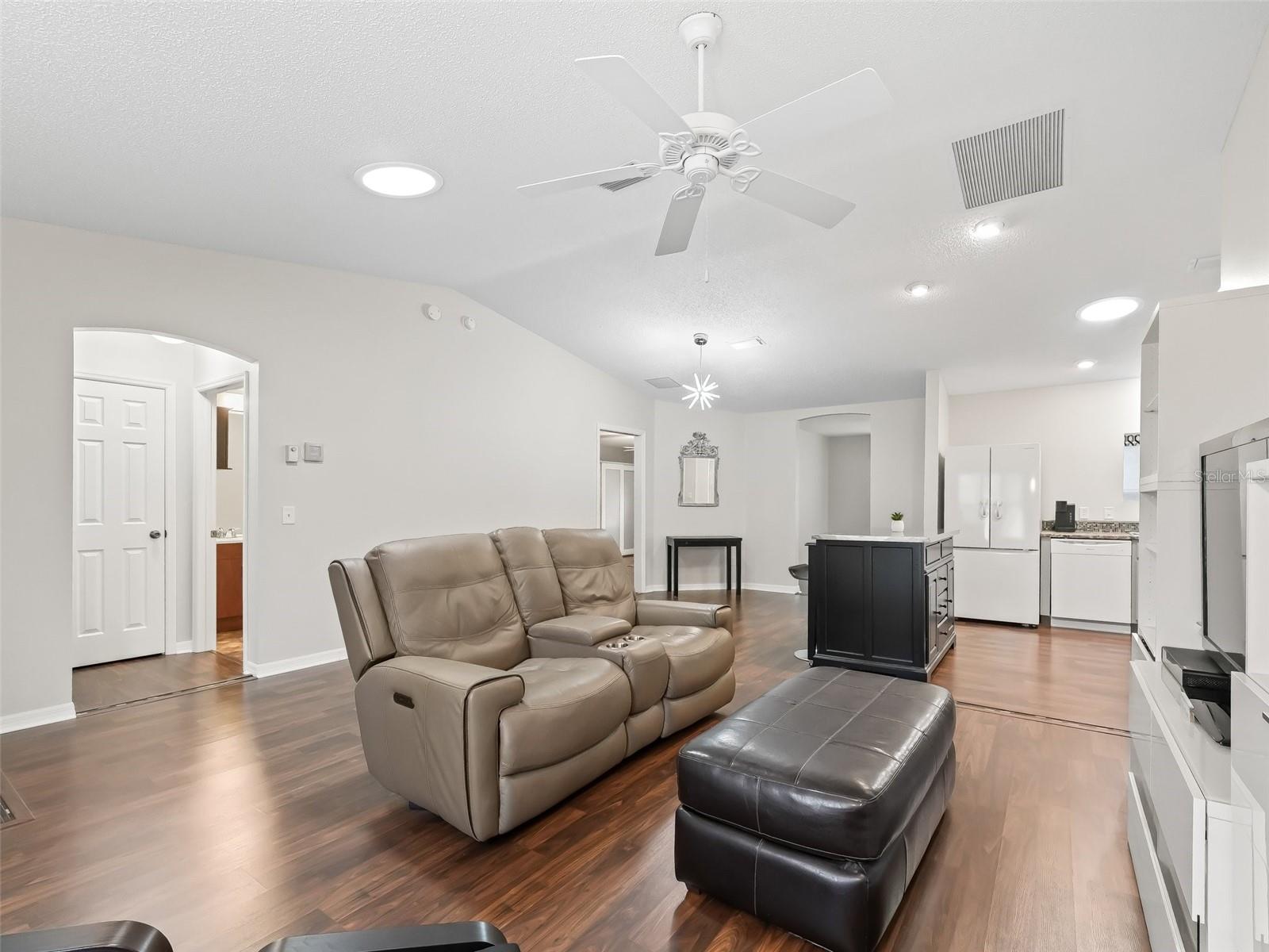 NEW PRICE + NEW MOTIVATION — BRING ALL OFFERS! Welcome to your dream home in The Villages, Florida—America’s premier 55+ community! This beautifully maintained TURNKEY Austin Model with PAID BOND offers 1,440 sq ft of thoughtfully designed living space. Move-in ready with major updates already completed: ROOF (2018), AC & water heater (2014), and water softener (2022). Featuring 2 bedrooms, 2 bathrooms, and an open-concept layout, this home is ideal for everyday living and entertaining. The kitchen boasts a brand-new center island with a stainless steel top and pullout 2-seat bar table, a new GAS stove, washer, and dryer, plus a newer refrigerator and microwave. No carpet throughout—just clean, easy-care flooring. The spacious primary suite includes wall-to-wall IKEA closet systems, offering excellent storage solutions. Both bathrooms have been updated with stylish Corian countertops and modern cabinetry. You'll love the convenience of indoor laundry and the added living space in the enclosed Florida room—a perfect spot for morning coffee or relaxing in the evenings. Enjoy Florida’s beautiful weather in the screened-in birdcage lanai, surrounded by landscaping and nestled in the desirable Village of Summerhill. Golf lovers will appreciate being near executive courses like Hawkes Bay and Saddlebrook. You're just a golf cart ride away from recreation centers, pools, pickleball courts, and nightly entertainment at the town squares. Whether you're seeking a full-time residence or a seasonal retreat, this low-maintenance home offers comfort, upgrades, and The Villages lifestyle you've been dreaming of. Schedule your private showing today! Golf Cart Sold Separately