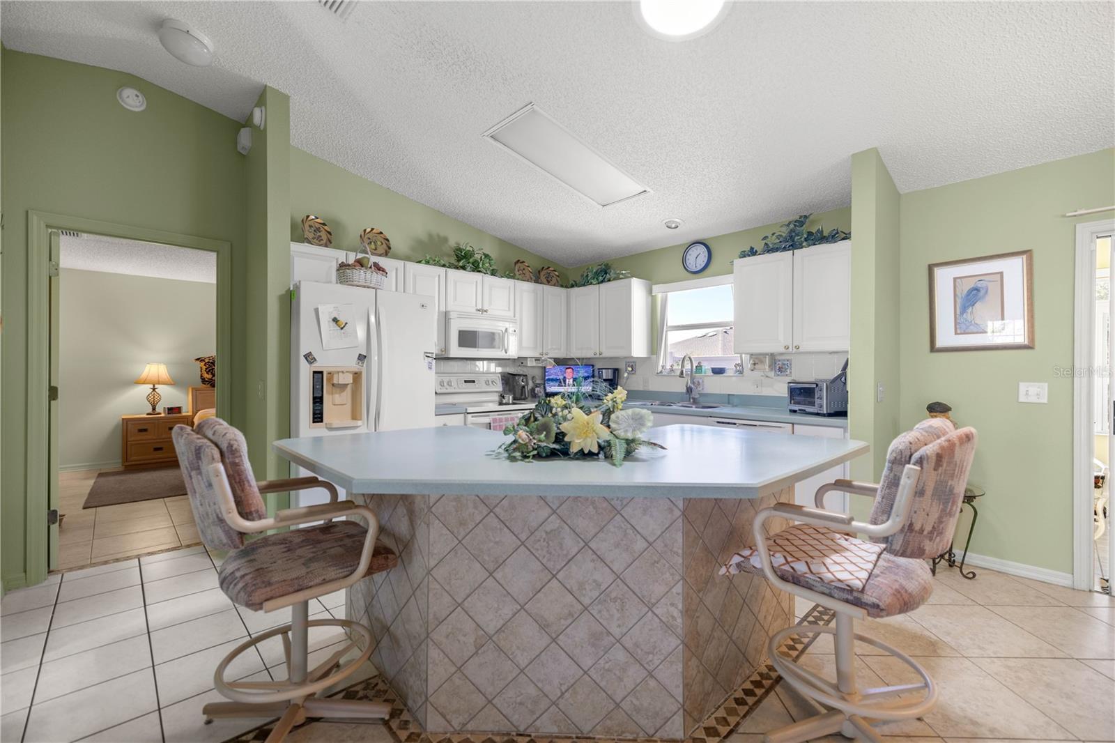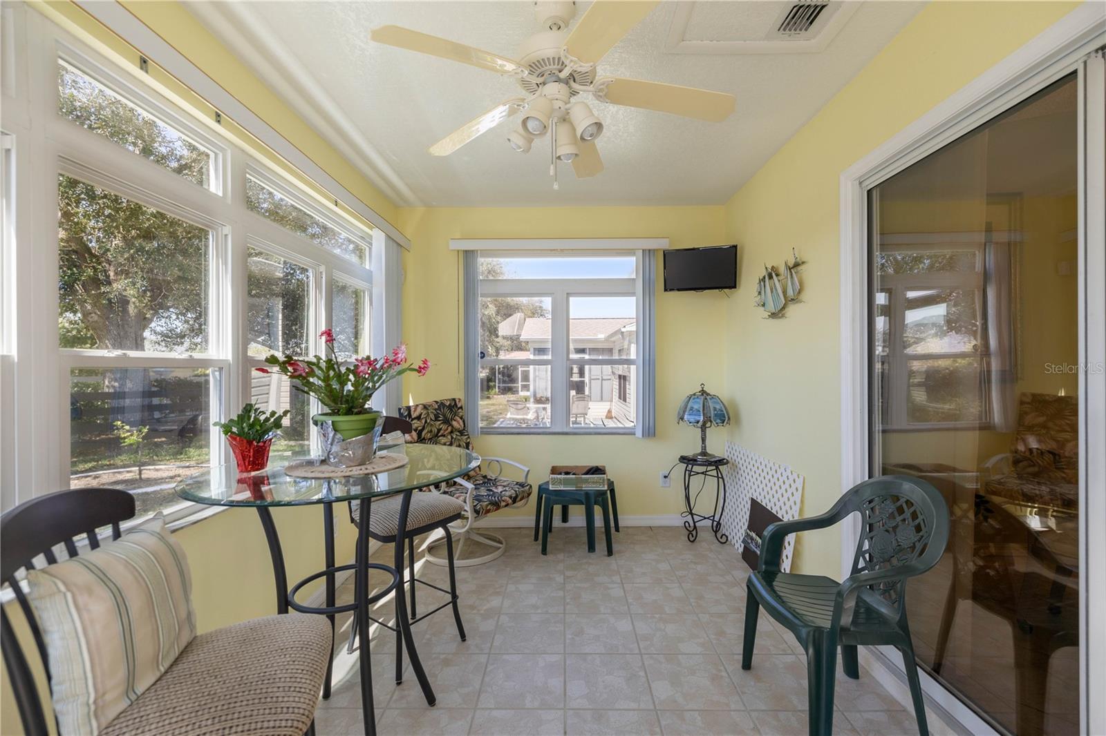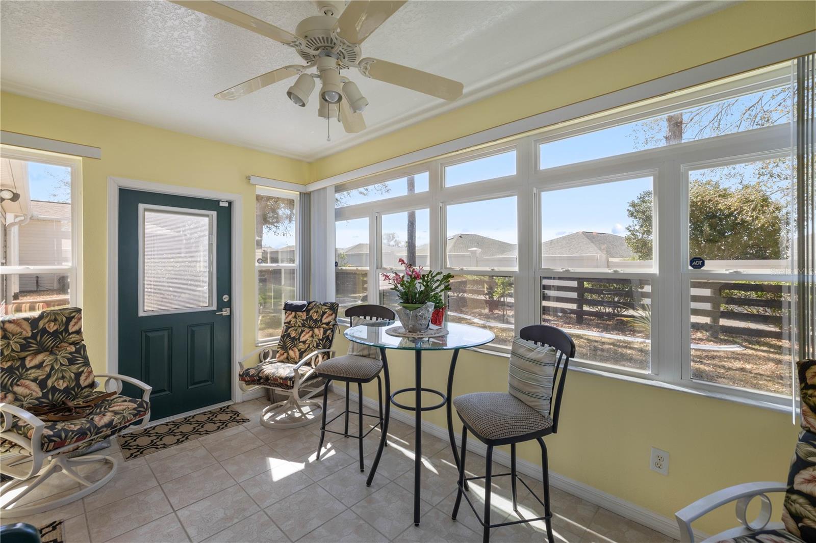 Charming "Turnkey" home with Private Backyard & Enclosed Lanai located in the Village of Alhambra! This comfortable, move-in-ready home has everything you need, including NO BOND, 2020 roof, AC 2011 and water heater 2023, solar tubes, natural gas, and convenient inside laundry. The private backyard is a peaceful retreat, featuring peach, lemon, and two grapefruit trees—perfect for enjoying fresh fruit right at home. The garage offers attic stairs and a screened enclosure, adding extra storage and versatility. This home is being sold turnkey, so all you need to do is unpack and start living your BEST LIFE! Ideally located just minutes from Publix, Walmart, Bonefish Grill, HomeGoods, Marshals, the new Costco, and more, with Sumter Landing and Spanish Springs only a short golf cart ride away. Don’t miss this wonderful opportunity—schedule your showing today!