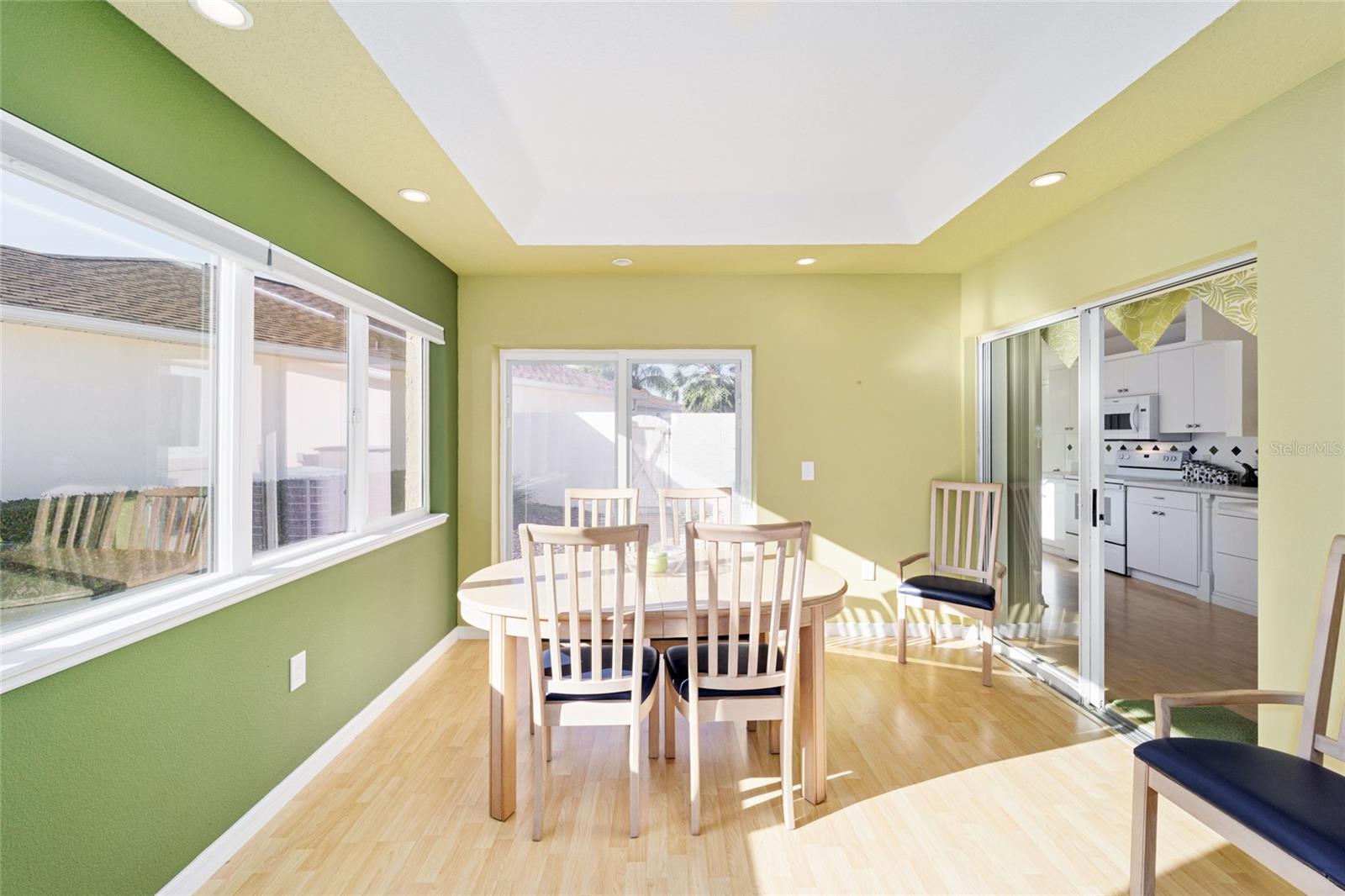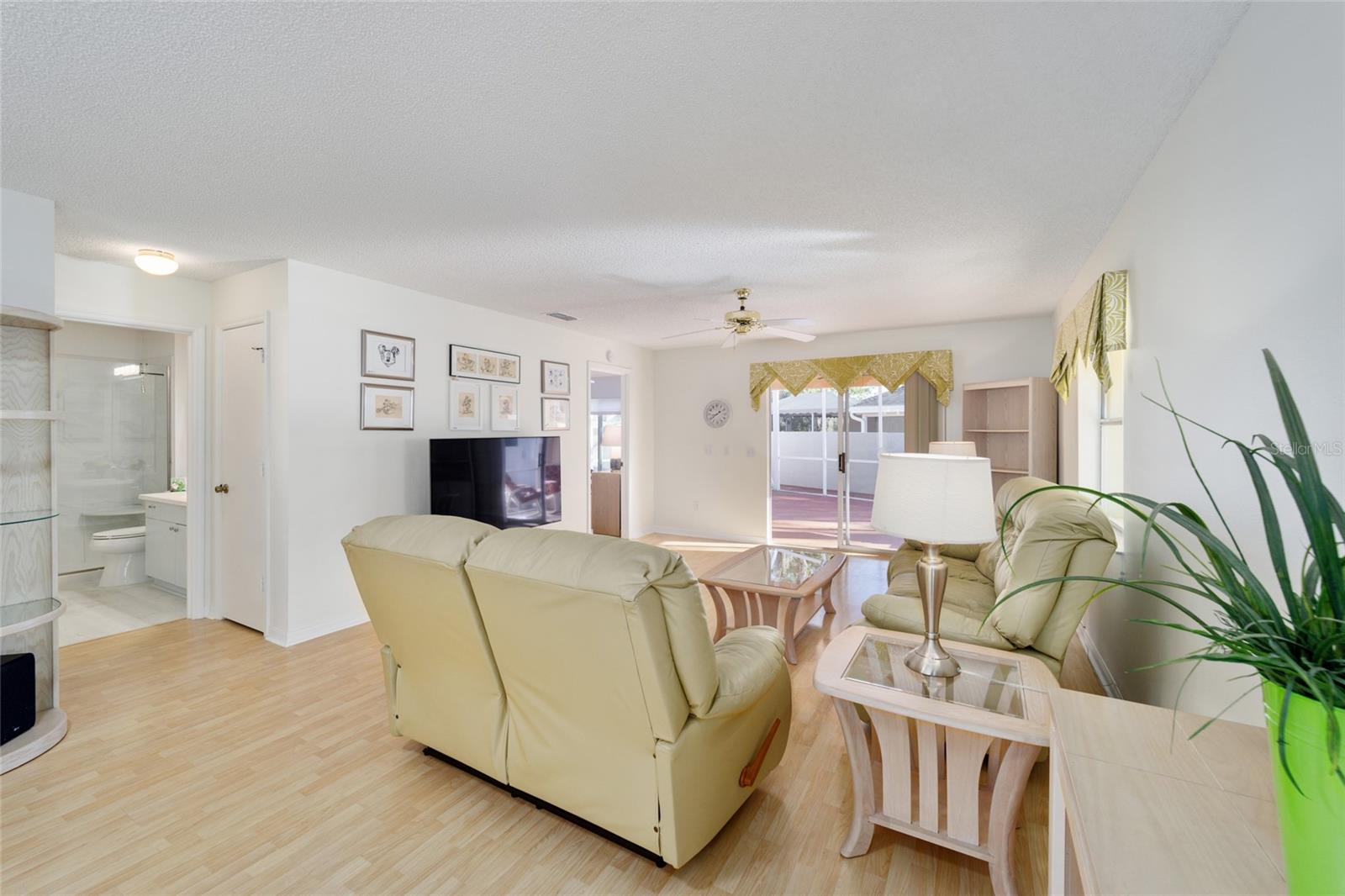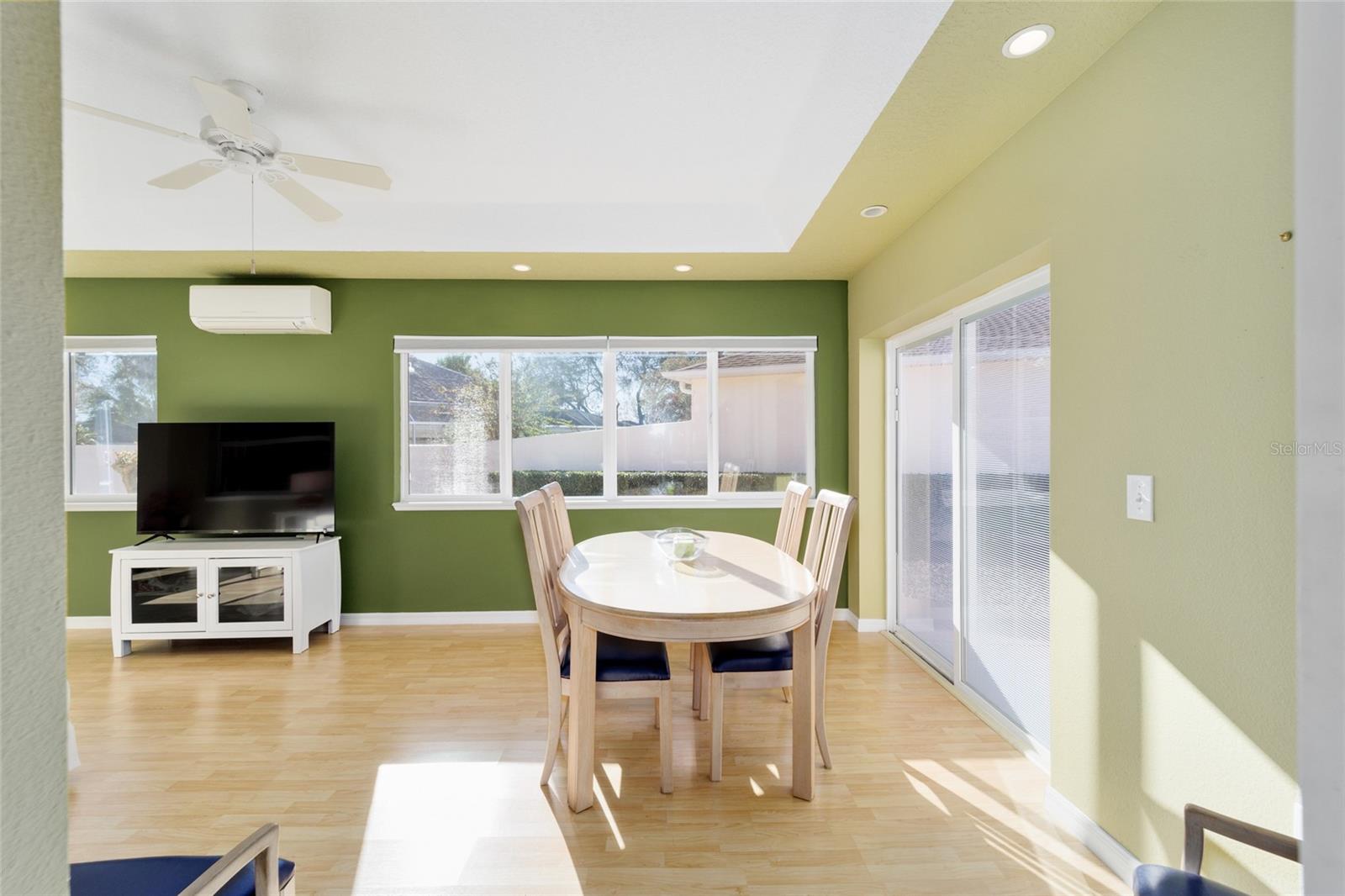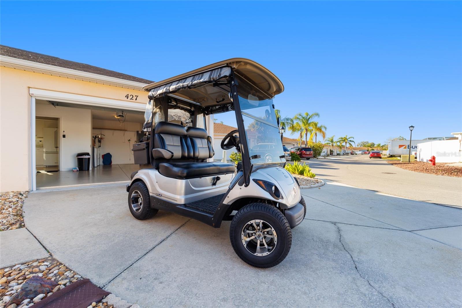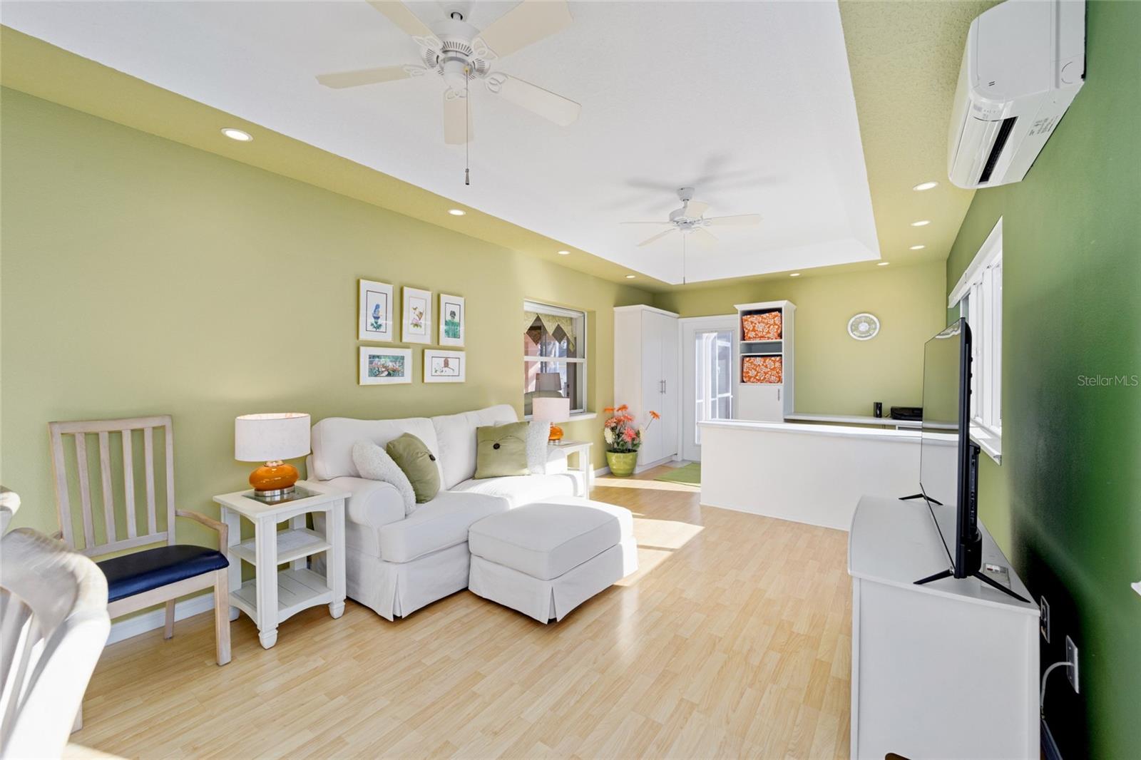 TURNKEY WITH 2015 YAMAHA GAS GOLF CART!! Expanded 2/2 Mazatlán/Baja Model Courtyard Villa Home* 1435 SQFT* BOND PAID* This Truly Unique Home has everything you need! Located in Villa De La Vista North, Less than 2 Miles from Spanish Springs Town Square™ and Lake Sumter Landing Market Square™. This home has been Modified to Include an Expanded Kitchen with Added Cabinets and Counter Height Breakfast Bar, The Addition to The Home Includes Nice Size Family/Craft Room and Dining Area, with 2 Doors out to the Spacious Courtyard Area, Built-In Desks, Cabinets and Storage. Tray Ceiling with Recessed Lights and Mini Split for Heat and Air. Craft? Sew? Need a Home Office Area? Just Want to Entertain? Or Relax? This Home is for You! Family Room and Living Room in this Home! Guest Bathroom and Primary Bathroom have been updated with Seamless Jetta Stone Step In Showers and Comfort Height Toilets! Living Room and Primary Suite have Sliders to Covered Rear Patio and BirdCage area, Outdoor Living with Less Upkeep! No Grass to Mow in This Yard! More time to BBQ, Entertain and Just Live the Lifestyle! Garage has Epoxy Painted Floor and Garage Screen, Parking for your Car and Golf Cart. Roof 2014, HVAC 2013. Neighborhood has Guest Parking Spots Across from Home! Bring Your Suitcase, Move Right In and Drive your Golf Cart to the Nightly Entertainment!