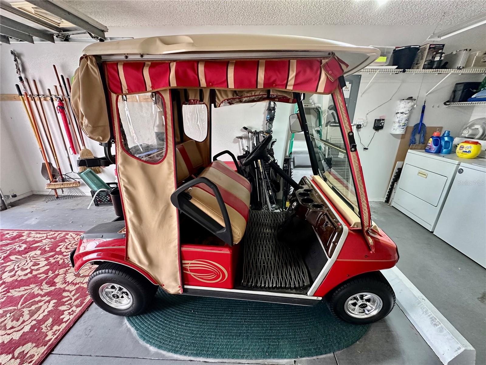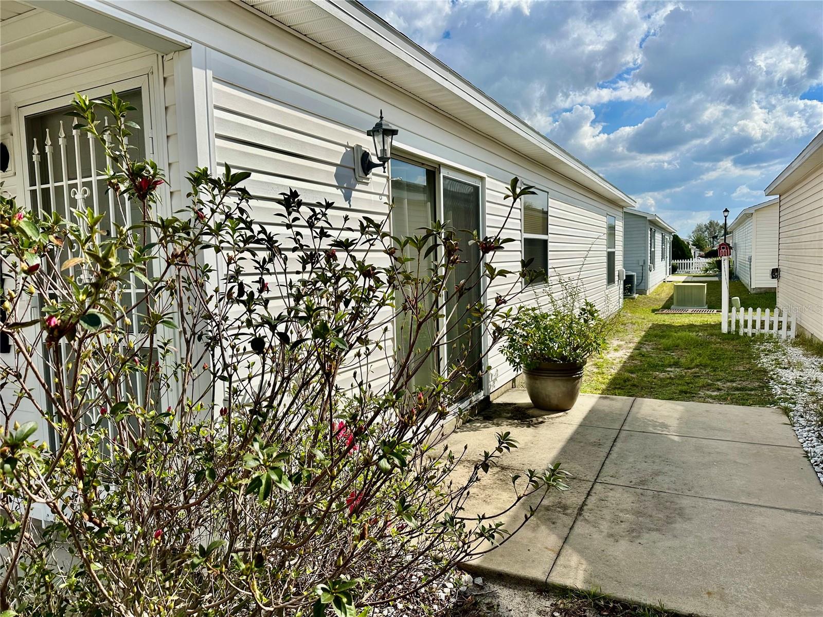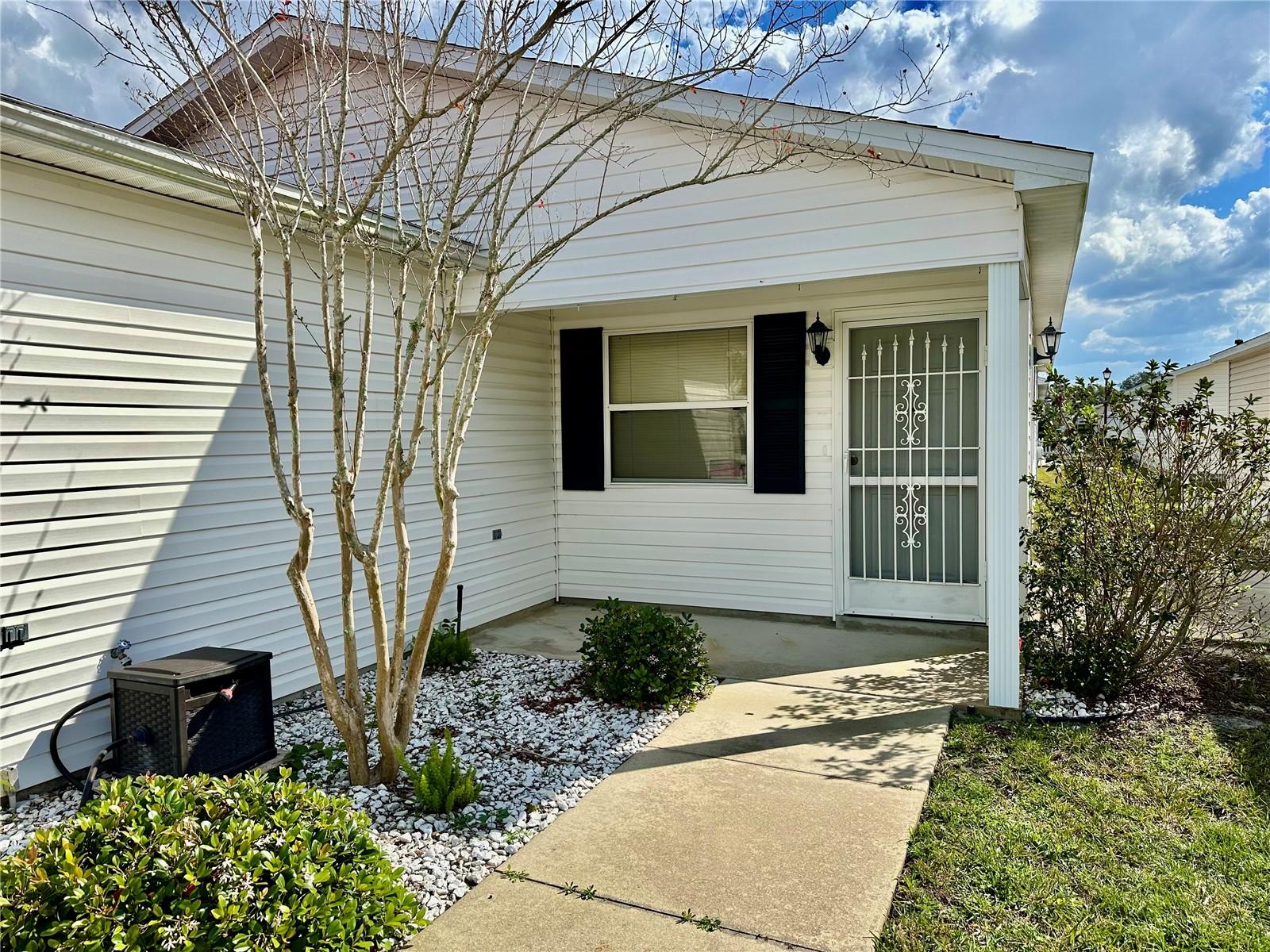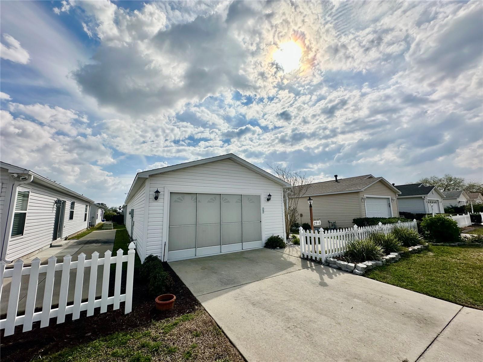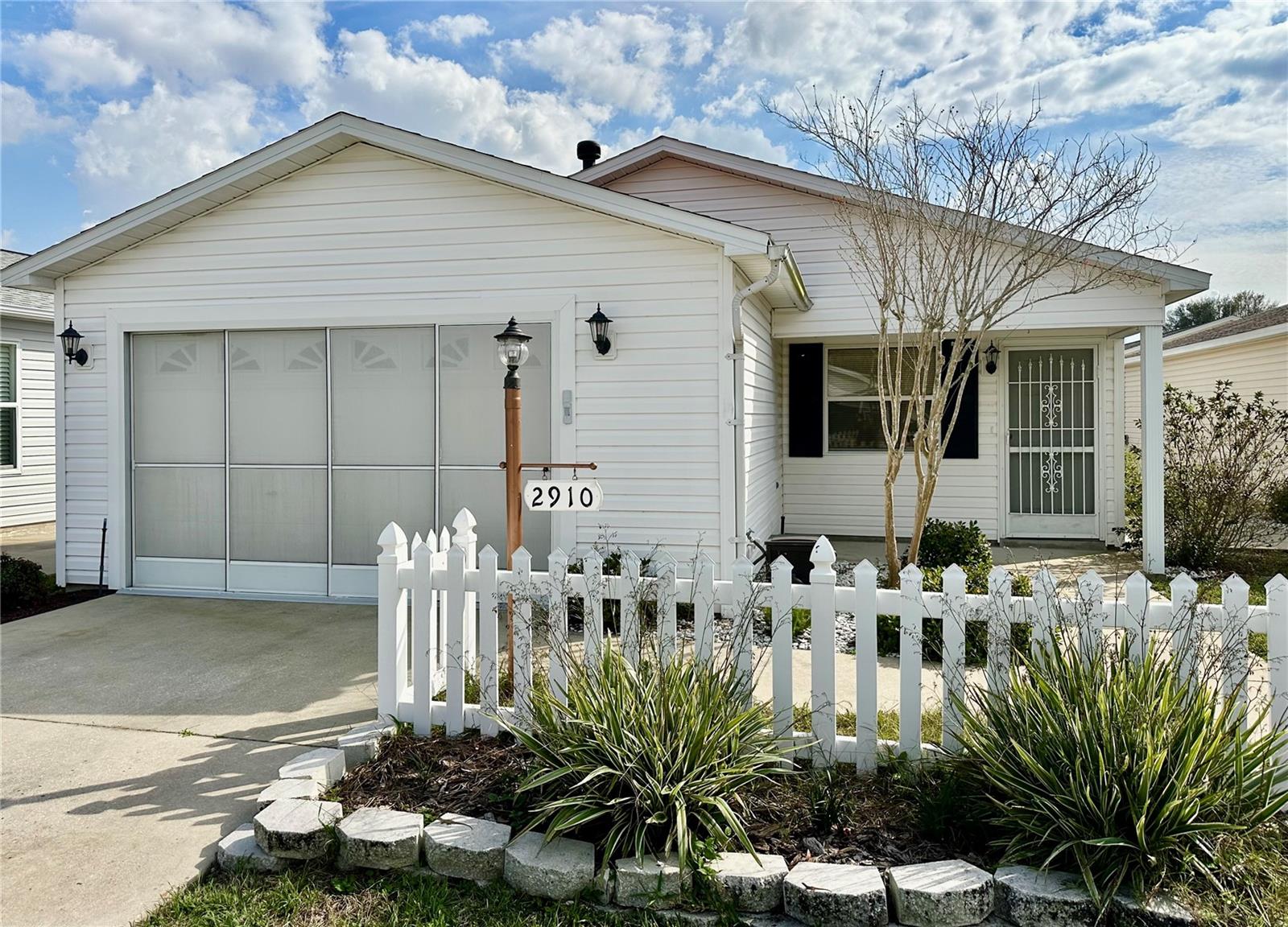 Beautiful Patio Villa near the Polo field available Turnkey including Golf Cart if desired. This stylish 2 bedroom, 2 bath Villa is in a popular location within The Villages, minutes to Lake Sumter Landing and Spanish Springs-BOND PAID! New roof and HVAC in 2020. Tastefully and cheerfully decorated in Florida Style with plenty of light and open airy spaces. Bedrooms are carpeted for comfort and living room with warm wood luxury vinyl. The well-appointed kitchen has a pantry, breakfast bar and space for a dinette. The generously sized primary bedroom has attached bathroom and roomy walk-in closet. The garage door has an entry door/screen with keypad for those workshop puttering days. Washer and dryer included. Enjoy the Village of Santiago with it's two great golf courses and the El Santiago Recreation Center with pool, bocce, tennis, pickleball and shuffleboard. Live your best life in this warm and inviting home in Florida's Friendliest Hometown!