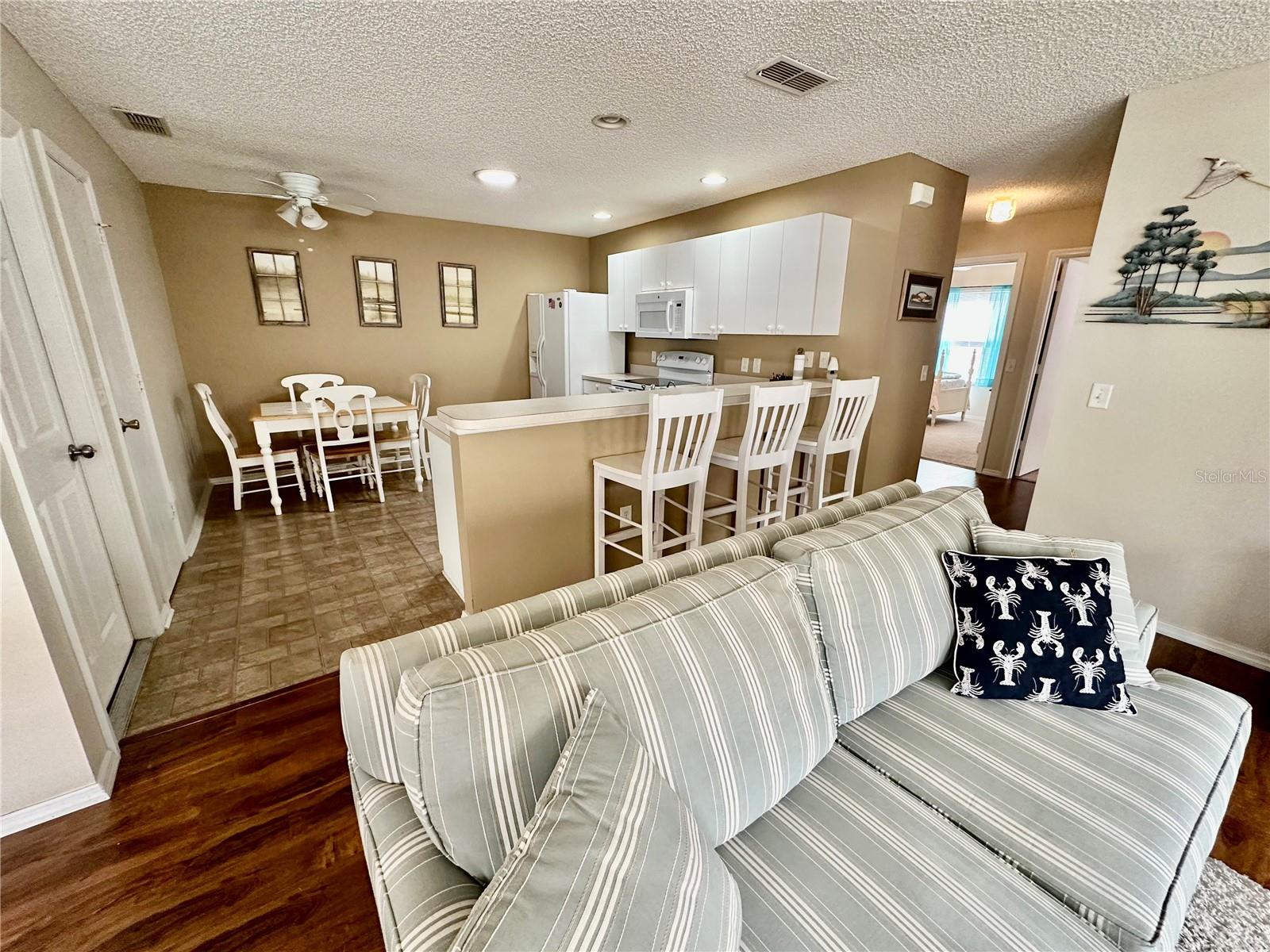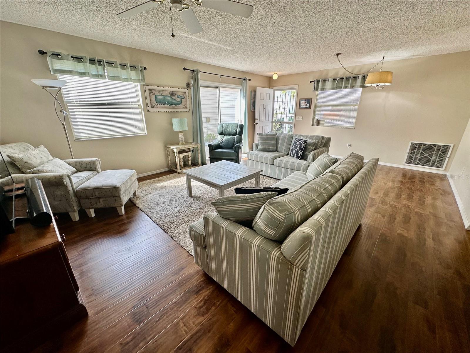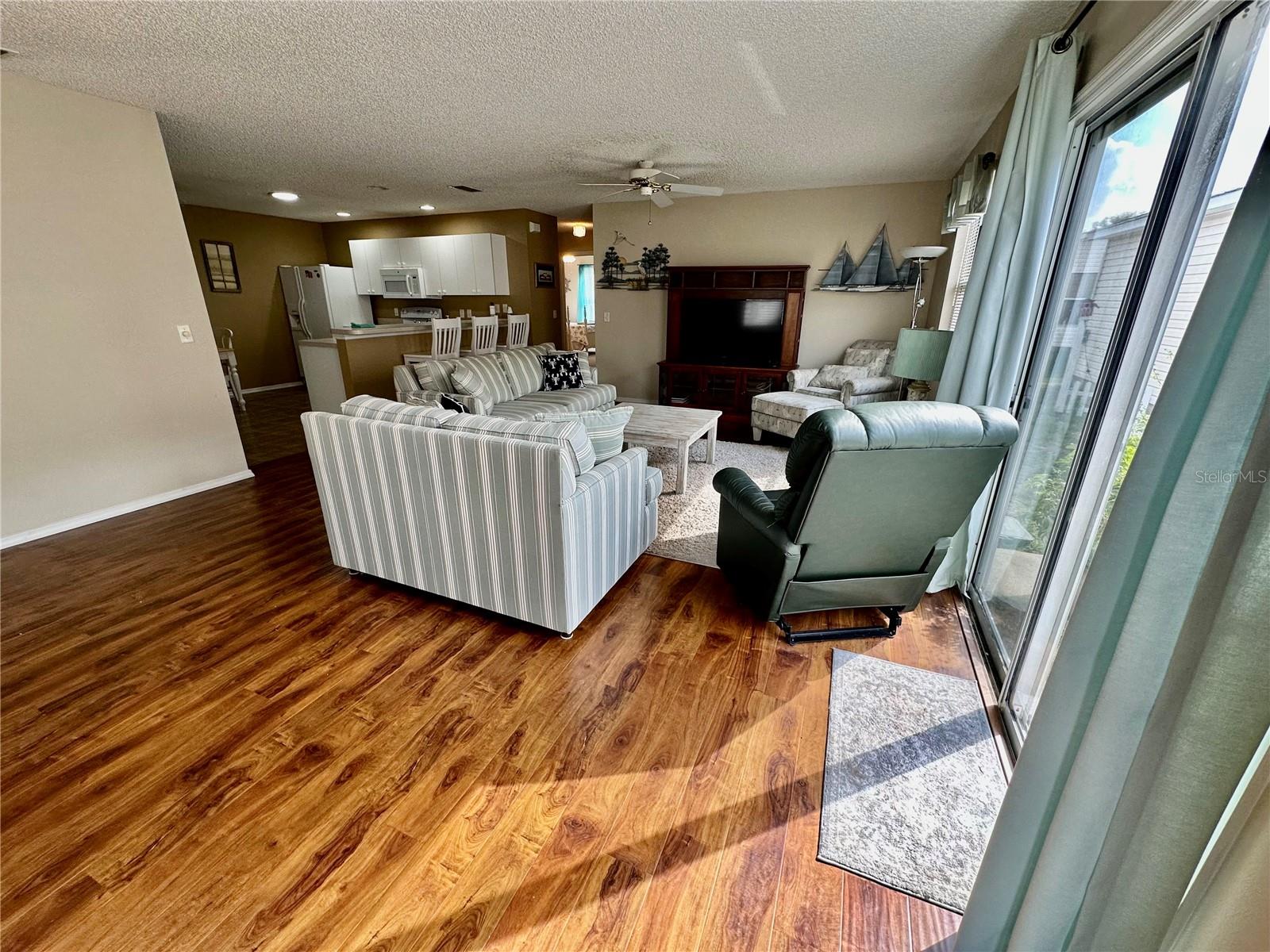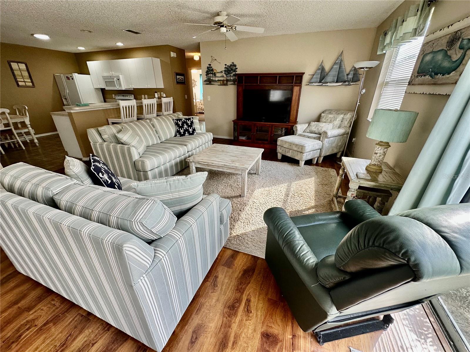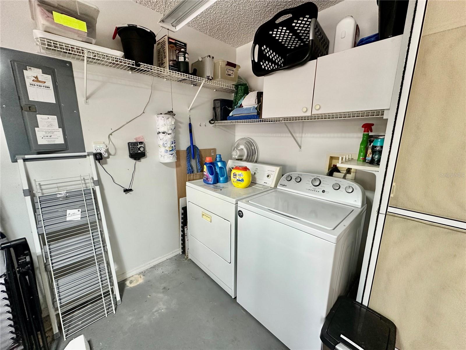 Beautiful Patio Villa near the Polo field available Turnkey including Golf Cart if desired. This stylish 2 bedroom, 2 bath Villa is in a popular location within The Villages, minutes to Lake Sumter Landing and Spanish Springs-BOND PAID! New roof and HVAC in 2020. Tastefully and cheerfully decorated in Florida Style with plenty of light and open airy spaces. Bedrooms are carpeted for comfort and living room with warm wood luxury vinyl. The well-appointed kitchen has a pantry, breakfast bar and space for a dinette. The generously sized primary bedroom has attached bathroom and roomy walk-in closet. The garage door has an entry door/screen with keypad for those workshop puttering days. Washer and dryer included. Enjoy the Village of Santiago with it's two great golf courses and the El Santiago Recreation Center with pool, bocce, tennis, pickleball and shuffleboard. Live your best life in this warm and inviting home in Florida's Friendliest Hometown!