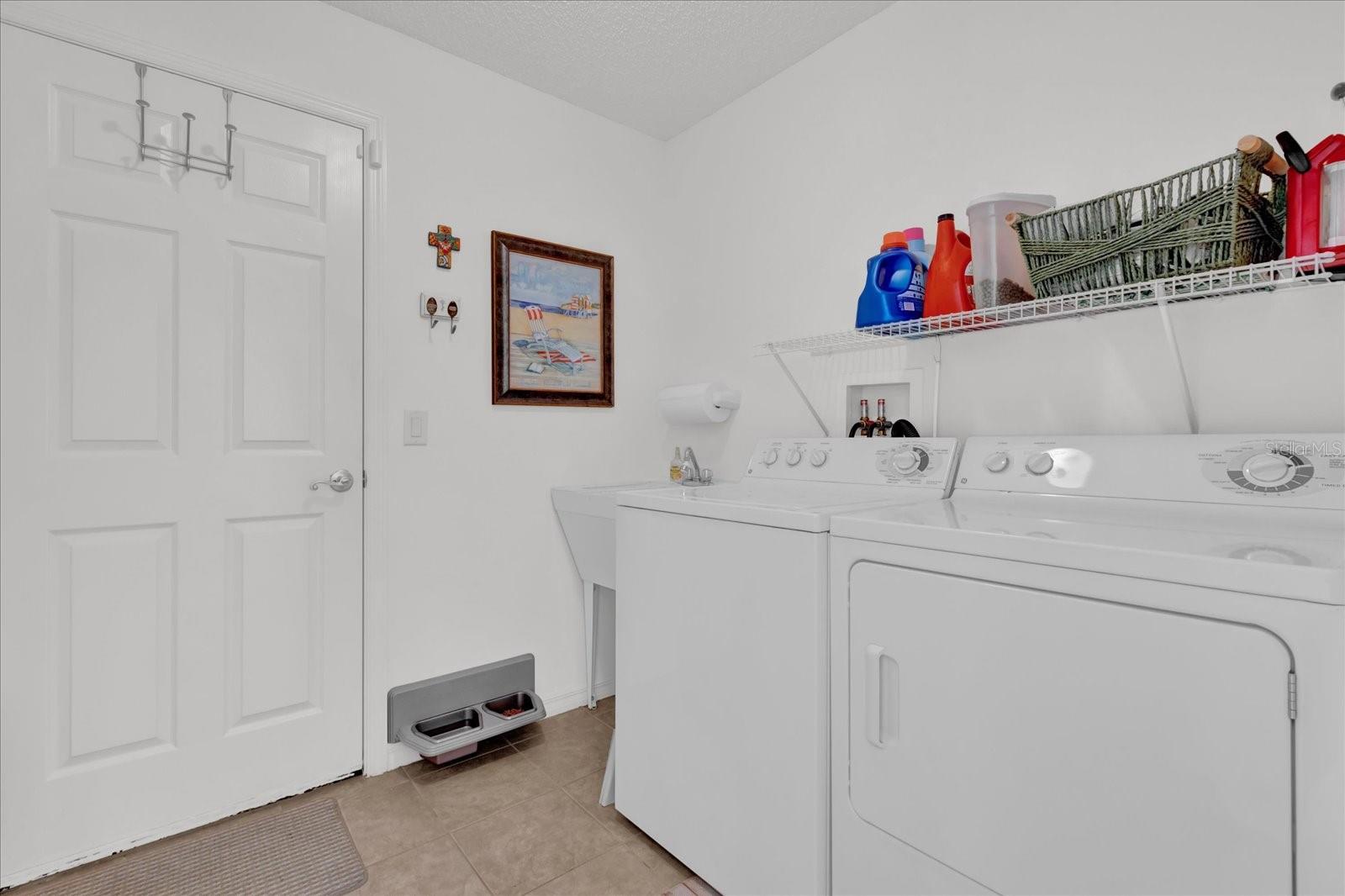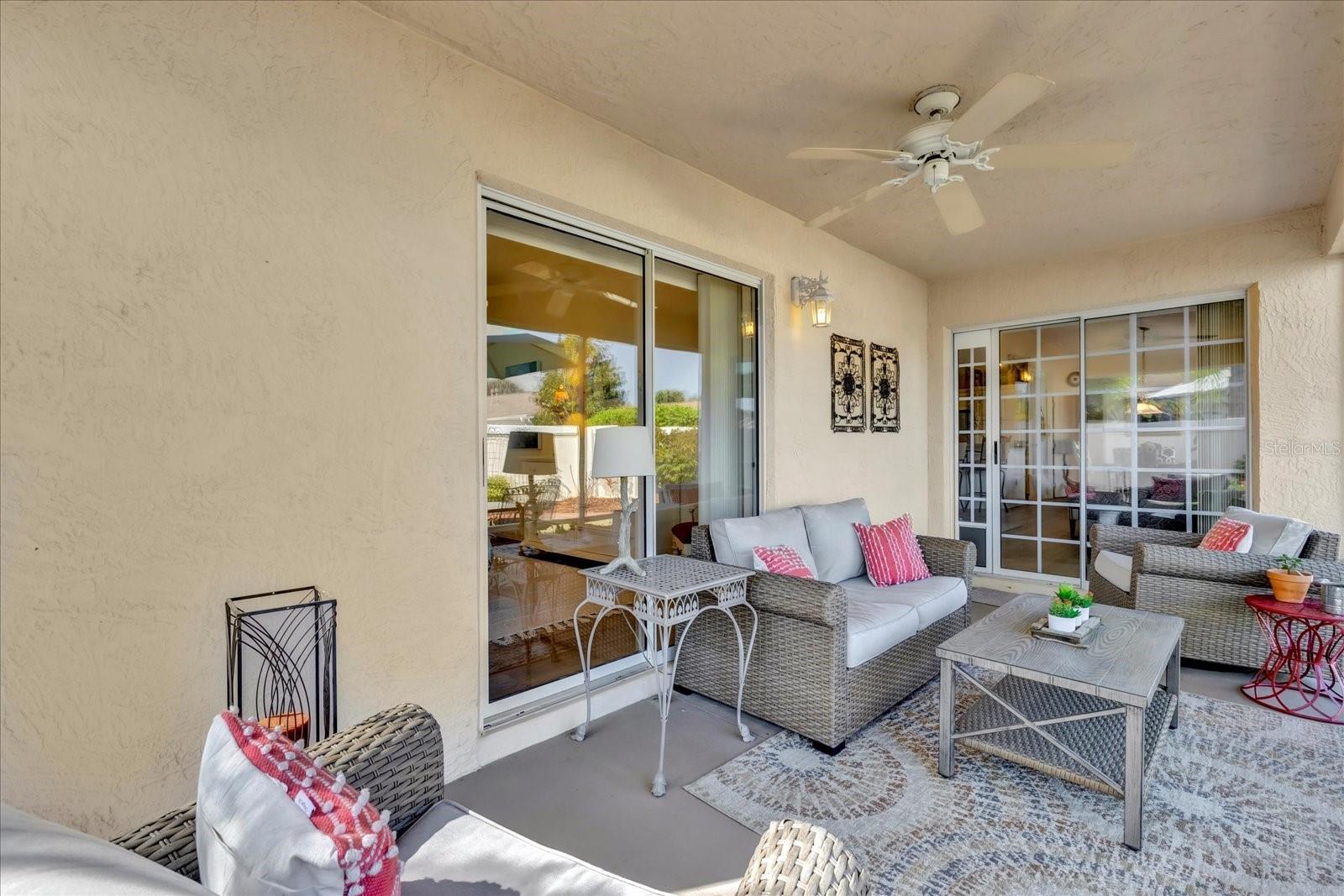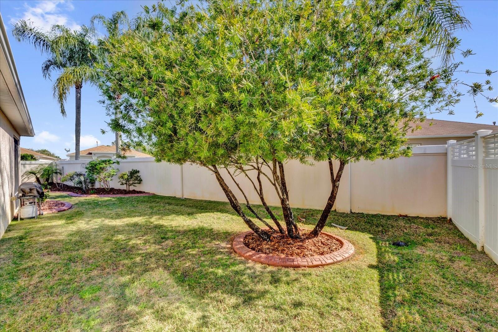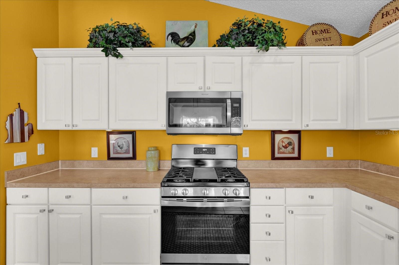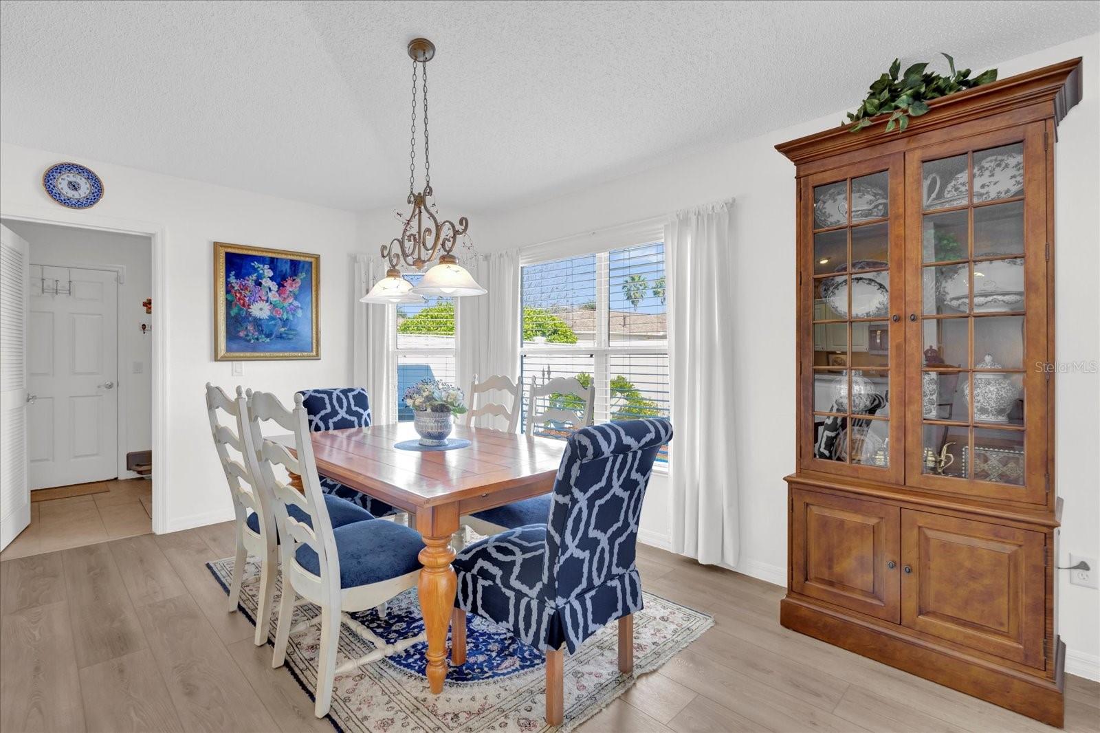 Discover this charming Grantham/Arlington floor plan courtyard villa, constructed with poured concrete and stucco for lasting durability. Situated on a spacious corner homesite, this home offers extra outdoor space, perfect for future expansion or added privacy. Featuring 3 bedrooms and 2 bathrooms, the interior is designed for easy maintenance with luxury vinyl flooring throughout, complemented by tile in the wet areas. The volume ceilings create an open and airy atmosphere, enhancing the home's inviting feel. The well-appointed kitchen features elegant White Bay cabinetry, stainless steel appliances, a gas range, and a side-by-side refrigerator, making it a functional and stylish space. For added convenience, the microwave, refrigerator, and stove were all replaced in August 2023 and dishwasher in April 2025. A welcoming front porch adds curb appeal, while the screened-in lanai at the rear provides a relaxing retreat. Courtyard villas are highly desirable for their low-maintenance lifestyle, making them an excellent choice for pet owners due to the enclosed and fenced yard or those seeking an easy-care home. Additional features include an interior laundry room, enhanced landscaping with Curb-It and decorative rock beds, double-pane windows, blinds, and gas utilities for efficiency. To enhance energy savings, vents were added to the bottom of the garage door along with a fan for improved air circulation. A new roof was installed in April 2024, offering added peace of mind. With a low bond balance of $4,765, this home is a fantastic value compared to similar properties. The location puts you in close proximity to the Bogart and Bacall executive golf courses, the Largo Recreation center featuring a family pool, an adult pool, and several tennis and pickleball courts. This is your chance to own a little slice of paradise!