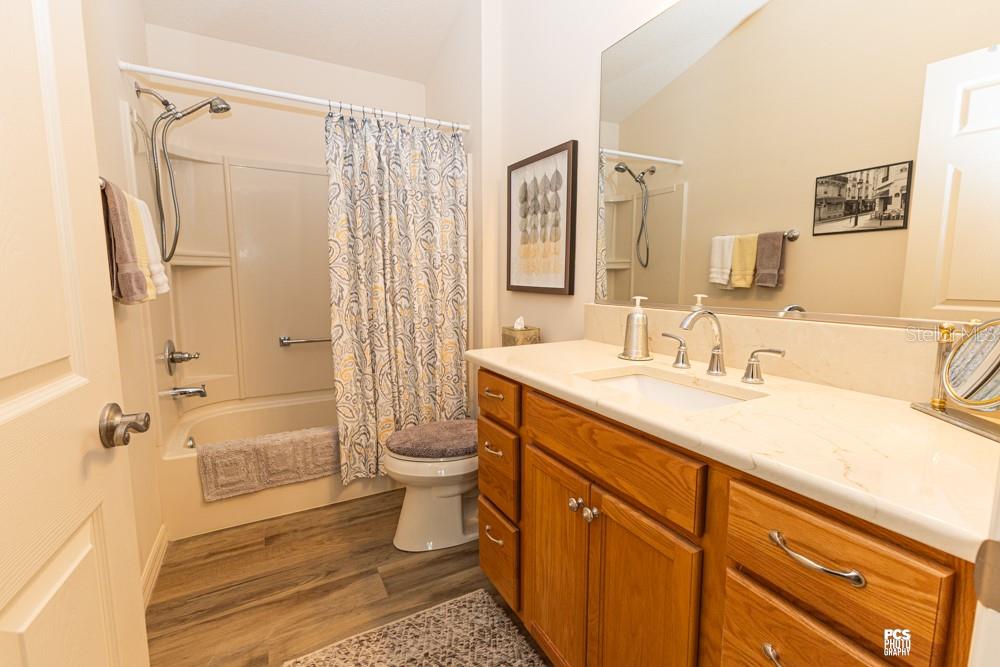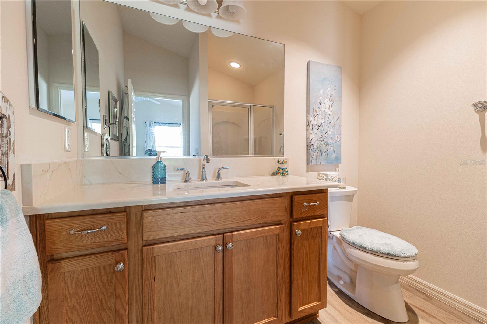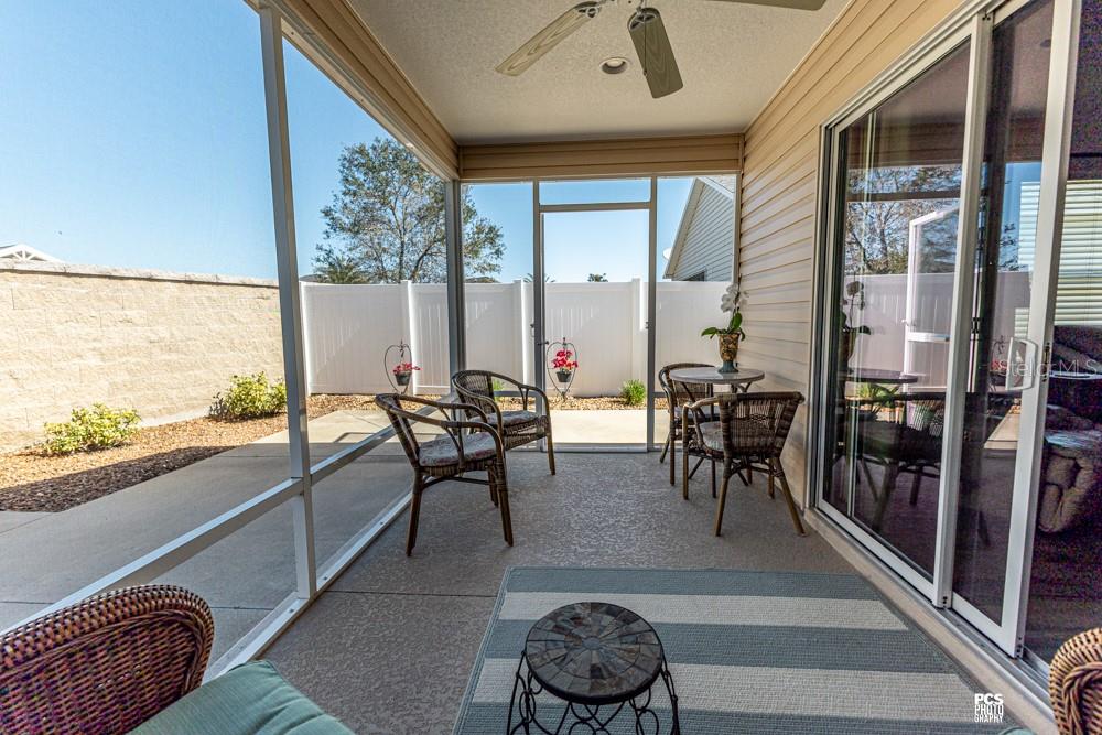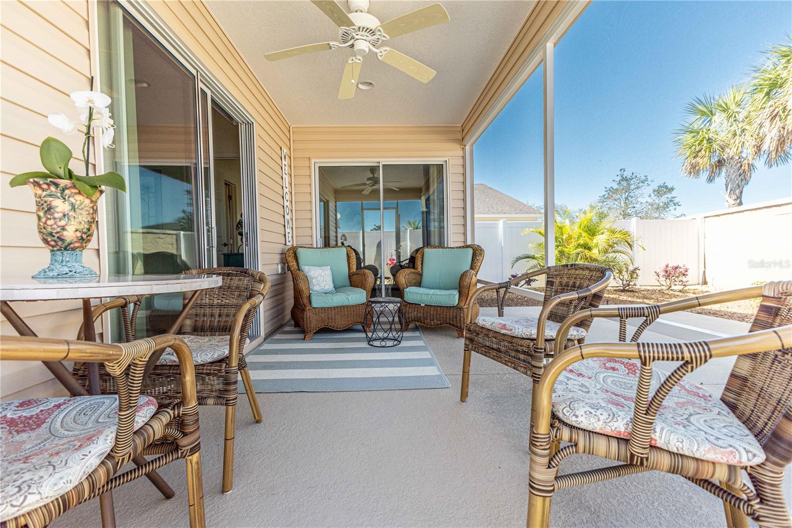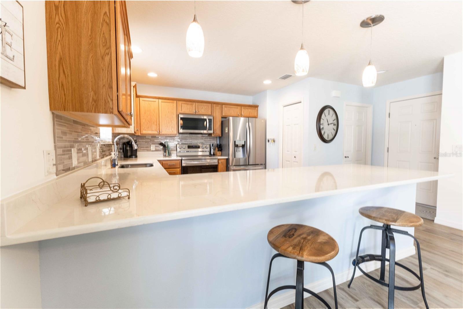 Welcome to this stunning 2-bedroom, 2-bath Carrabelle courtyard villa, perfectly nestled in Belle Glade Villas, one of The Villages’ most desirable neighborhoods. Just a short walk to Burnsed Recreation Center, this home offers the perfect blend of modern upgrades, low-maintenance living, and access to world-class amenities. Step inside and fall in love with the luxury vinyl plank flooring that flows seamlessly throughout, offering both elegance and durability. The open-concept living and dining area is illuminated with natural light, highlighted by updated lighting fixtures that enhance the home’s warm and inviting atmosphere. The kitchen is a true showpiece, featuring sleek quartz countertops, stainless steel appliances, upgraded cabinetry, and a spacious breakfast bar—perfect for entertaining or enjoying a quiet morning coffee. The attention to detail continues into both bathrooms, where you’ll find matching quartz countertops and modern fixtures. The primary suite offers a tranquil retreat with generous closet space and a walk-in shower, while the guest bedroom provides flexibility for visitors, a home office, or a hobby space. Outside, enjoy stress-free landscaping with no grass to maintain, allowing you more time to enjoy everything The Villages has to offer. The private screened-in patio is the perfect spot for relaxing with a morning coffee or an evening cocktail. With a TURNKEY offering, this home is completely move-in ready—just bring your toothbrush! Located near golf courses, shopping, dining, and walking trails, this villa provides the perfect mix of luxury, convenience, and lifestyle. Don’t miss out on this incredible opportunity—schedule your private showing today!