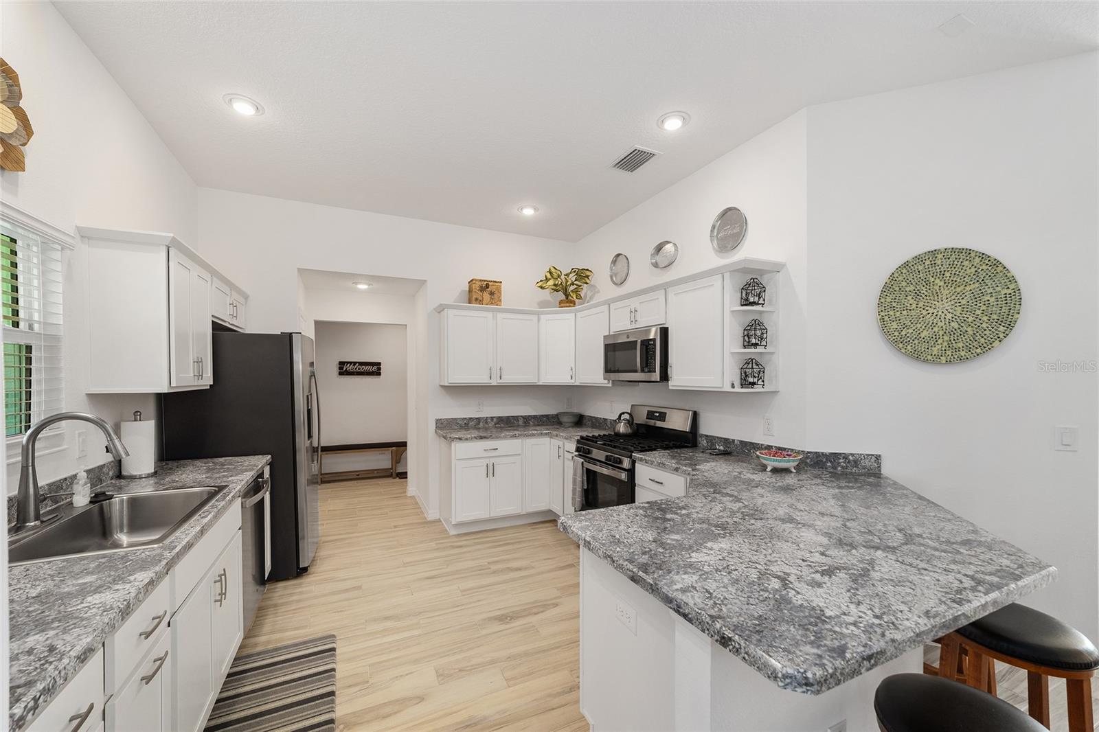 ~NEW PRICE REDUCTION~ ~2021 ROOF-HVAC-HOT WATER HEATER~ ~TURNKEY PACKAGE AVAILABLE FOR $10,000 INCLUDING 2010 YAMAHA GOLF CART~ This beautiful LONGLEAF model located in the Village of CITRUS GROVE boasts elegant PORCELAIN TILE flooring throughout the living room, dining area, kitchen, and baths, complemented by soaring HIGH CEILINGS. The modern kitchen is equipped with STAINLESS-STEEL appliances, HI-DEF countertops, and a convenient BREAKFAST BAR, making it perfect for entertaining. The primary bedroom has carpet, a HIGH TRAY CEILING, CEILING FAN, and a generous WALK-IN CLOSET. Its ensuite bath includes DOUBLE SINKS, a TILE WALK-IN SHOWER, and HI-DEF countertops. The comfortable guest bedrooms are carpeted and come with built-in closets with access to a well-appointed guest bath featuring a HI-DEF countertop and a TILE SHOWER/TUB combo. Additional features include an INSIDE LAUNDRY ROOM with a utility tub, and a NOVA WATER PURIFIER for premium water quality. Outdoor living is a breeze with a SCREENED-IN LANAI equipped with a ceiling fan and ROOM FOR A POOL. The 2-car garage is complete with durable concrete flooring and attic stairs. The ADDITIONAL TURNKEY PACKAGE includes a 2010 YAMAHA GOLF CART with brand-new tires. Located close to The Market at Sawgrass Grove, Ezell Regional Rec Center, Citrus Grove Pool and Southern Oaks Championship Golf! This home offers both convenience and luxury in a highly sought-after neighborhood!