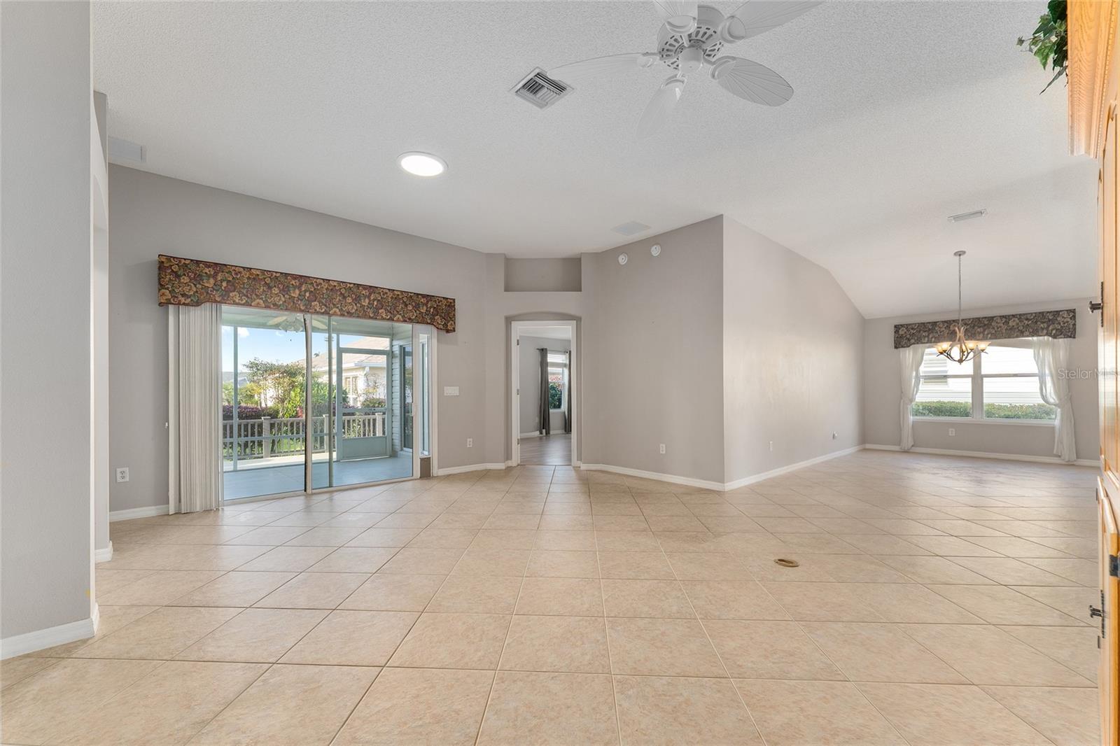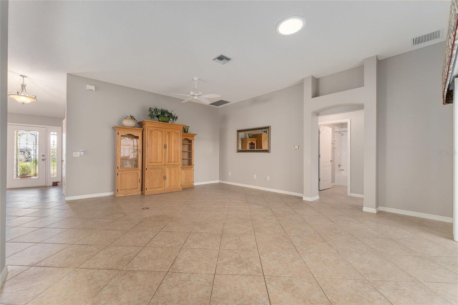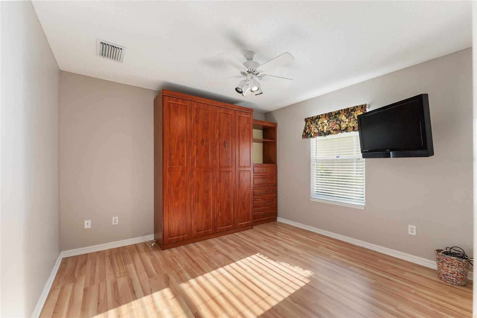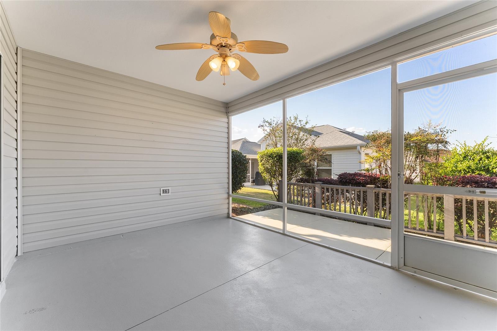 PRICE REDUCED!!! Have you been looking for a DESIGNER HOME with a LARGE GARAGE, close to LAKE SUMTER LANDING and PRICED TO SELL? Well, this CYPRESS Model, in the Village of BONNYBROOK, that has been maintained and recently refreshed is for you! Whole House Replacement WARRANTY included- ROOF 2020, HWH 2019. The LANDSCAPING has been recently ENHANCED which lends to the curb appeal of this home on a QUIET neighborly street. As you enter the Leaded GLASS insert front door with SIDELIGHT, you'll notice the beautiful tile flooring throughout the main living area (NO CARPET!). The heart of the home, the LARGE KITCHEN with eat-in area boasts GRANITE COUNTERTOPS, newer STAINLESS STEEL appliances and multi-burner GAS STOVE. The BACKSPLASH tastefully compliments the granite and maple cabinets with ROLLOUTS. The Dining Room is adjacent to the kitchen and views the expansive Living Room which has a SOLAR TUBE for daylight brightness! The sliding glass door leads from the living room to the SCREENED LANAI where you can sit in PRIVACY and enjoy your morning coffee. The Primary Bedroom also has access to the Lanai and beautiful LAMINATE FLOORING. It boasts TWO WALK-IN CLOSETS and en-suite with DOUBLE SINKS and CORIAN countertops. The guest bathroom is convenient to the living area with a tile/tub shower, solar tube and Corian countertops. Two bedrooms are adjacent and BOTH HAVE CLOSETS! One has a full-sized MURPHY BED so it can be an office or used for guests. The Garage is 480 square feet with a gardener's tub, cabinets, workbench, attic stairs and decking. Lots of room to work, store your belongings, and park your car and golf cart! It leads to the LAUNDRY ROOM just inside the house which has cabinets and a pocket door to the entryway of the home. This home offers so much for the price and a very desirable location plus easy access to Buena Vista Blvd! AND, THE BOND WILL BE PAID AT CLOSING!! HVAC is original but regularly maintained and working great! Just minutes away from Lake Sumter, many neighborhood pools, golf courses and recreation centers. COME SEE THIS HOME FOR YOURSELF TO FEEL ITS CHARM AND POTENTIAL!!