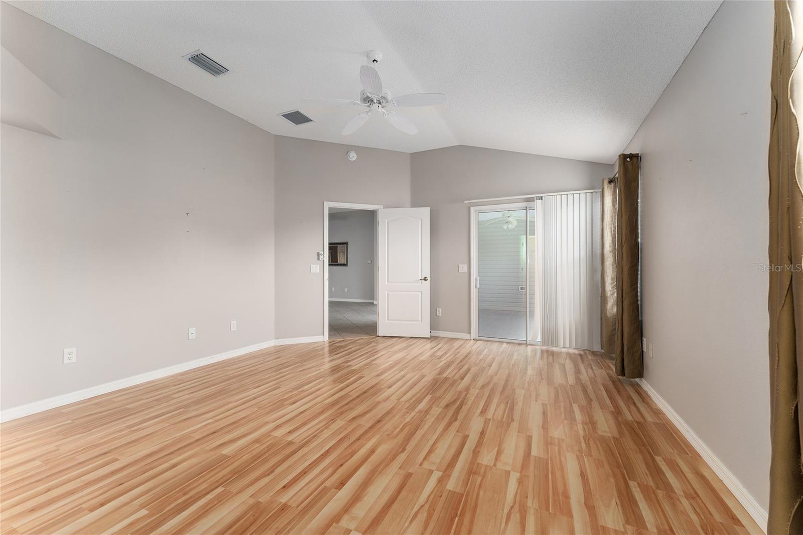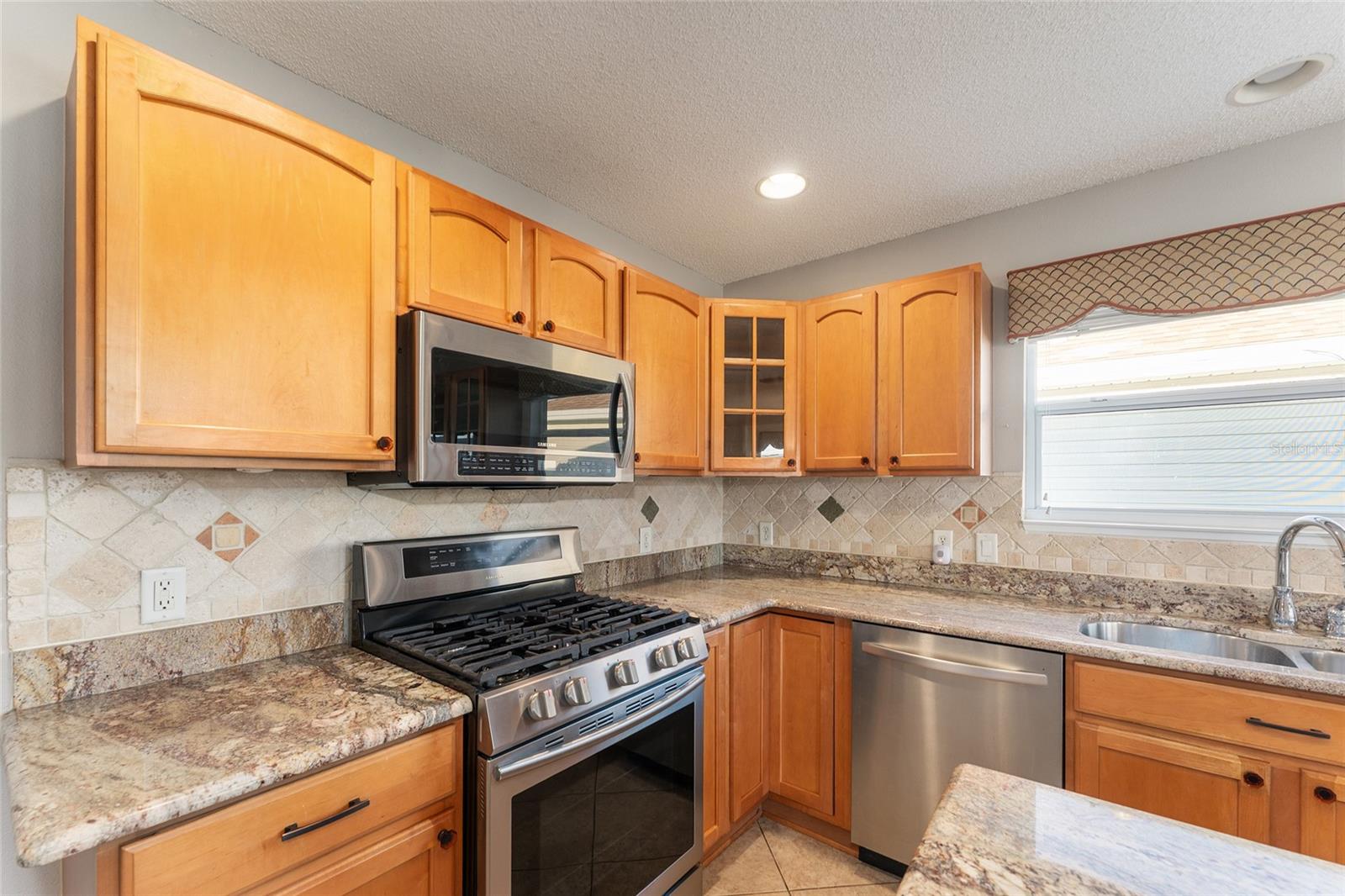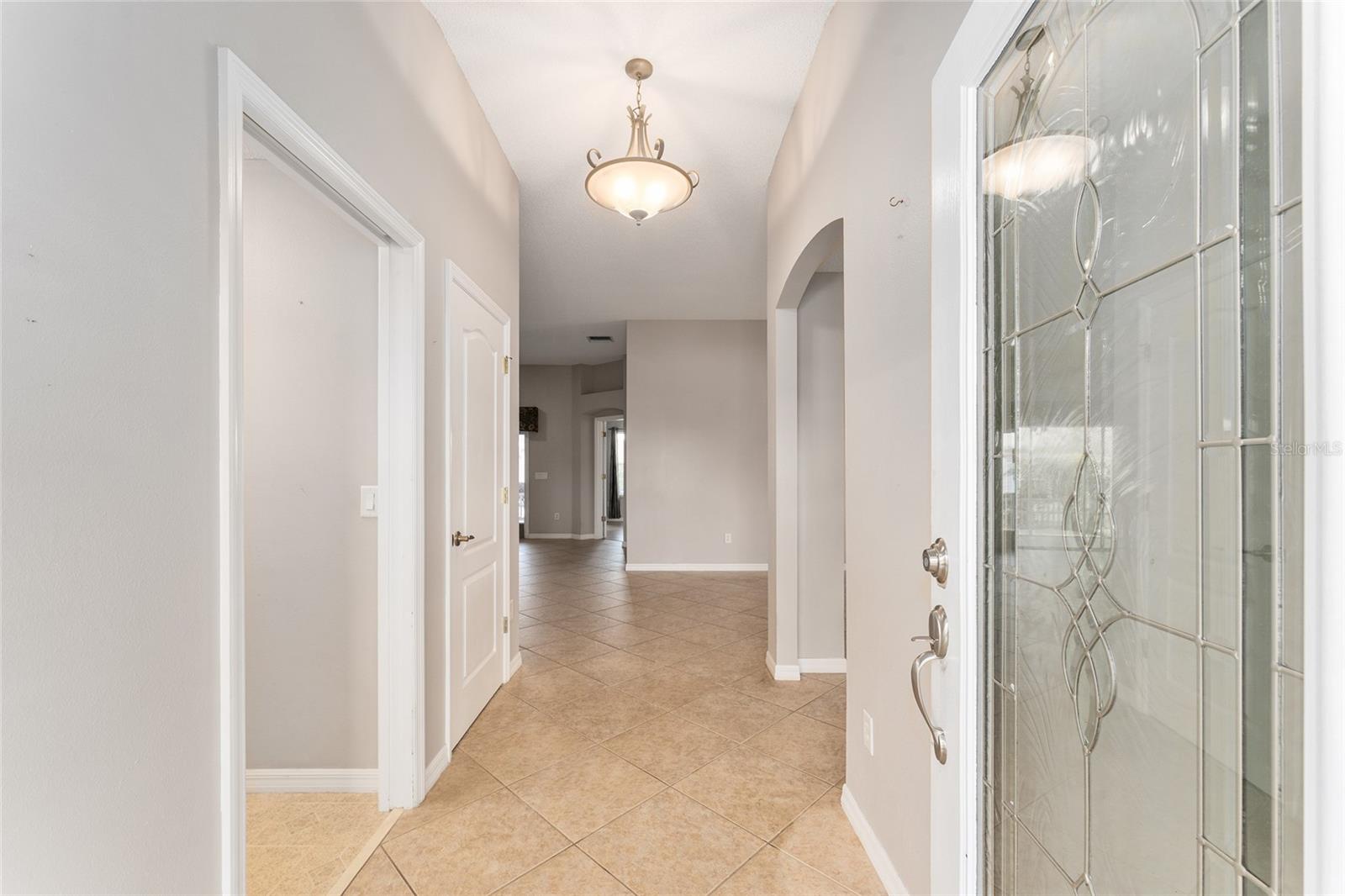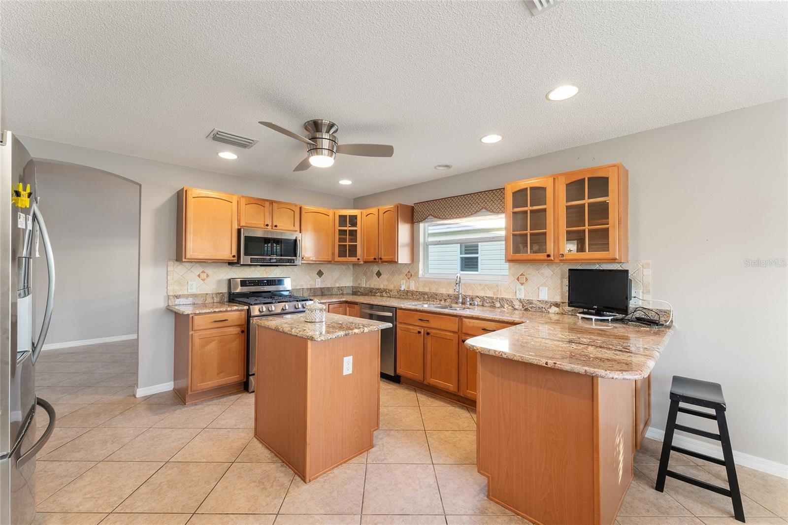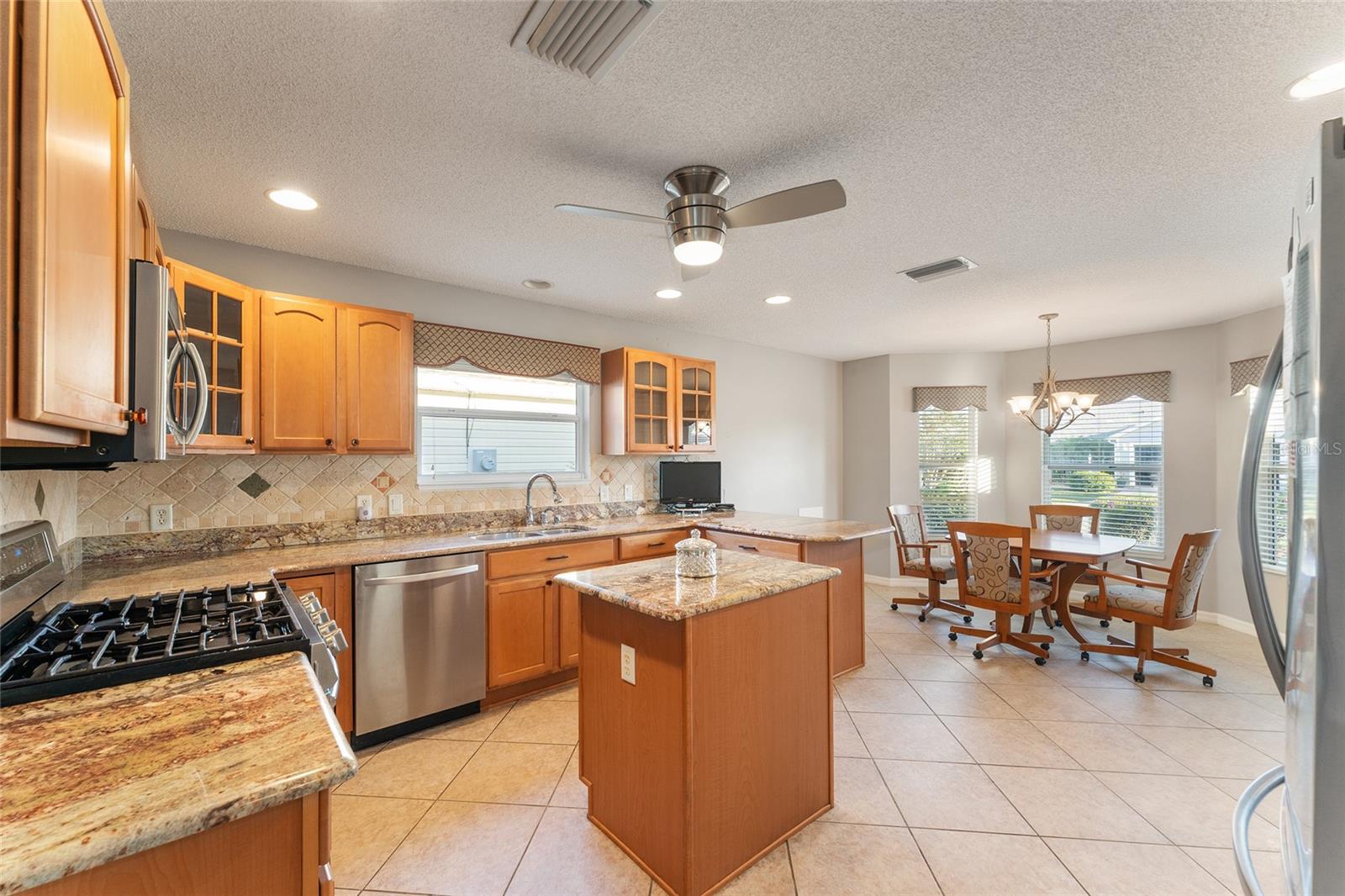 PRICE REDUCED!!! Have you been looking for a DESIGNER HOME with a LARGE GARAGE, close to LAKE SUMTER LANDING and PRICED TO SELL? Well, this CYPRESS Model, in the Village of BONNYBROOK, that has been maintained and recently refreshed is for you! Whole House Replacement WARRANTY included- ROOF 2020, HWH 2019. The LANDSCAPING has been recently ENHANCED which lends to the curb appeal of this home on a QUIET neighborly street. As you enter the Leaded GLASS insert front door with SIDELIGHT, you'll notice the beautiful tile flooring throughout the main living area (NO CARPET!). The heart of the home, the LARGE KITCHEN with eat-in area boasts GRANITE COUNTERTOPS, newer STAINLESS STEEL appliances and multi-burner GAS STOVE. The BACKSPLASH tastefully compliments the granite and maple cabinets with ROLLOUTS. The Dining Room is adjacent to the kitchen and views the expansive Living Room which has a SOLAR TUBE for daylight brightness! The sliding glass door leads from the living room to the SCREENED LANAI where you can sit in PRIVACY and enjoy your morning coffee. The Primary Bedroom also has access to the Lanai and beautiful LAMINATE FLOORING. It boasts TWO WALK-IN CLOSETS and en-suite with DOUBLE SINKS and CORIAN countertops. The guest bathroom is convenient to the living area with a tile/tub shower, solar tube and Corian countertops. Two bedrooms are adjacent and BOTH HAVE CLOSETS! One has a full-sized MURPHY BED so it can be an office or used for guests. The Garage is 480 square feet with a gardener's tub, cabinets, workbench, attic stairs and decking. Lots of room to work, store your belongings, and park your car and golf cart! It leads to the LAUNDRY ROOM just inside the house which has cabinets and a pocket door to the entryway of the home. This home offers so much for the price and a very desirable location plus easy access to Buena Vista Blvd! AND, THE BOND WILL BE PAID AT CLOSING!! HVAC is original but regularly maintained and working great! Just minutes away from Lake Sumter, many neighborhood pools, golf courses and recreation centers. COME SEE THIS HOME FOR YOURSELF TO FEEL ITS CHARM AND POTENTIAL!!
