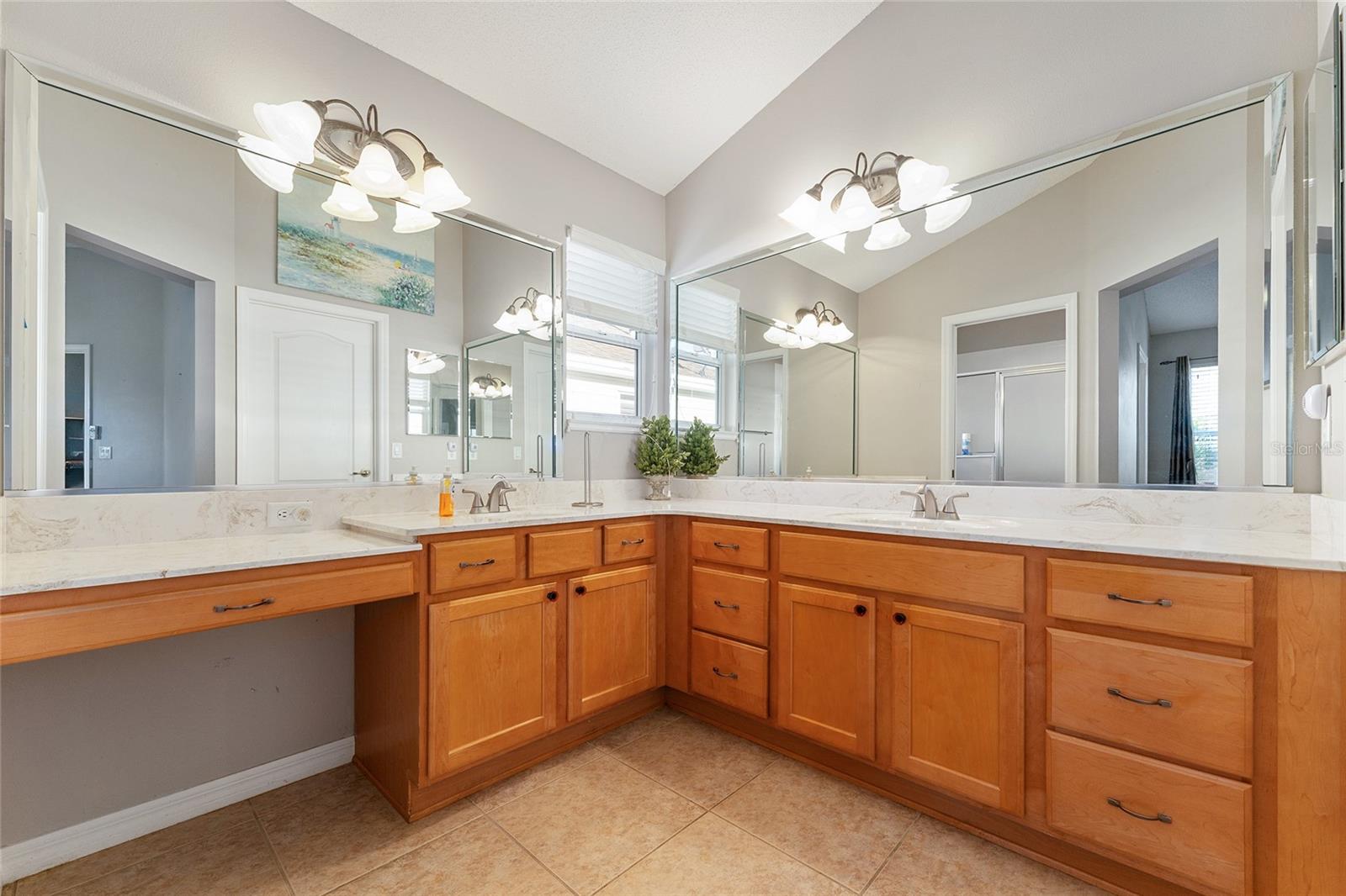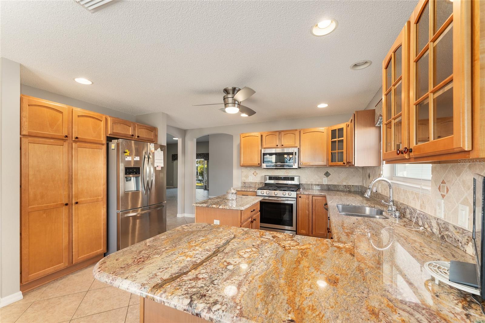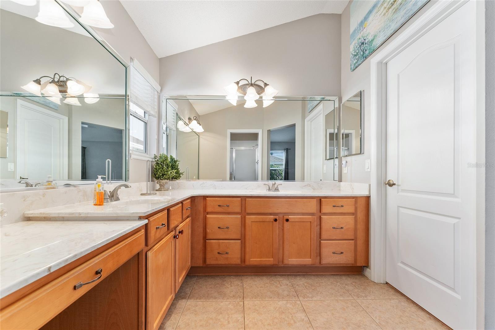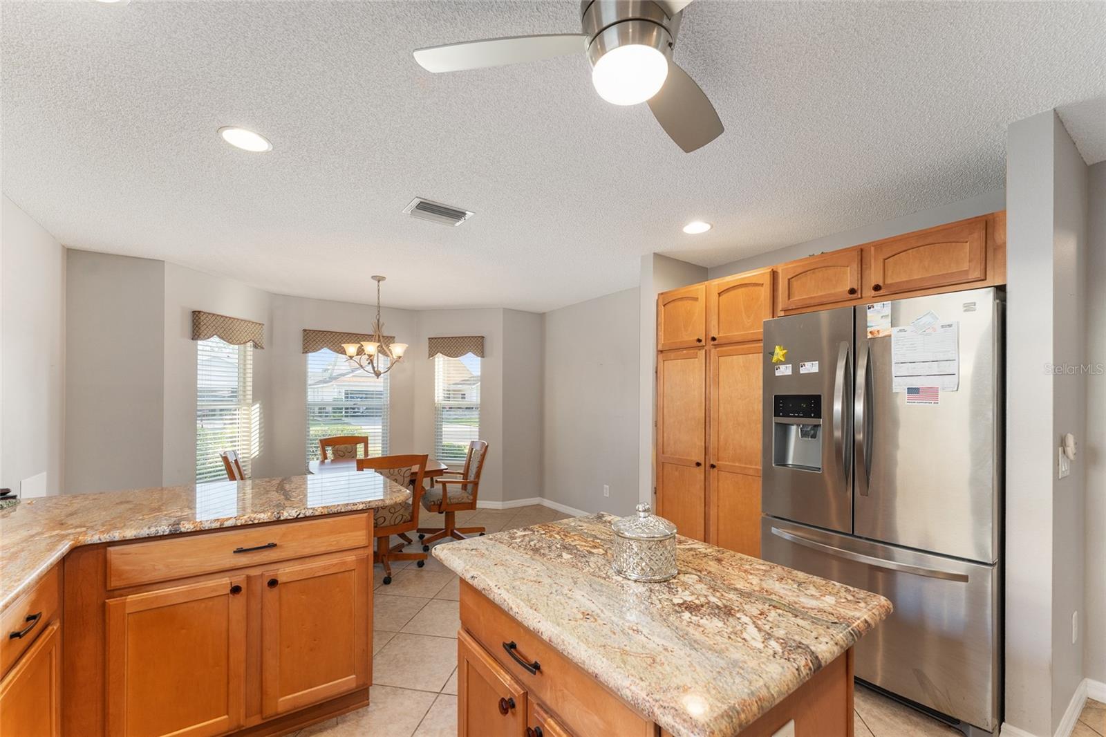 PRICE REDUCED!!! Have you been looking for a DESIGNER HOME with a LARGE GARAGE, close to LAKE SUMTER LANDING and PRICED TO SELL? Well, this CYPRESS Model, in the Village of BONNYBROOK, that has been maintained and recently refreshed is for you! Whole House Replacement WARRANTY included- ROOF 2020, HWH 2019. The LANDSCAPING has been recently ENHANCED which lends to the curb appeal of this home on a QUIET neighborly street. As you enter the Leaded GLASS insert front door with SIDELIGHT, you'll notice the beautiful tile flooring throughout the main living area (NO CARPET!). The heart of the home, the LARGE KITCHEN with eat-in area boasts GRANITE COUNTERTOPS, newer STAINLESS STEEL appliances and multi-burner GAS STOVE. The BACKSPLASH tastefully compliments the granite and maple cabinets with ROLLOUTS. The Dining Room is adjacent to the kitchen and views the expansive Living Room which has a SOLAR TUBE for daylight brightness! The sliding glass door leads from the living room to the SCREENED LANAI where you can sit in PRIVACY and enjoy your morning coffee. The Primary Bedroom also has access to the Lanai and beautiful LAMINATE FLOORING. It boasts TWO WALK-IN CLOSETS and en-suite with DOUBLE SINKS and CORIAN countertops. The guest bathroom is convenient to the living area with a tile/tub shower, solar tube and Corian countertops. Two bedrooms are adjacent and BOTH HAVE CLOSETS! One has a full-sized MURPHY BED so it can be an office or used for guests. The Garage is 480 square feet with a gardener's tub, cabinets, workbench, attic stairs and decking. Lots of room to work, store your belongings, and park your car and golf cart! It leads to the LAUNDRY ROOM just inside the house which has cabinets and a pocket door to the entryway of the home. This home offers so much for the price and a very desirable location plus easy access to Buena Vista Blvd! AND, THE BOND WILL BE PAID AT CLOSING!! HVAC is original but regularly maintained and working great! Just minutes away from Lake Sumter, many neighborhood pools, golf courses and recreation centers. COME SEE THIS HOME FOR YOURSELF TO FEEL ITS CHARM AND POTENTIAL!!