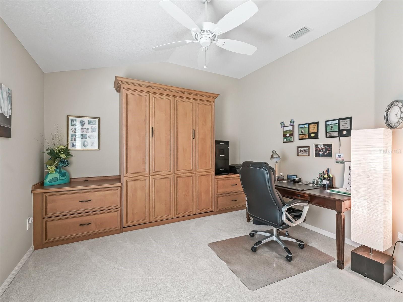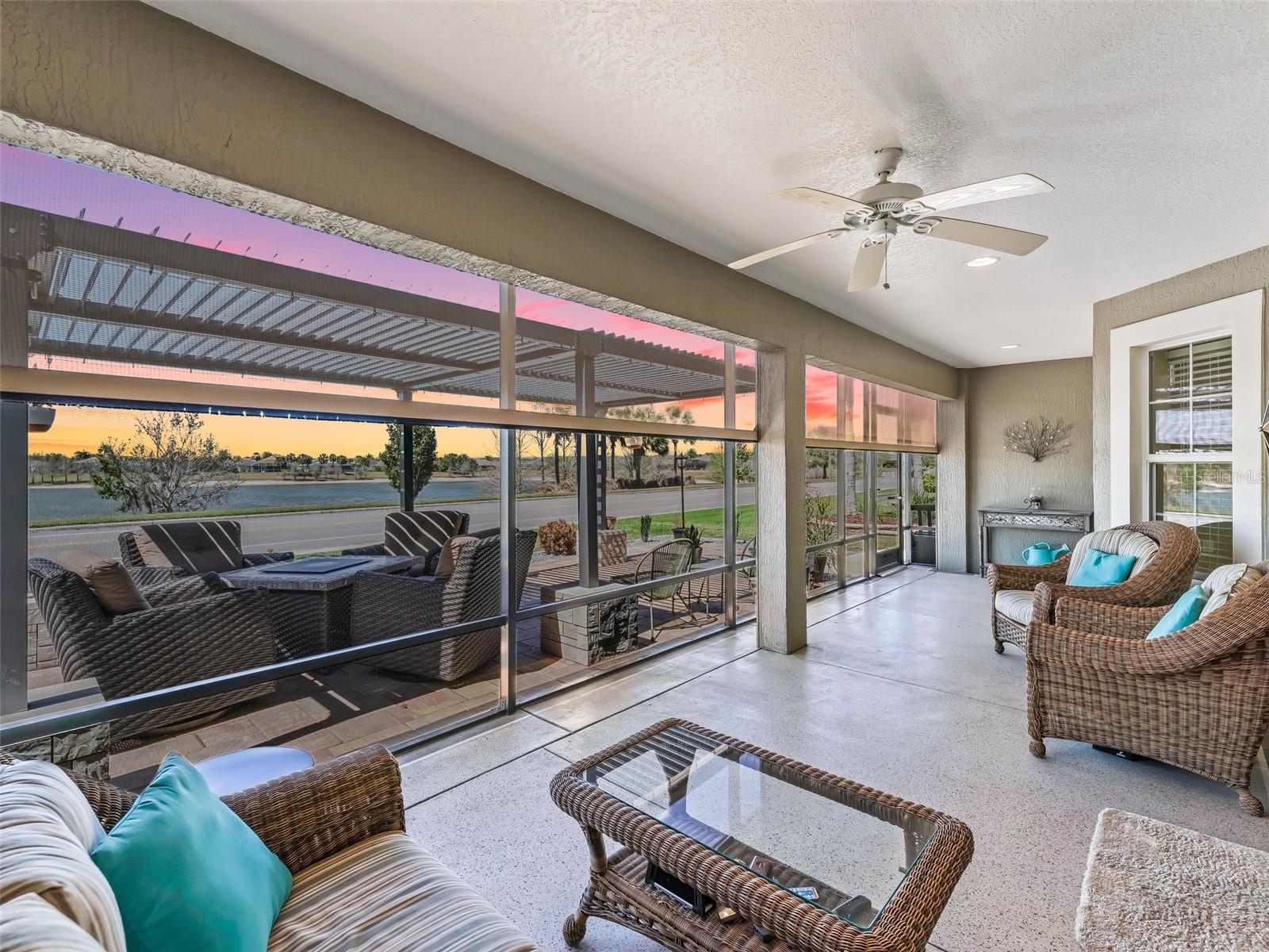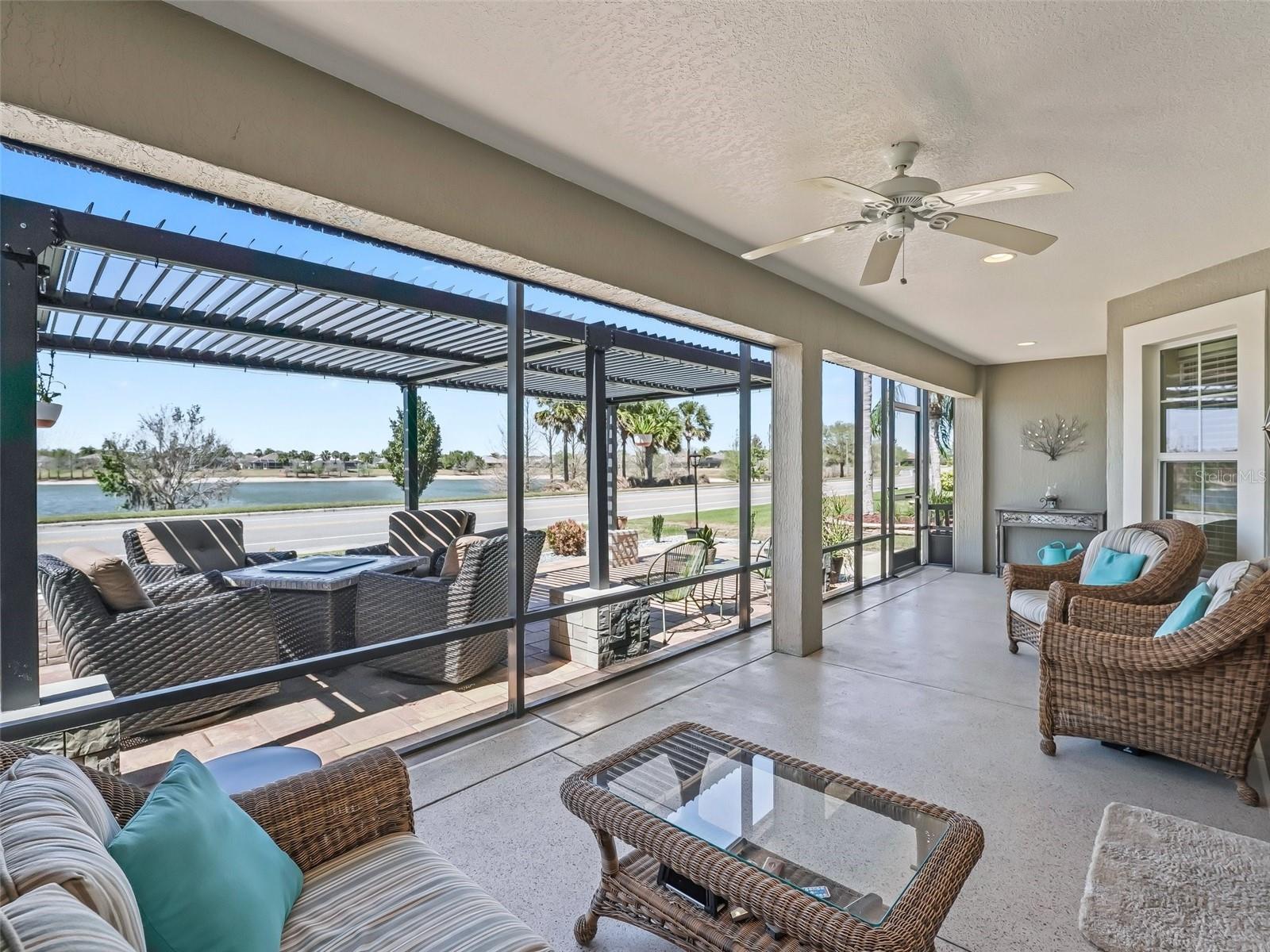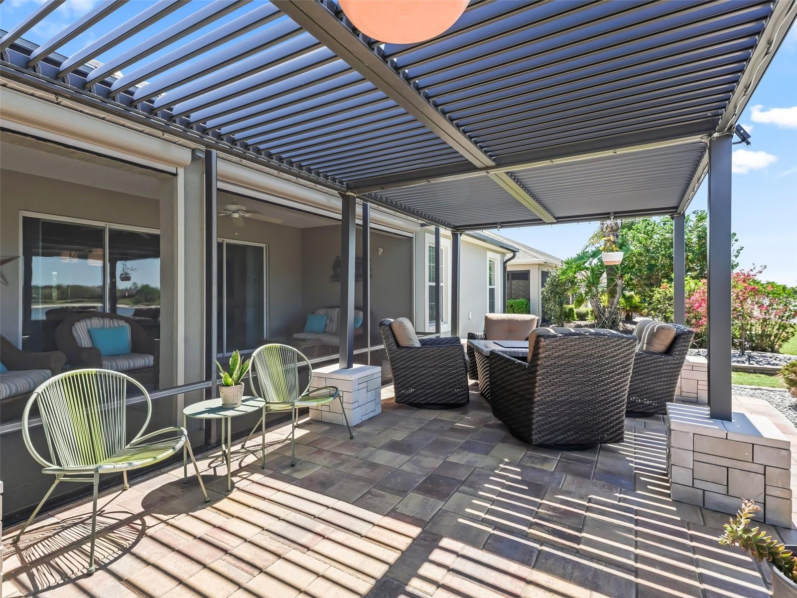 Welcome to this immaculate Iris Model home, nestled in the desirable Village of Sanibel! Situated in a serene park-like setting, this home offers breathtaking sunsets and expansive water views, making it the perfect retreat. Enjoy the beauty of The Villages from the comfort of your own Brick Paver Patio under a custom-designed Pergola—ideal for soaking in the incredible scenery! As you arrive, you'll be greeted by exceptional curb appeal, featuring an expanded 2-plus garage and a beautiful Brick Paver Driveway. Step inside to discover an open floor plan that flows seamlessly throughout, with expansive sliding pocket doors that lead out to the screened-in lanai and patio area, where you can relax and unwind. With Motorized Sun Blocking Shades, the lanai area stays comfortable all day long. The kitchen is a chef’s dream, featuring stunning Maple Cabinetry, sleek Quartz Countertops, and Stainless Steel Appliances. The large Primary Bedroom offers a luxurious en-suite with a Roman Shower, Dual Vanity, and Walk-in Closet. The 3rd Bedroom is equipped with a Murphy Bed, making it the perfect space for guests or a home office. This home is located just minutes from the Captiva Pool & Recreation Center, Colony Plaza with great shopping and dining options, and the Bonifay Championship Golf Course, along with 3 executive courses. Whether you’re an avid golfer, enjoy leisurely strolls, or simply love the beauty of this incredible home, this is the perfect place for you! Don’t miss your chance to own this stunning piece of paradise. Schedule your private showing today!