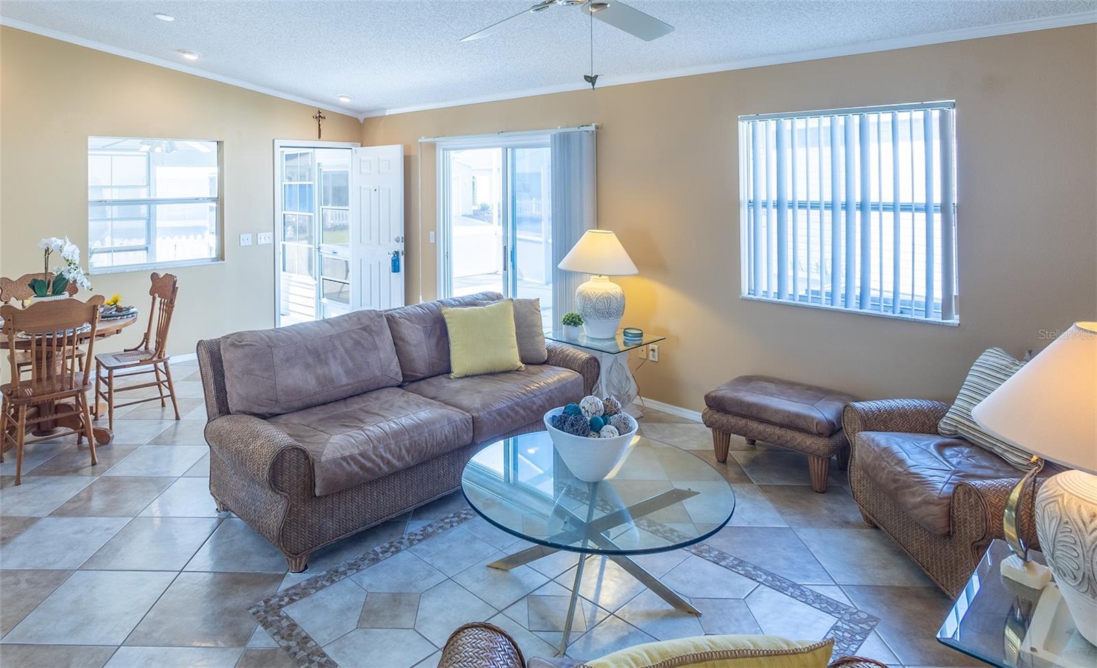 Welcome Home to your dream lifestyle in this charming 2 Bed, 2 Bath Patio Villa nestled in the heart of the Village of De La Vista, just moments away from Lake-Sumter Landing and Spanish Springs town center. Boasting an inviting enclosed front patio and an extra-large spacious birdcage that expands your living space into the outdoors, this home offers the perfect blend of comfort and relaxation. Situated on a generous corner lot, its vaulted ceilings and open floorplan create a sense of spaciousness and airiness throughout. Complete with modern tile flooring in main areas and stainless steel appliances, this home comes fully furnished with select homewares included. What’s more, enjoy the convenience of NO BOND, making this the ideal opportunity to embrace the vibrant lifestyle of The Villages, Florida, with ease and style.