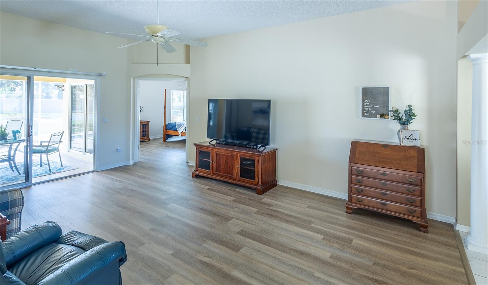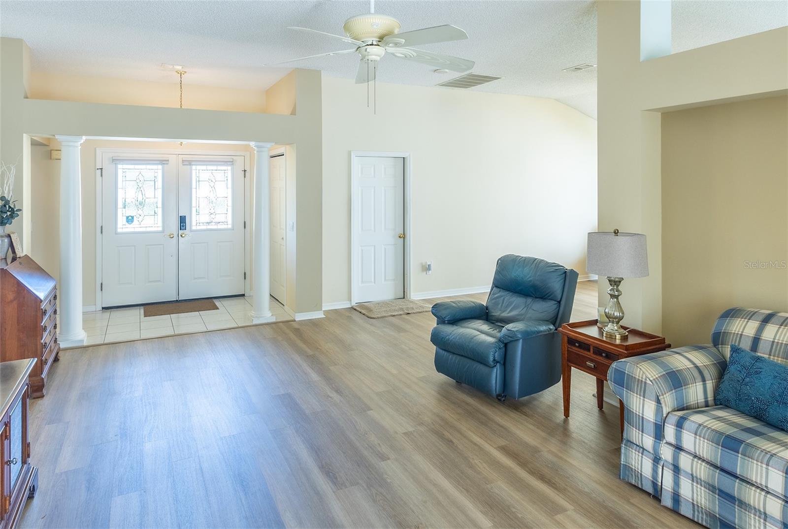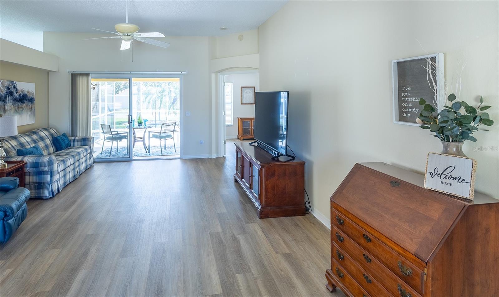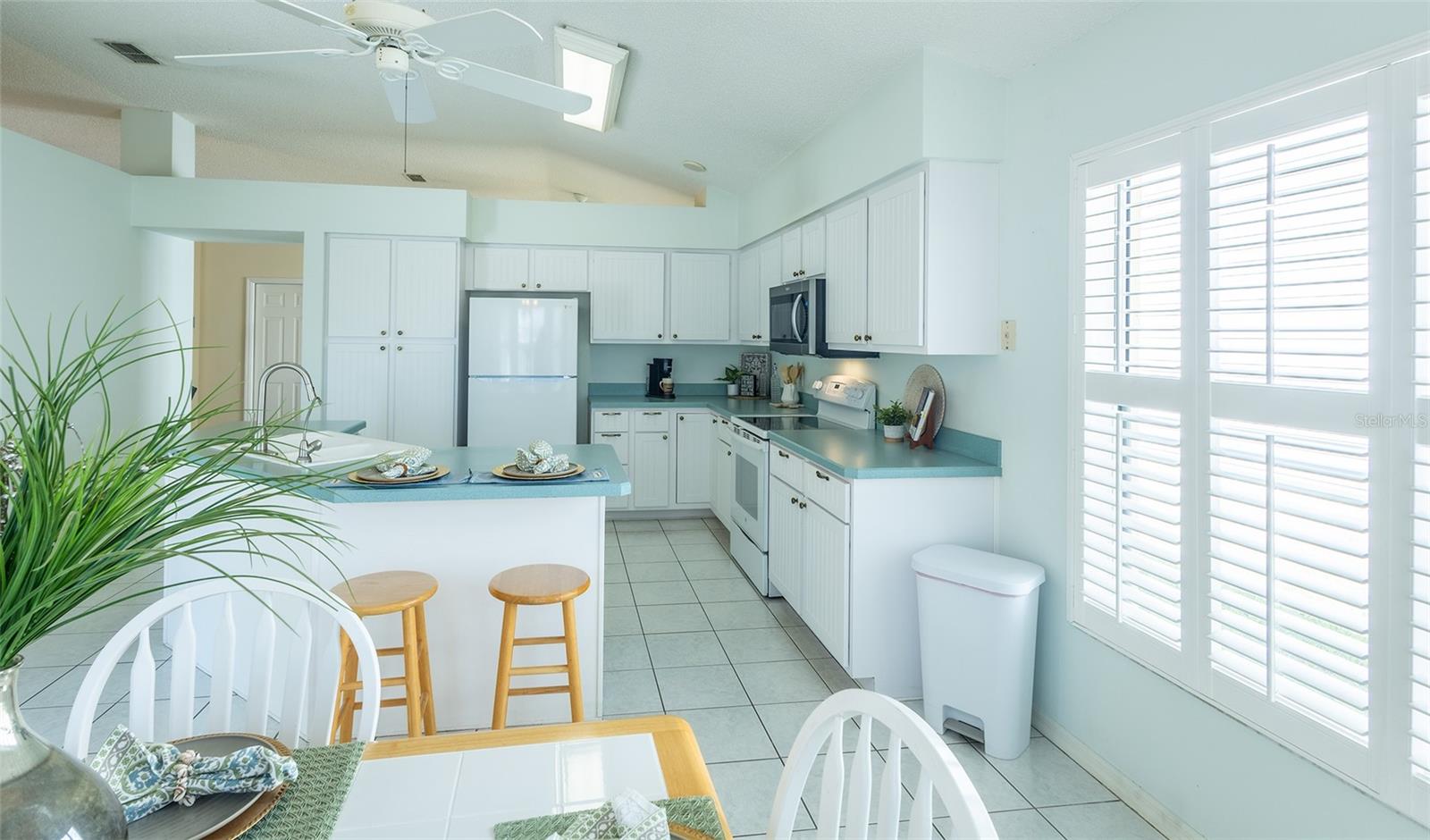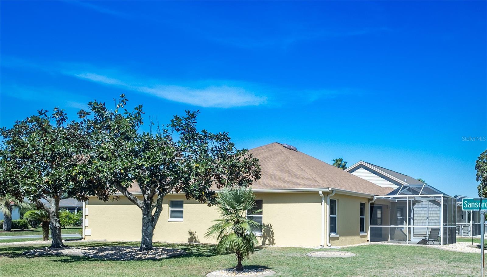 Welcome to this beautifully updated 2 bed, 2 bath, 2 car garage Rivera Model home in The Villages, Florida. With a new roof installed in 2019 and upgraded furnishings included, this home offers both luxury and convenience in one stunning package. As you enter, you're greeted by luxurious vinyl plank flooring and soaring volume ceilings that create a spacious, open feel in the living and dining areas. The large kitchen is perfect for any home chef, featuring ample cabinet space, updated appliances, and a cozy eat-in nook for casual meals. The primary bedroom is a true retreat with a generous walk-in closet and ensuite bathroom with double vanities. Outdoors, enjoy the peace and privacy of a large corner lot with a covered lanai and an open birdcage, ideal for relaxing or entertaining guests. Located in the desirable Village of Santo Domingo, this home is just minutes from Lake-Sumter and Spanish Springs Town Centers, along with an array of shopping and dining options nearby. Plus, with NO BOND, this home offers unbeatable value. Furnishings are included, making this home truly move-in ready! Don't miss the chance to own this exceptional property and enjoy the Villages lifestyle in style. Schedule your showing today!