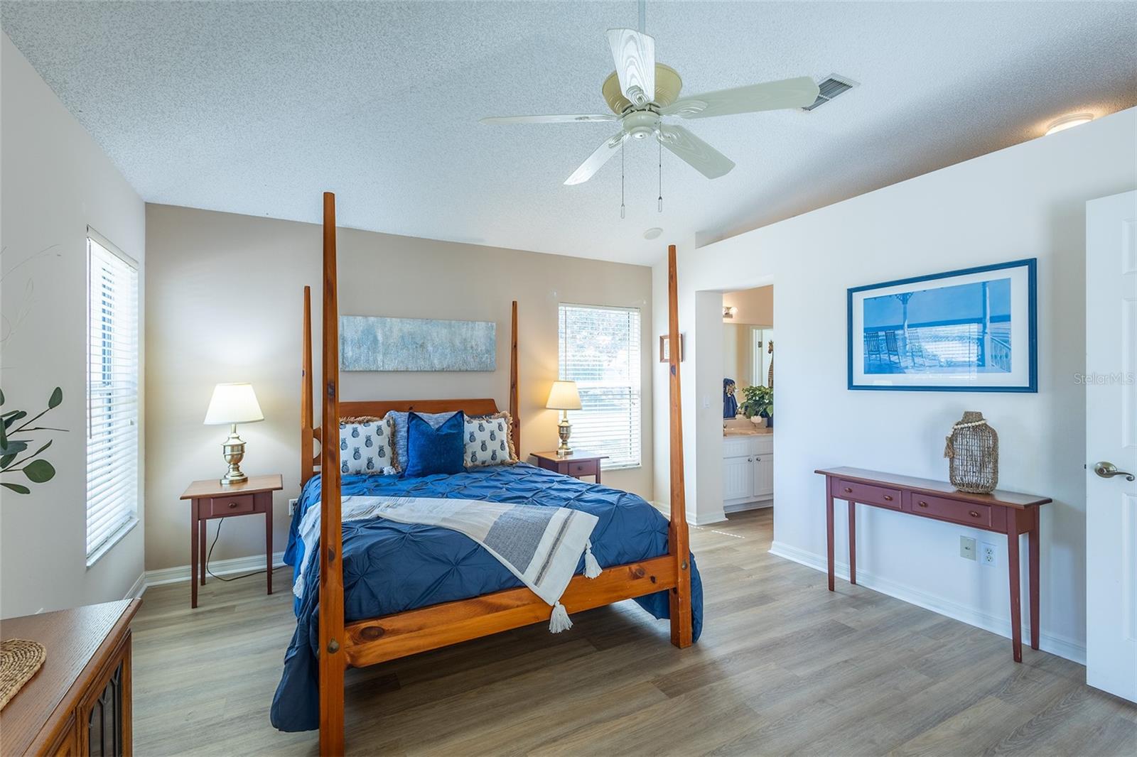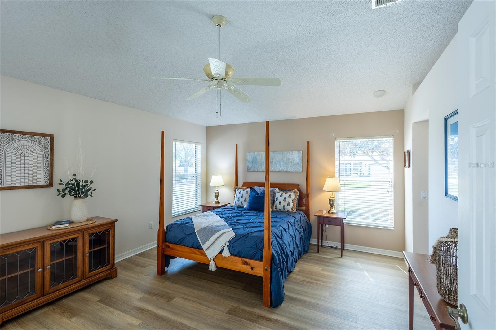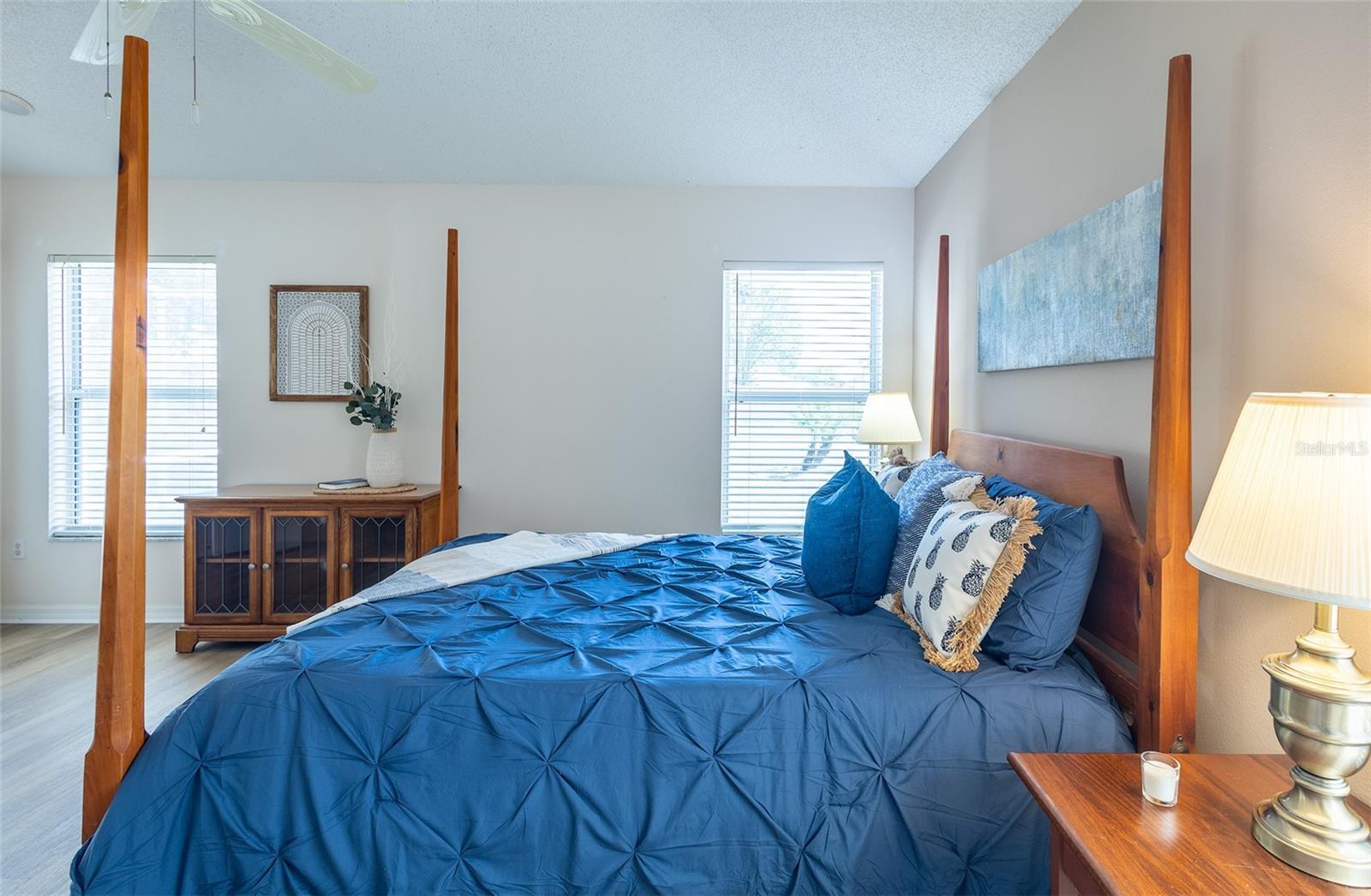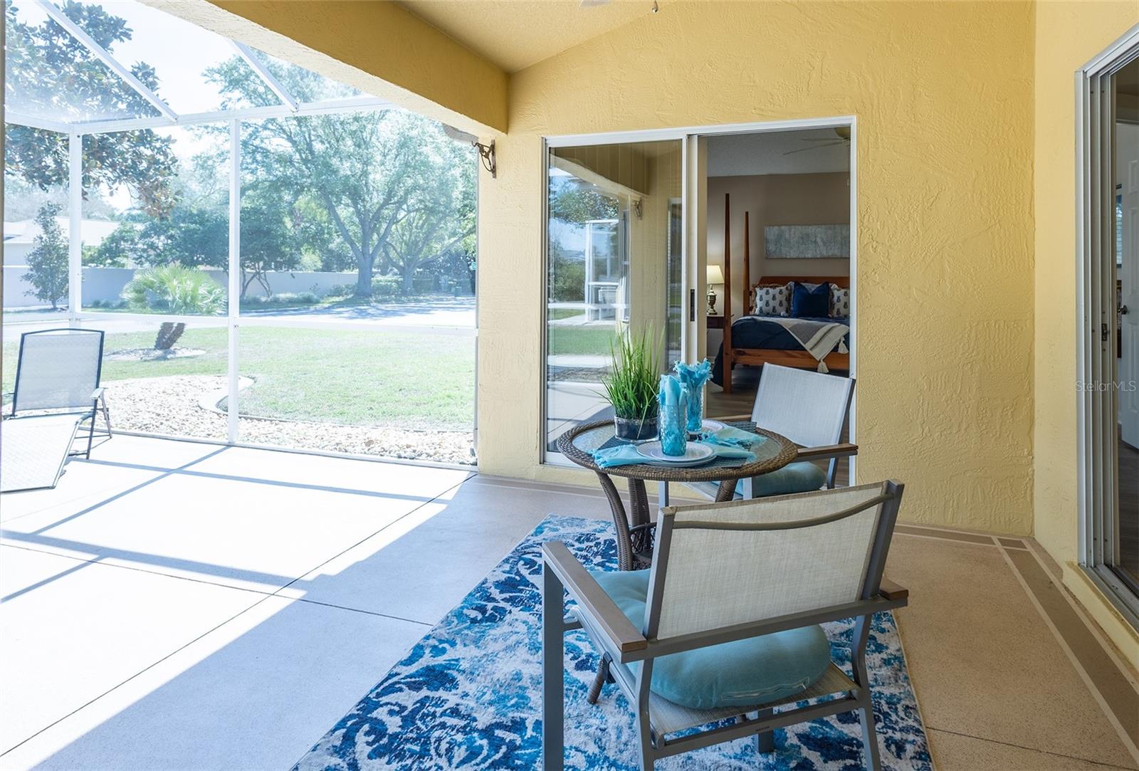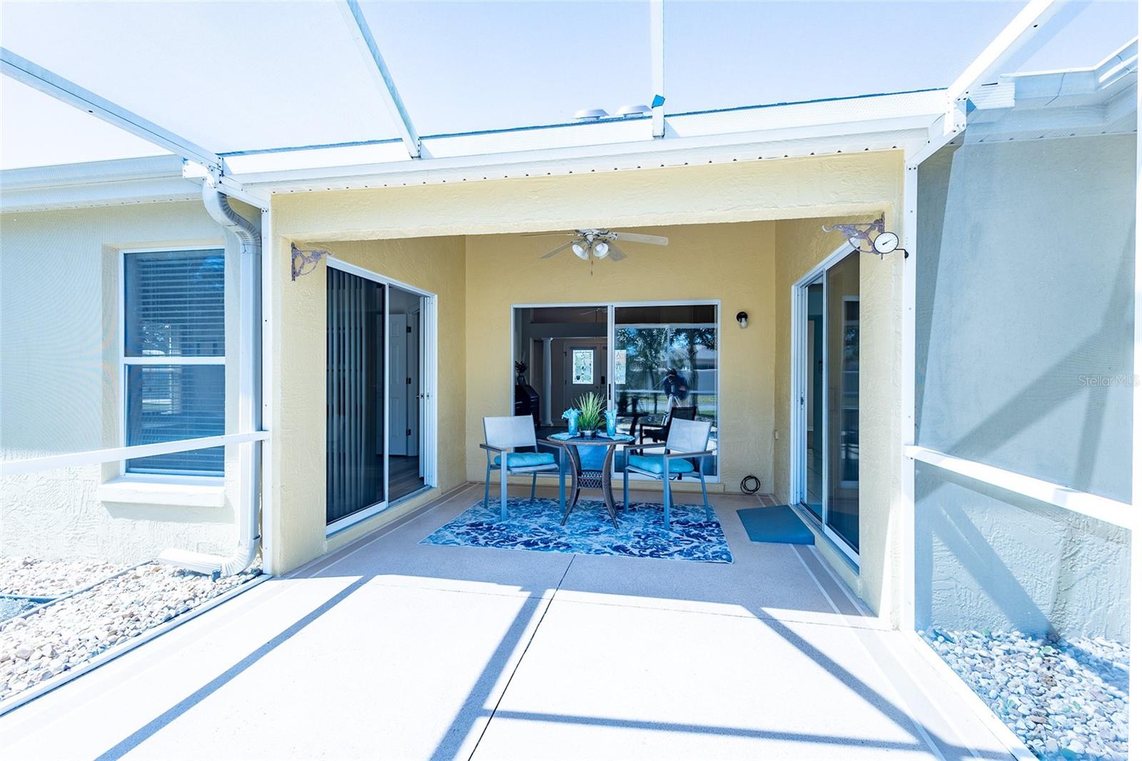 Welcome to this beautifully updated 2 bed, 2 bath, 2 car garage Rivera Model home in The Villages, Florida. With a new roof installed in 2019 and upgraded furnishings included, this home offers both luxury and convenience in one stunning package. As you enter, you're greeted by luxurious vinyl plank flooring and soaring volume ceilings that create a spacious, open feel in the living and dining areas. The large kitchen is perfect for any home chef, featuring ample cabinet space, updated appliances, and a cozy eat-in nook for casual meals. The primary bedroom is a true retreat with a generous walk-in closet and ensuite bathroom with double vanities. Outdoors, enjoy the peace and privacy of a large corner lot with a covered lanai and an open birdcage, ideal for relaxing or entertaining guests. Located in the desirable Village of Santo Domingo, this home is just minutes from Lake-Sumter and Spanish Springs Town Centers, along with an array of shopping and dining options nearby. Plus, with NO BOND, this home offers unbeatable value. Furnishings are included, making this home truly move-in ready! Don't miss the chance to own this exceptional property and enjoy the Villages lifestyle in style. Schedule your showing today!