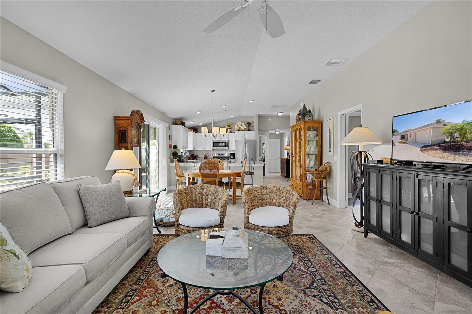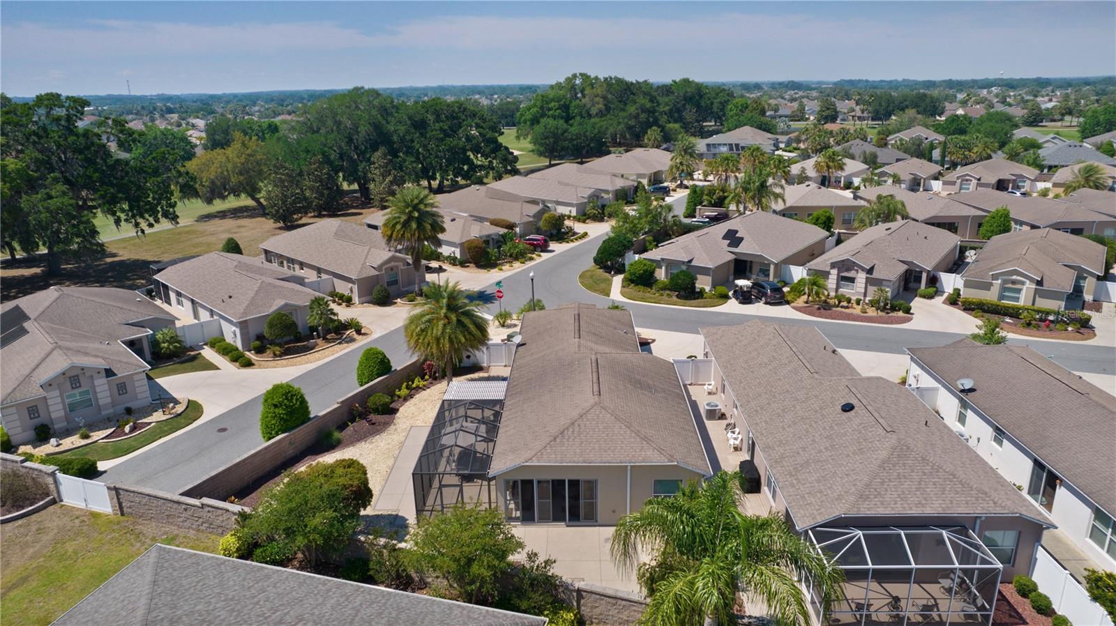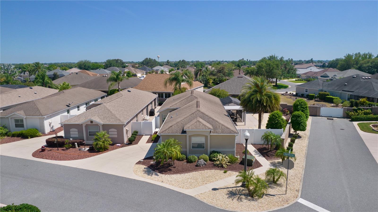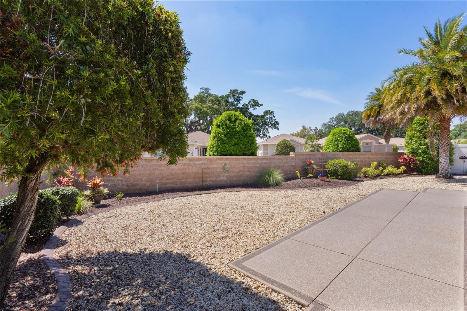 Rare highly sought after corner lot Courtyard Villa with Exceptional Outdoor Living – Altamonte Villas in Pennecamp! Discover this stunning 3-bedroom, 2-bath Foxglove model courtyard villa, perfectly positioned on an oversized end-unit lot in the desirable Altamonte Villas on Jacaranda Island. Located in the heart of The Villages—just minutes from Lake Sumter Landing—this home offers the ideal blend of privacy, style, and Florida charm. The expansive courtyard is a true highlight, boasting a large birdcage, two patios, a pergola, and still plenty of space for a future pool and spa. Impeccably manicured coastal landscaping creates a peaceful, resort-like ambiance—perfect for entertaining or quiet relaxation. Step inside to a beautifully maintained interior with a neutral, timeless color scheme and thoughtful upgrades throughout. Enjoy granite countertops, stainless steel appliances, white cabinetry, and a classic ceramic tile backsplash. Ceramic tile and hardwood flooring add sophistication and warmth, while vaulted ceilings and tall baseboards enhance the spacious feel. Updated bathrooms and an enclosed lanai ensure comfort no matter the weather. Additional features include a new roof May 2025, freshly painted interior and exterior, 2024 water heater, original but well-maintained HVAC system, and new fuse box 2024. Bond balance: $7,856.58. This rare offering checks all the boxes—location, layout, and lifestyle. Whether you're hosting gatherings or savoring peaceful moments in your own private retreat, this villa is ready to welcome you home.