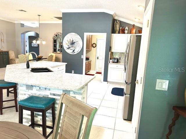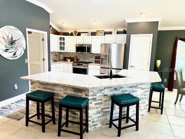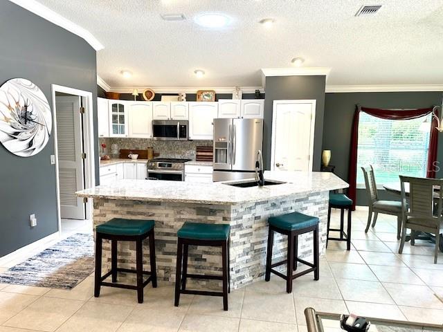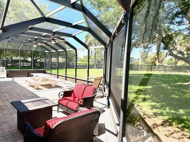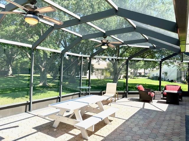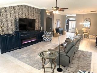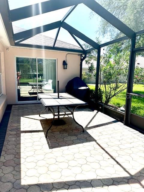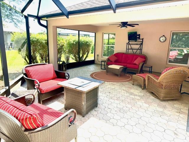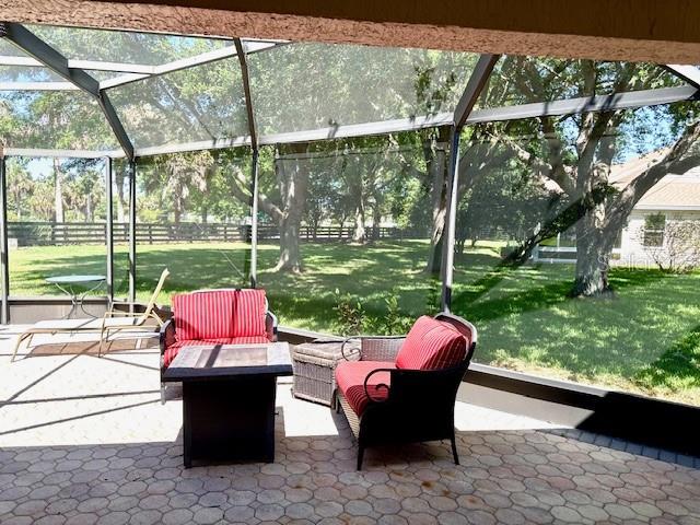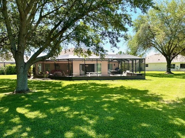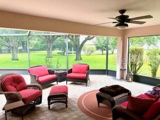 ROOM FOR A POOL!! This Extended Lantana model home is the perfect choice if you want lots of outdoor space for entertaining! Large private lot located in cul de sac in WINIFRED near Arnold Palmer Golf Course & Country Club. This home has newer appliances (2024), beautiful Quartz countertops with backsplash and gas cooking and heating!! Pull outs were added in the beautiful cabinets and stone front added under the new counter level center bar. The Great room boasts built in cabinetry with electric fireplace and perfect for your TV to view in multiple rooms. Florida room and sliders which lead you to the massive birdcage or your covered lanai. The Primary Suite is spacious and the walkin closet has built ins. Ensuite bath with Double Vanity and Roman shower. Large front 2nd bedroom fits a King bed plus Desk/work station. The 3rd bedroom has a built in Murphy bed with storage. The huge outdoor space has wrap around birdcage viewing the oversized wooded lot. Part of it is covered with cozy TV/sitting area. The utility room w/washer and dryer (2020) has lots of cabinet and Butler's pantry. The huge garage has rubber mat flooring, tons of storage/cabinets and tool bench. Roof was replaced in 2020. New garage door openers in 2025 and Epoxy drive in 2025. BOND PAID!!