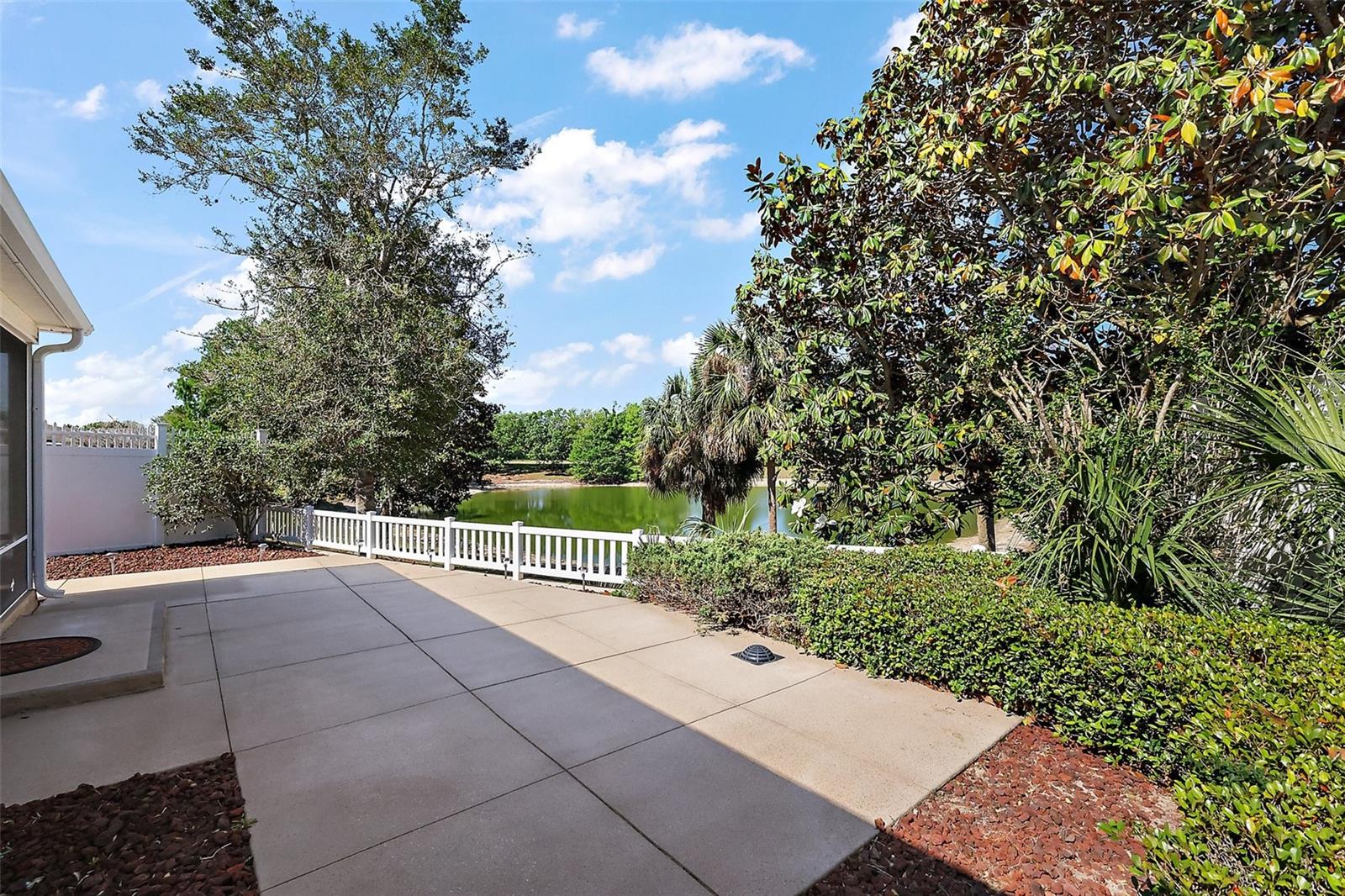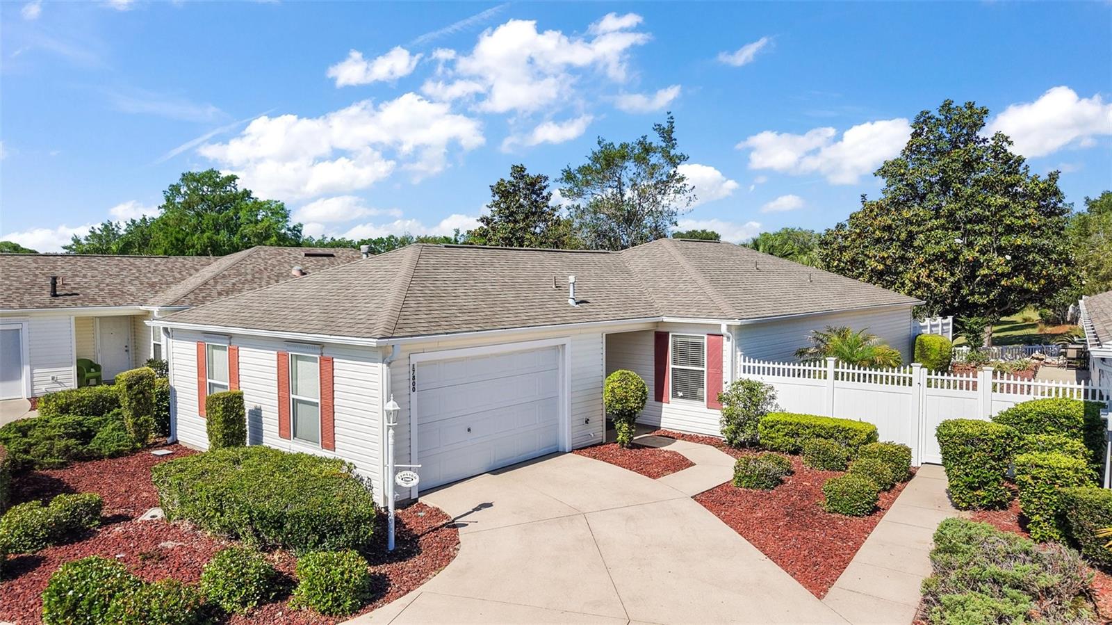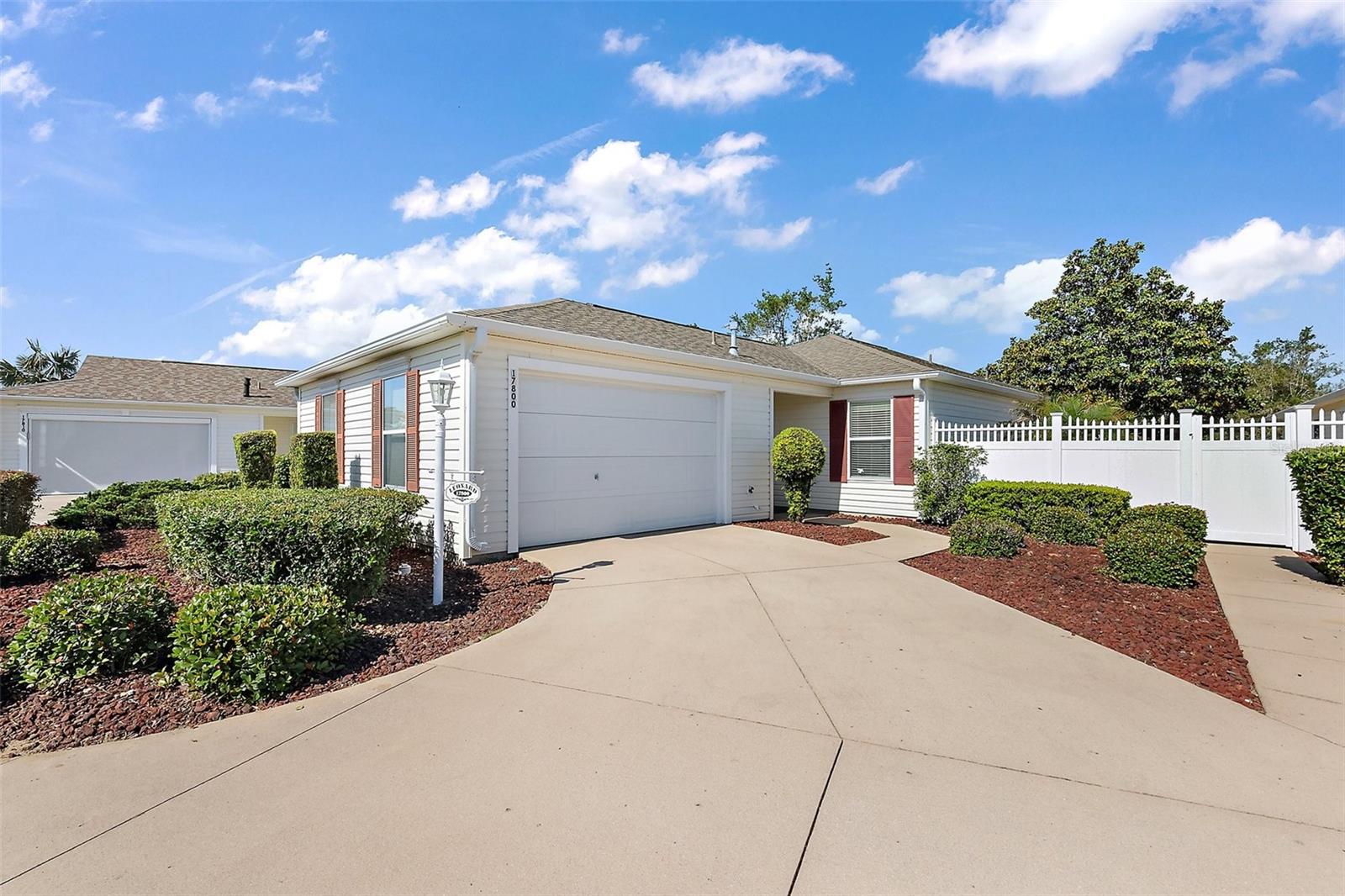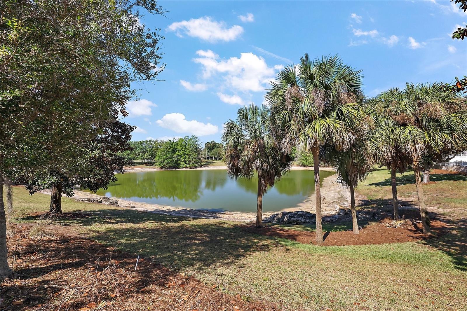 Welcome to this WATERFRONT 2/2 Marathon Courtyard Villa with a fully fenced yard in the Village of Springdale. You will love the exceptional water views! OFFERED TURNKEY. BOND PAID. NEWER ROOF 2022. NEW HVAC 2025 (10-year warranty). NEWER Water Heater 2018. Enhanced landscaping creates exceptional curb appeal, setting the tone for the updated interior filled with natural light and thoughtful design. Step inside to find an open floor plan—ideal for both everyday living and entertaining. The kitchen features WHITE CABINETRY, UPDATED STAINLESS STEEL APPLIANCES, GAS COOKING, a window over the sink, and a convenient breakfast bar, making it both functional and inviting. The dining room includes a classic chandelier and sliding glass doors to the side patio, perfect for grilling or enjoying morning coffee. The spacious living room offers its own sliding glass doors to the lanai, bringing in the tranquil water view and extending your living space outdoors. The primary bedroom is a cozy retreat with sliding glass doors to the lanai, a walk-in closet, and an en suite bathroom with a walk-in shower. Bedroom 2 includes a built-in closet, while the guest bath provides a tub/shower and extended vanity space for comfort and convenience. The spacious lanai and patio area are surrounded by enhanced landscaping, creating a beautiful and private outdoor living experience ideal for entertaining or enjoying the WATER VIEWS. The garage includes an electronic garage door opener, attic storage space, and a utility sink. The Village of Springdale is ideally located near Nancy Lopez Legacy and Glenview Country Clubs and Championship Golf Courses, Mulberry Regional Recreation Center, VA Administration, Savannah Regional Recreation Center, Springdale Walking Trail, Mulberry Dog Park, neighborhood pools, pickleball, tennis, bocce, shuffleboard, and a variety of shopping and dining options. PLEASE WATCH OUR WALKTHROUGH VIDEO OF THIS UPDATED HOME IN A FANTASTIC LOCATION, and CALL TODAY for your private showing or virtual tour!