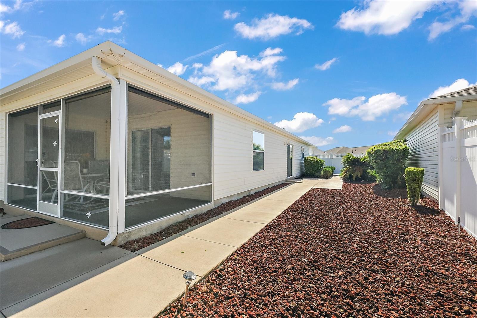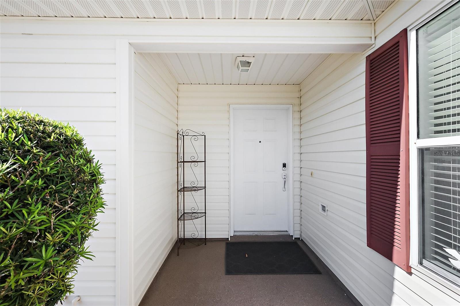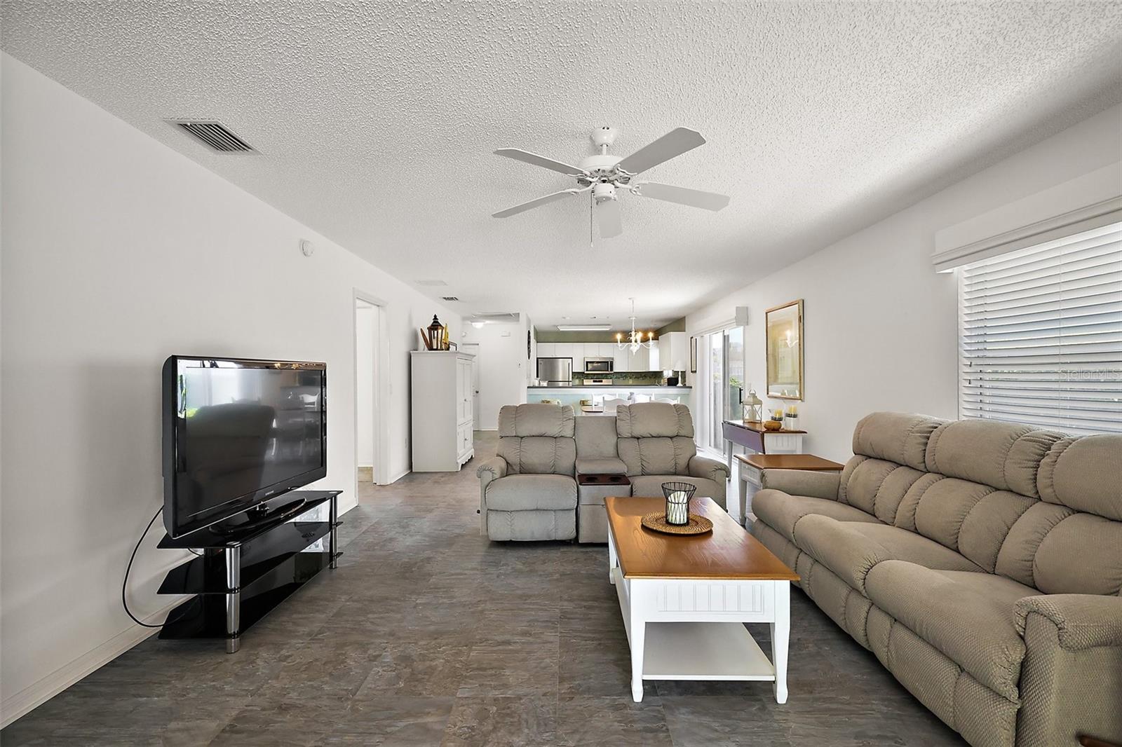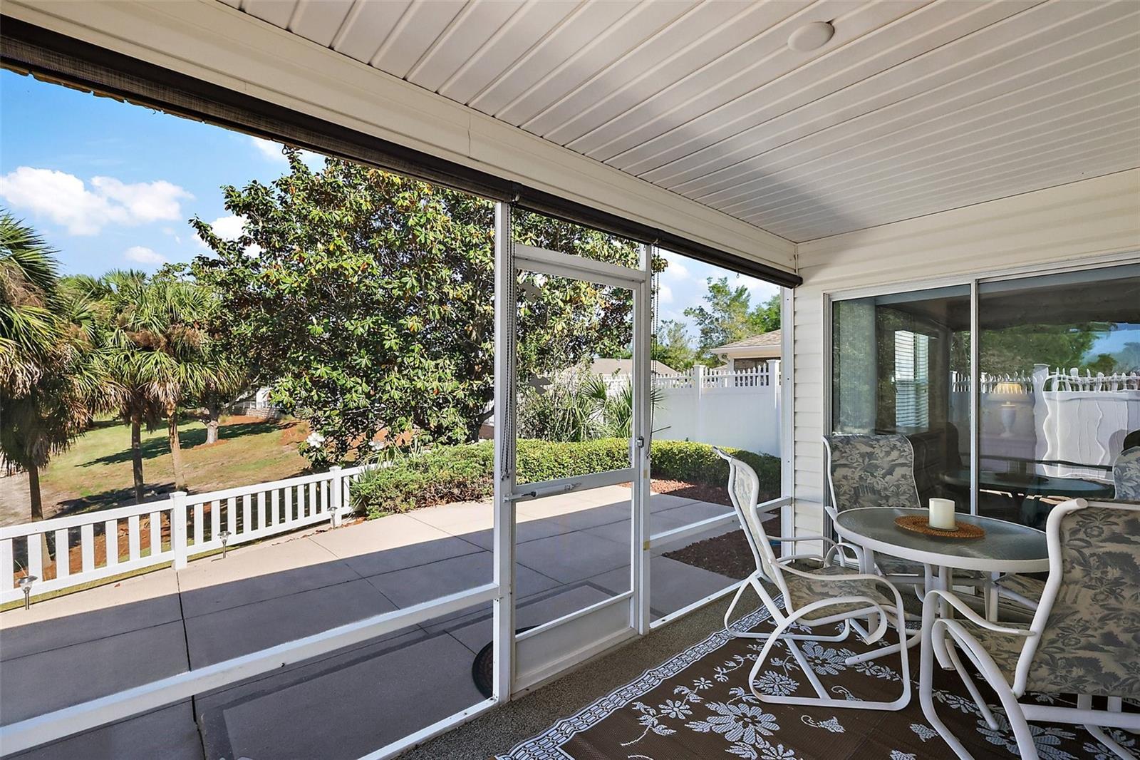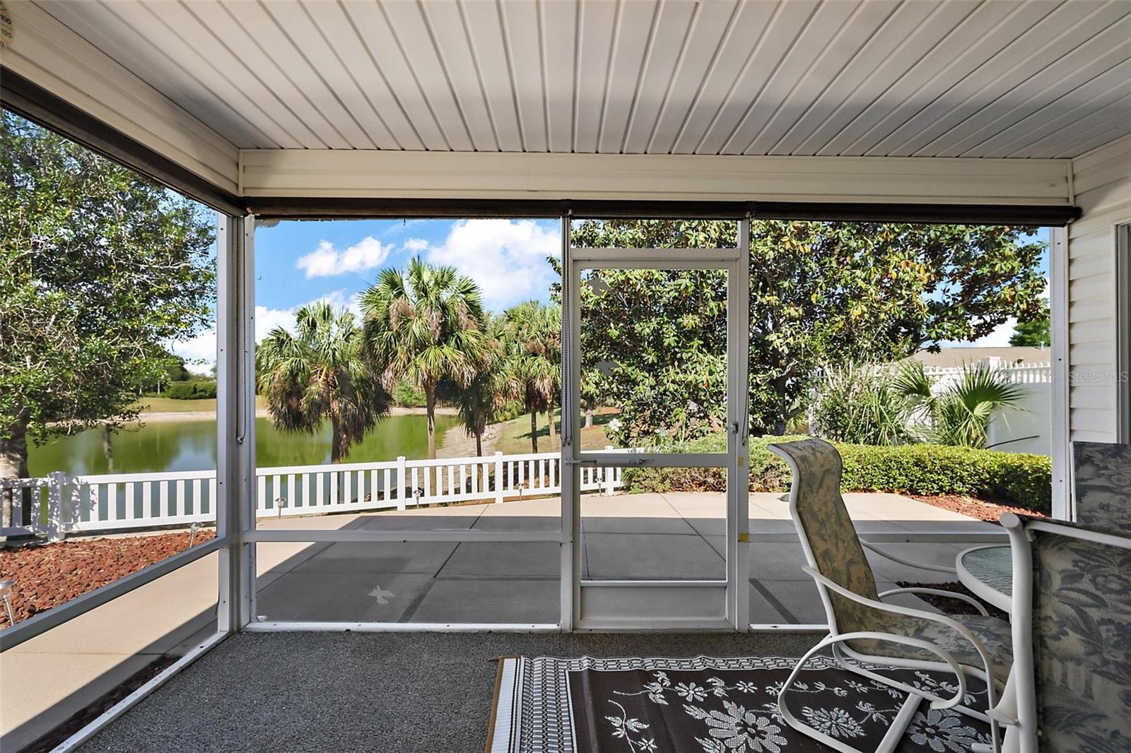 Welcome to this WATERFRONT 2/2 Marathon Courtyard Villa with a fully fenced yard in the Village of Springdale. You will love the exceptional water views! OFFERED TURNKEY. BOND PAID. NEWER ROOF 2022. NEW HVAC 2025 (10-year warranty). NEWER Water Heater 2018. Enhanced landscaping creates exceptional curb appeal, setting the tone for the updated interior filled with natural light and thoughtful design. Step inside to find an open floor plan—ideal for both everyday living and entertaining. The kitchen features WHITE CABINETRY, UPDATED STAINLESS STEEL APPLIANCES, GAS COOKING, a window over the sink, and a convenient breakfast bar, making it both functional and inviting. The dining room includes a classic chandelier and sliding glass doors to the side patio, perfect for grilling or enjoying morning coffee. The spacious living room offers its own sliding glass doors to the lanai, bringing in the tranquil water view and extending your living space outdoors. The primary bedroom is a cozy retreat with sliding glass doors to the lanai, a walk-in closet, and an en suite bathroom with a walk-in shower. Bedroom 2 includes a built-in closet, while the guest bath provides a tub/shower and extended vanity space for comfort and convenience. The spacious lanai and patio area are surrounded by enhanced landscaping, creating a beautiful and private outdoor living experience ideal for entertaining or enjoying the WATER VIEWS. The garage includes an electronic garage door opener, attic storage space, and a utility sink. The Village of Springdale is ideally located near Nancy Lopez Legacy and Glenview Country Clubs and Championship Golf Courses, Mulberry Regional Recreation Center, VA Administration, Savannah Regional Recreation Center, Springdale Walking Trail, Mulberry Dog Park, neighborhood pools, pickleball, tennis, bocce, shuffleboard, and a variety of shopping and dining options. PLEASE WATCH OUR WALKTHROUGH VIDEO OF THIS UPDATED HOME IN A FANTASTIC LOCATION, and CALL TODAY for your private showing or virtual tour!