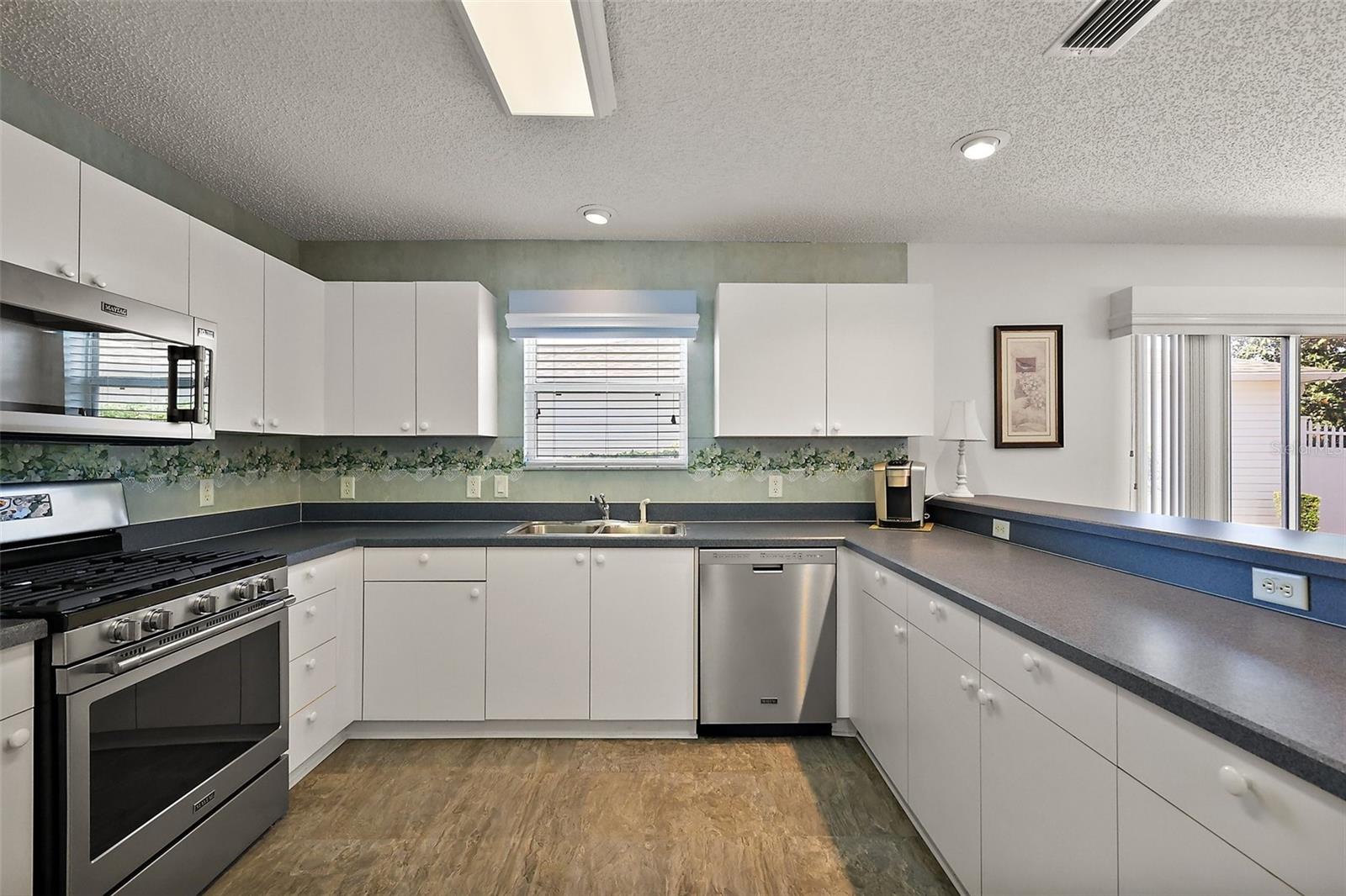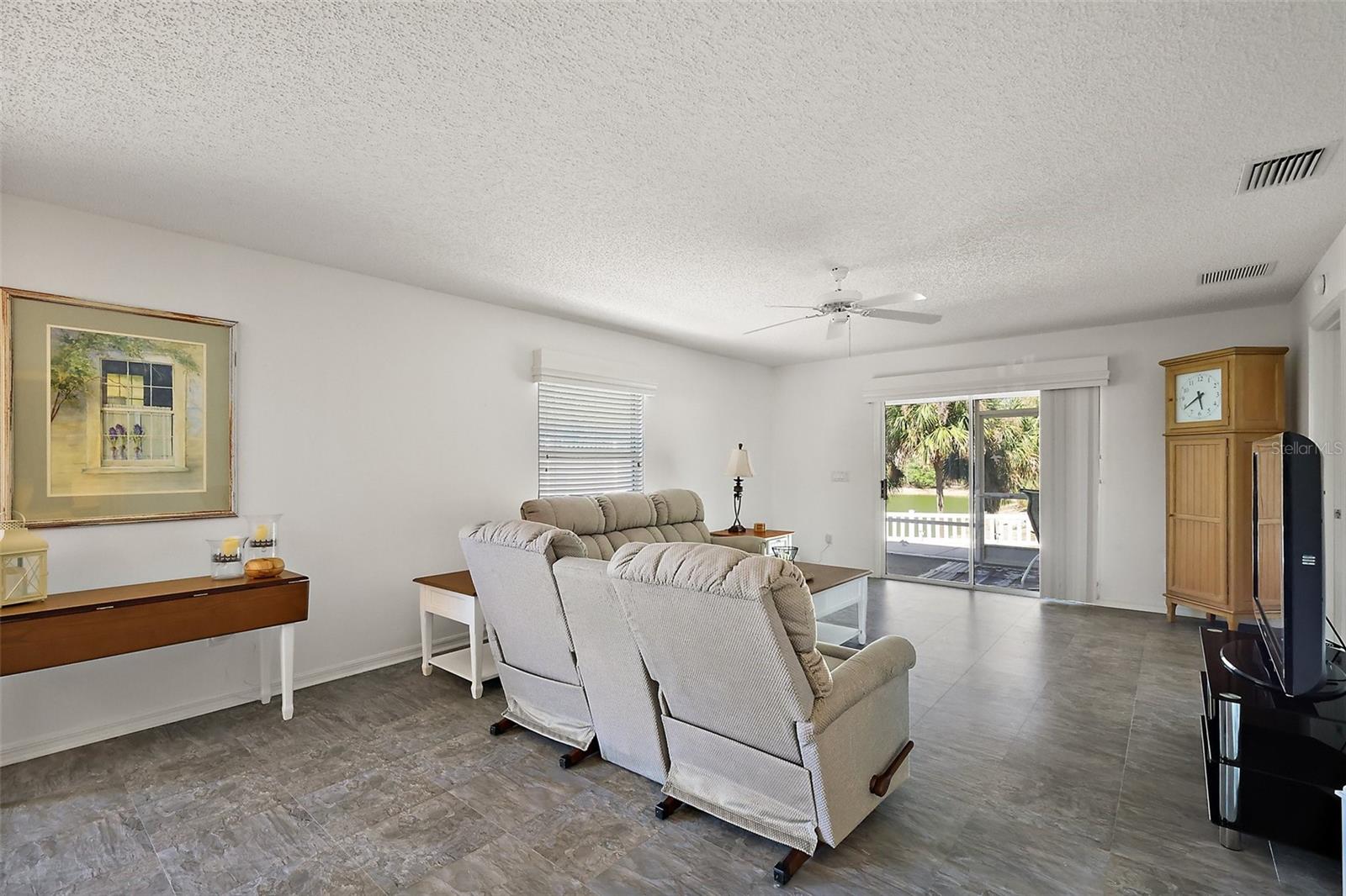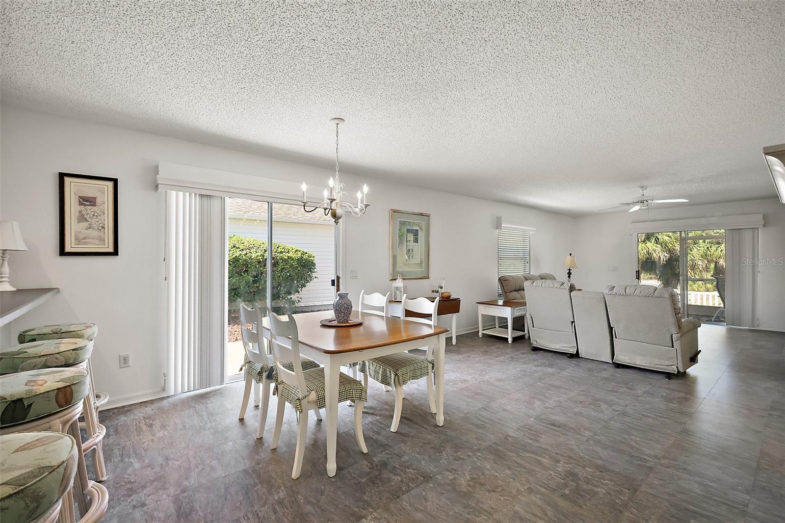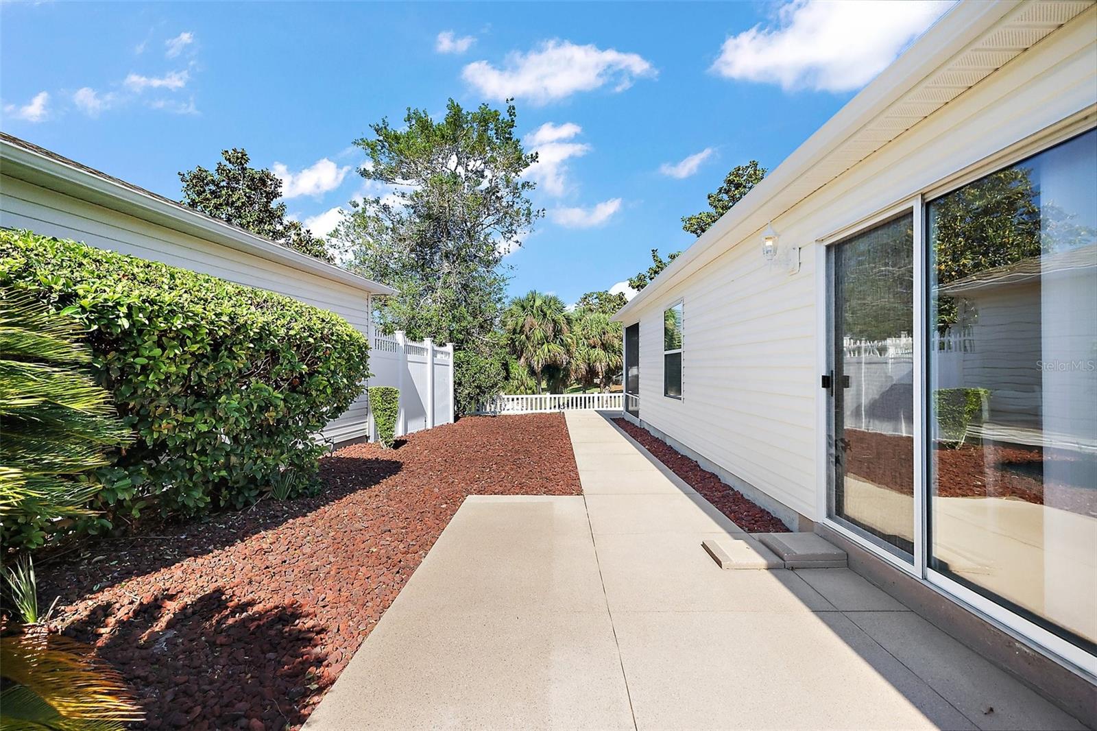 Welcome to this WATERFRONT 2/2 Marathon Courtyard Villa with a fully fenced yard in the Village of Springdale. You will love the exceptional water views! OFFERED TURNKEY. BOND PAID. NEWER ROOF 2022. NEW HVAC 2025 (10-year warranty). NEWER Water Heater 2018. Enhanced landscaping creates exceptional curb appeal, setting the tone for the updated interior filled with natural light and thoughtful design. Step inside to find an open floor plan—ideal for both everyday living and entertaining. The kitchen features WHITE CABINETRY, UPDATED STAINLESS STEEL APPLIANCES, GAS COOKING, a window over the sink, and a convenient breakfast bar, making it both functional and inviting. The dining room includes a classic chandelier and sliding glass doors to the side patio, perfect for grilling or enjoying morning coffee. The spacious living room offers its own sliding glass doors to the lanai, bringing in the tranquil water view and extending your living space outdoors. The primary bedroom is a cozy retreat with sliding glass doors to the lanai, a walk-in closet, and an en suite bathroom with a walk-in shower. Bedroom 2 includes a built-in closet, while the guest bath provides a tub/shower and extended vanity space for comfort and convenience. The spacious lanai and patio area are surrounded by enhanced landscaping, creating a beautiful and private outdoor living experience ideal for entertaining or enjoying the WATER VIEWS. The garage includes an electronic garage door opener, attic storage space, and a utility sink. The Village of Springdale is ideally located near Nancy Lopez Legacy and Glenview Country Clubs and Championship Golf Courses, Mulberry Regional Recreation Center, VA Administration, Savannah Regional Recreation Center, Springdale Walking Trail, Mulberry Dog Park, neighborhood pools, pickleball, tennis, bocce, shuffleboard, and a variety of shopping and dining options. PLEASE WATCH OUR WALKTHROUGH VIDEO OF THIS UPDATED HOME IN A FANTASTIC LOCATION, and CALL TODAY for your private showing or virtual tour!