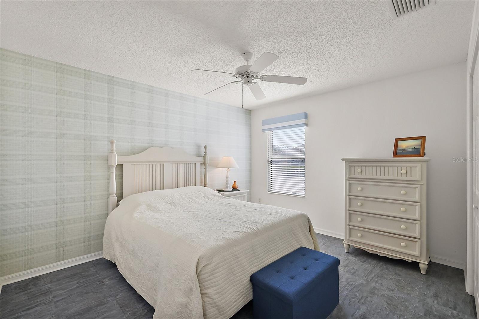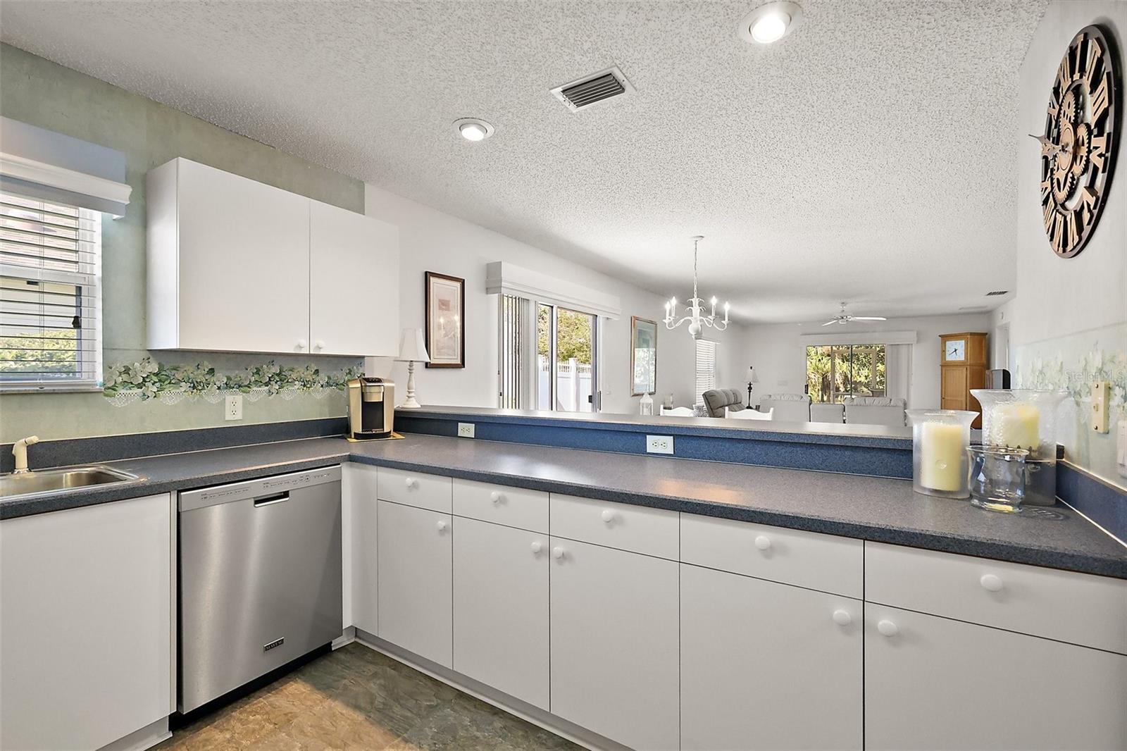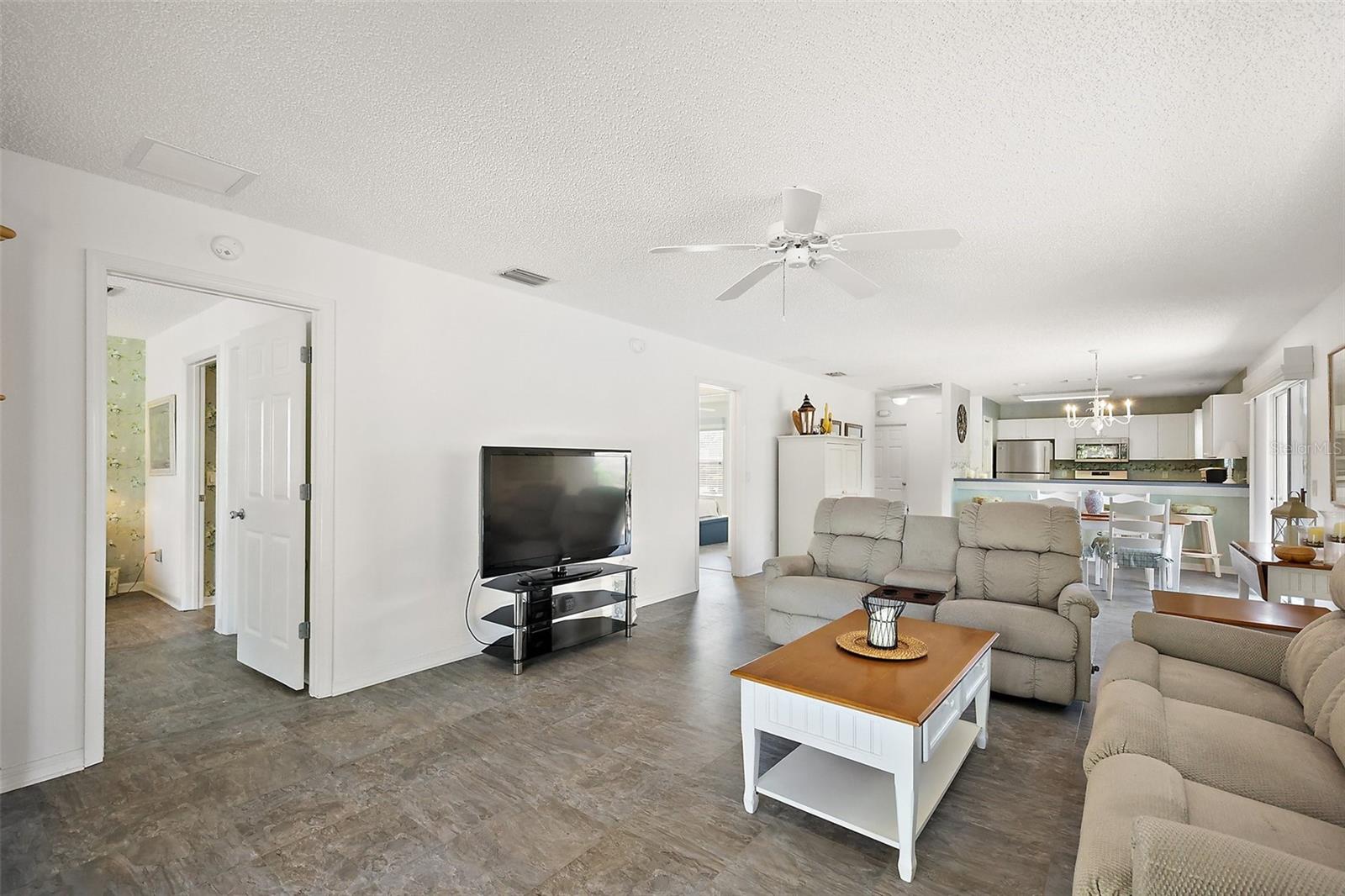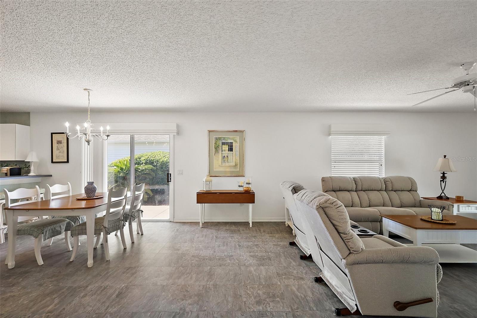 Welcome to this WATERFRONT 2/2 Marathon Courtyard Villa with a fully fenced yard in the Village of Springdale. You will love the exceptional water views! OFFERED TURNKEY. BOND PAID. NEWER ROOF 2022. NEW HVAC 2025 (10-year warranty). NEWER Water Heater 2018. Enhanced landscaping creates exceptional curb appeal, setting the tone for the updated interior filled with natural light and thoughtful design. Step inside to find an open floor plan—ideal for both everyday living and entertaining. The kitchen features WHITE CABINETRY, UPDATED STAINLESS STEEL APPLIANCES, GAS COOKING, a window over the sink, and a convenient breakfast bar, making it both functional and inviting. The dining room includes a classic chandelier and sliding glass doors to the side patio, perfect for grilling or enjoying morning coffee. The spacious living room offers its own sliding glass doors to the lanai, bringing in the tranquil water view and extending your living space outdoors. The primary bedroom is a cozy retreat with sliding glass doors to the lanai, a walk-in closet, and an en suite bathroom with a walk-in shower. Bedroom 2 includes a built-in closet, while the guest bath provides a tub/shower and extended vanity space for comfort and convenience. The spacious lanai and patio area are surrounded by enhanced landscaping, creating a beautiful and private outdoor living experience ideal for entertaining or enjoying the WATER VIEWS. The garage includes an electronic garage door opener, attic storage space, and a utility sink. The Village of Springdale is ideally located near Nancy Lopez Legacy and Glenview Country Clubs and Championship Golf Courses, Mulberry Regional Recreation Center, VA Administration, Savannah Regional Recreation Center, Springdale Walking Trail, Mulberry Dog Park, neighborhood pools, pickleball, tennis, bocce, shuffleboard, and a variety of shopping and dining options. PLEASE WATCH OUR WALKTHROUGH VIDEO OF THIS UPDATED HOME IN A FANTASTIC LOCATION, and CALL TODAY for your private showing or virtual tour!