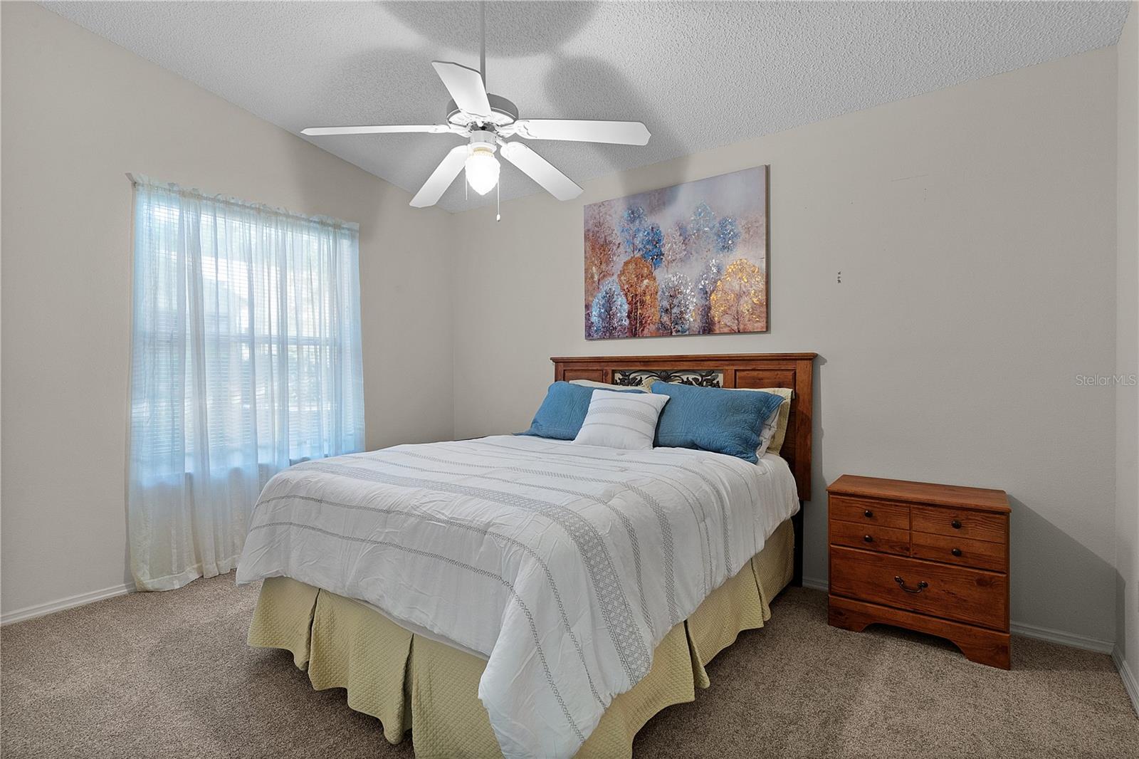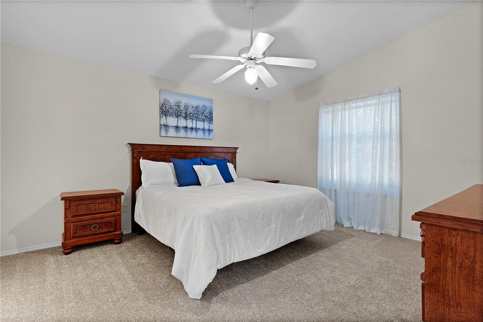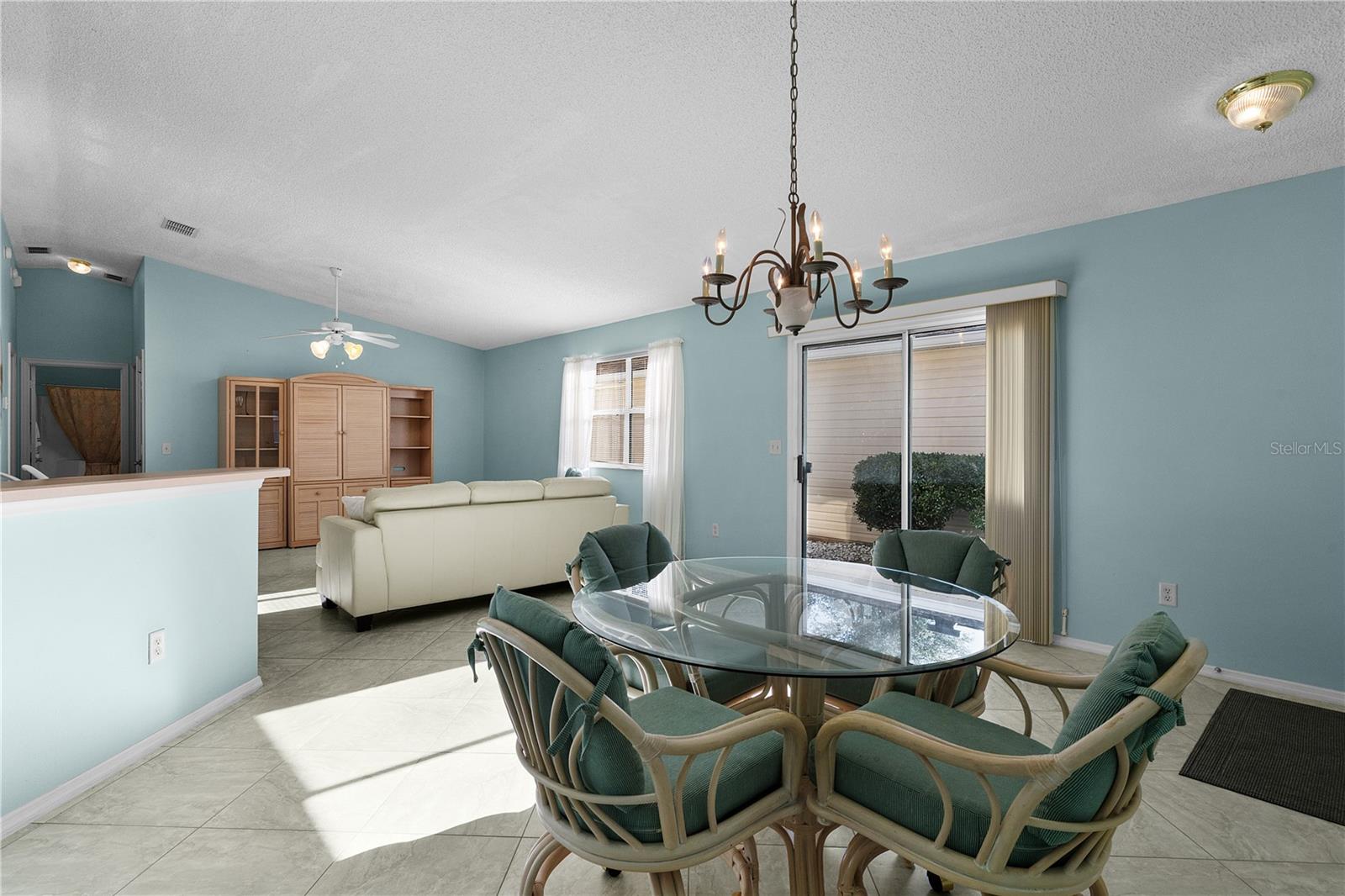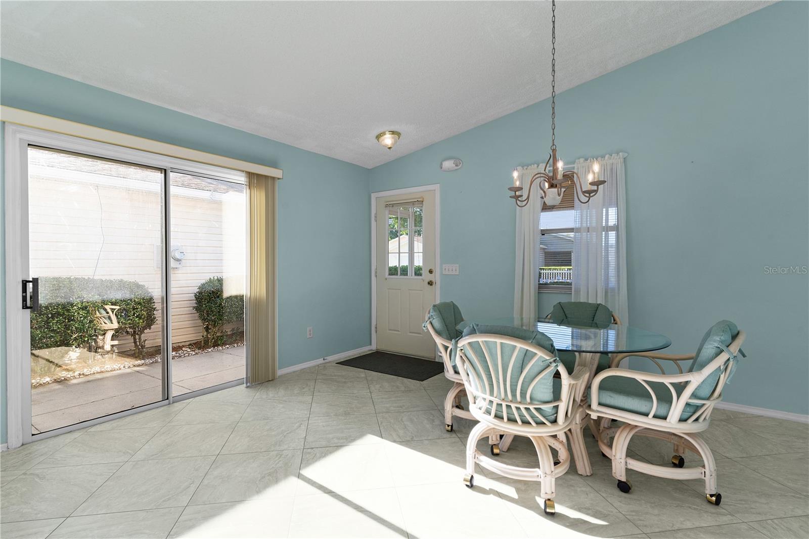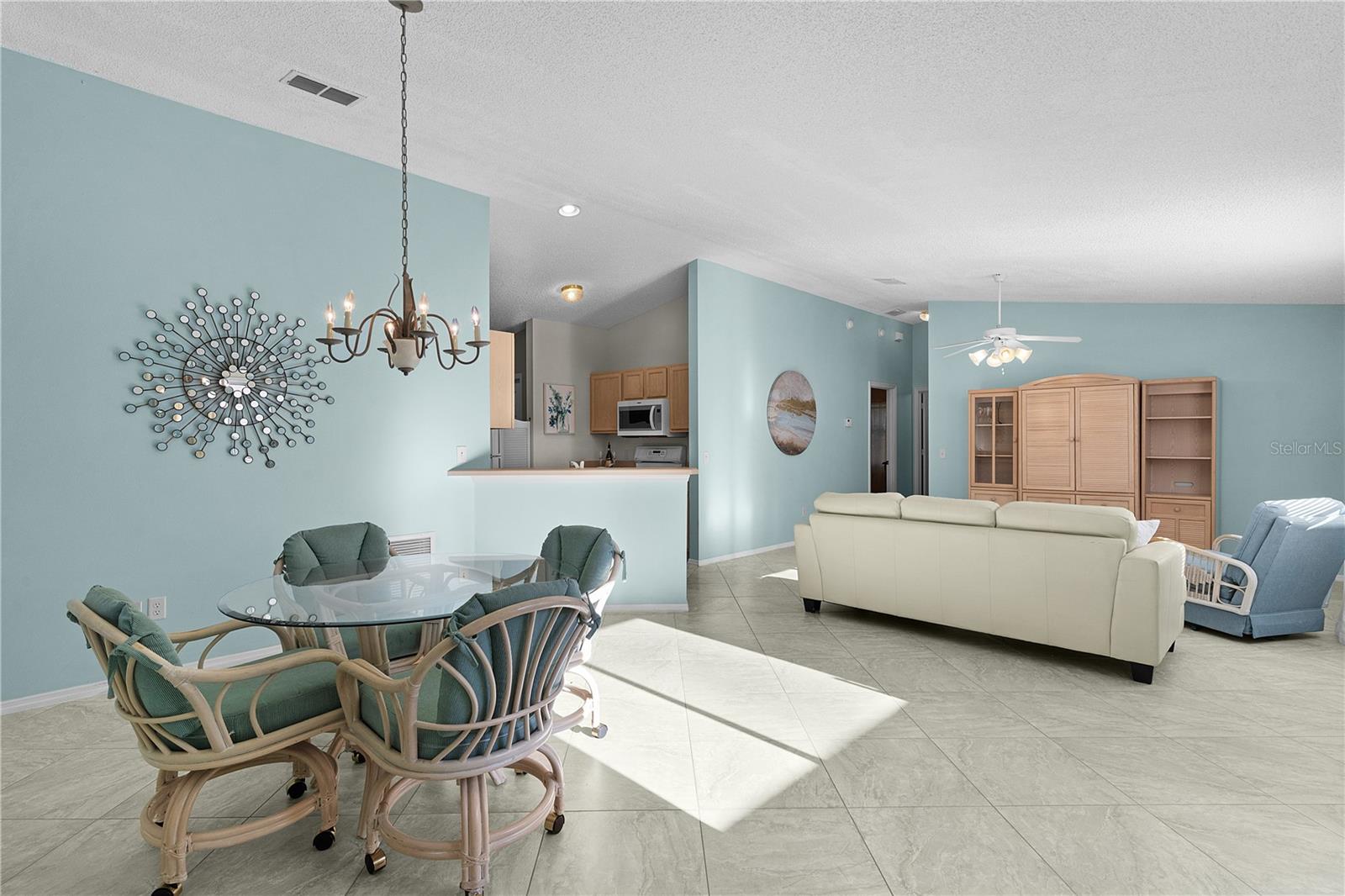 BOND PAID! TURNKEY! Welcome to this charming 2-bedroom, 2-bath Cabot Cove Patio Villa located in the desirable Ivy Stone Villas in The Village of Woodbury. Step through the screened front lanai into a spacious open-concept living and dining area featuring vaulted ceilings and tile flooring installed in 2017. Sliding glass doors open to the side patio, perfect space for grilling or outdoor seating. The kitchen offers ample counter and cabinet space to meet all your culinary needs, and just off the kitchen, you’ll find a convenient indoor laundry room with a large pantry. Access the 1.5-car garage—perfectly sized for your vehicle and golf cart. The primary suite includes vaulted ceilings, a generous walk-in closet, and an ensuite bathroom with a walk-in shower. The guest bedroom features double-door closet space and is ideal for visitors, complete with brand-new carpet in both bedrooms. The guest bath features a tub and shower combination and is conveniently located. Storage can be found in the linen closet just outside the guest bath. Enjoy being ideally situated between Spanish Springs and Lake Sumter Landing, just minutes from top dining, shopping, live music, and dancing. You're also just 2 minutes from Nancy Lopez Country Club and The Legacy Restaurant. Surrounded by golf courses and multiple neighborhood pools, this villa offers the ultimate Villages lifestyle. Roof 2020 HVAC 2024. Come make this your next home!