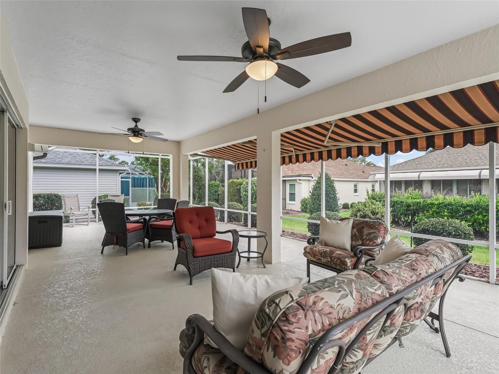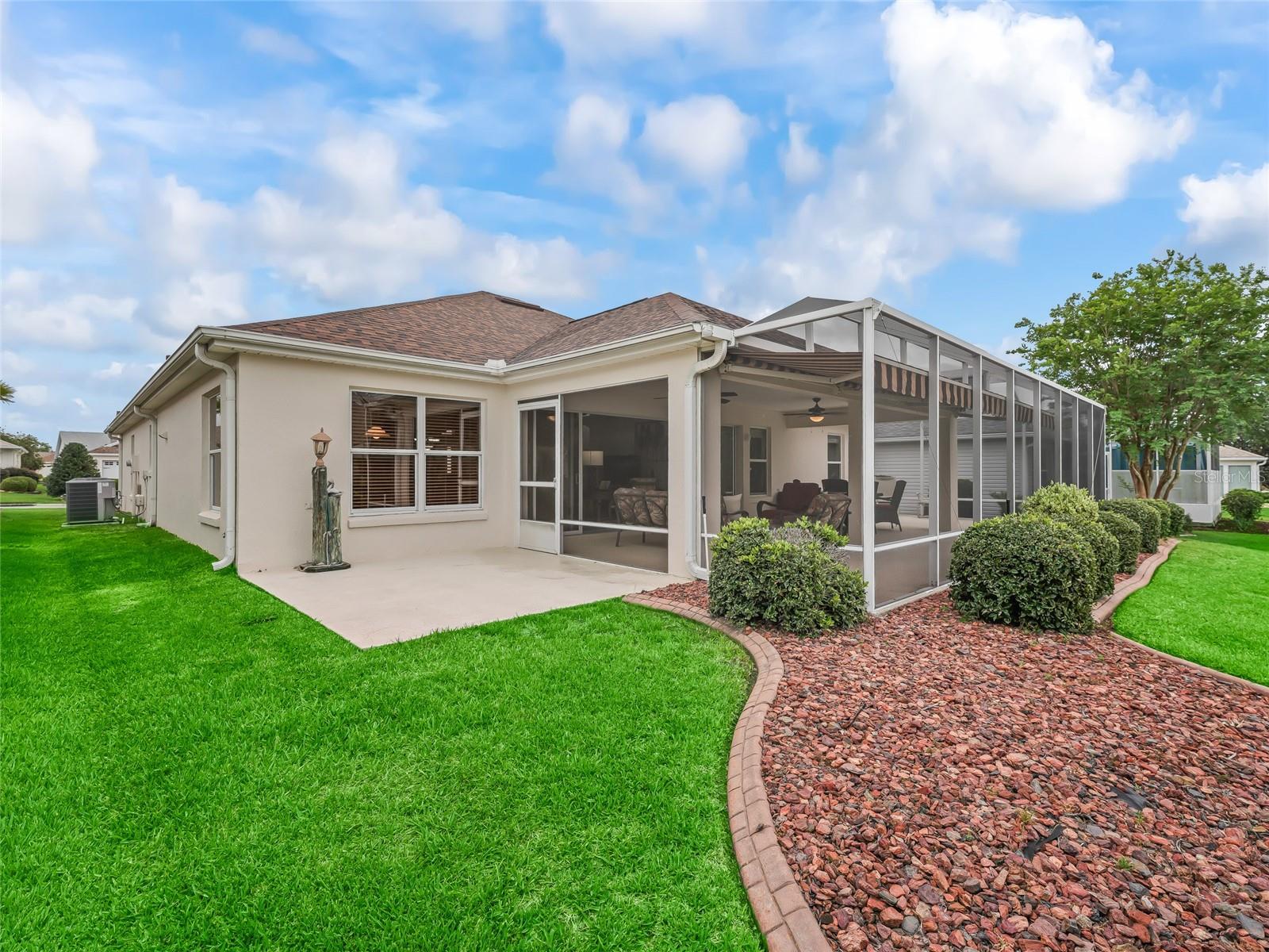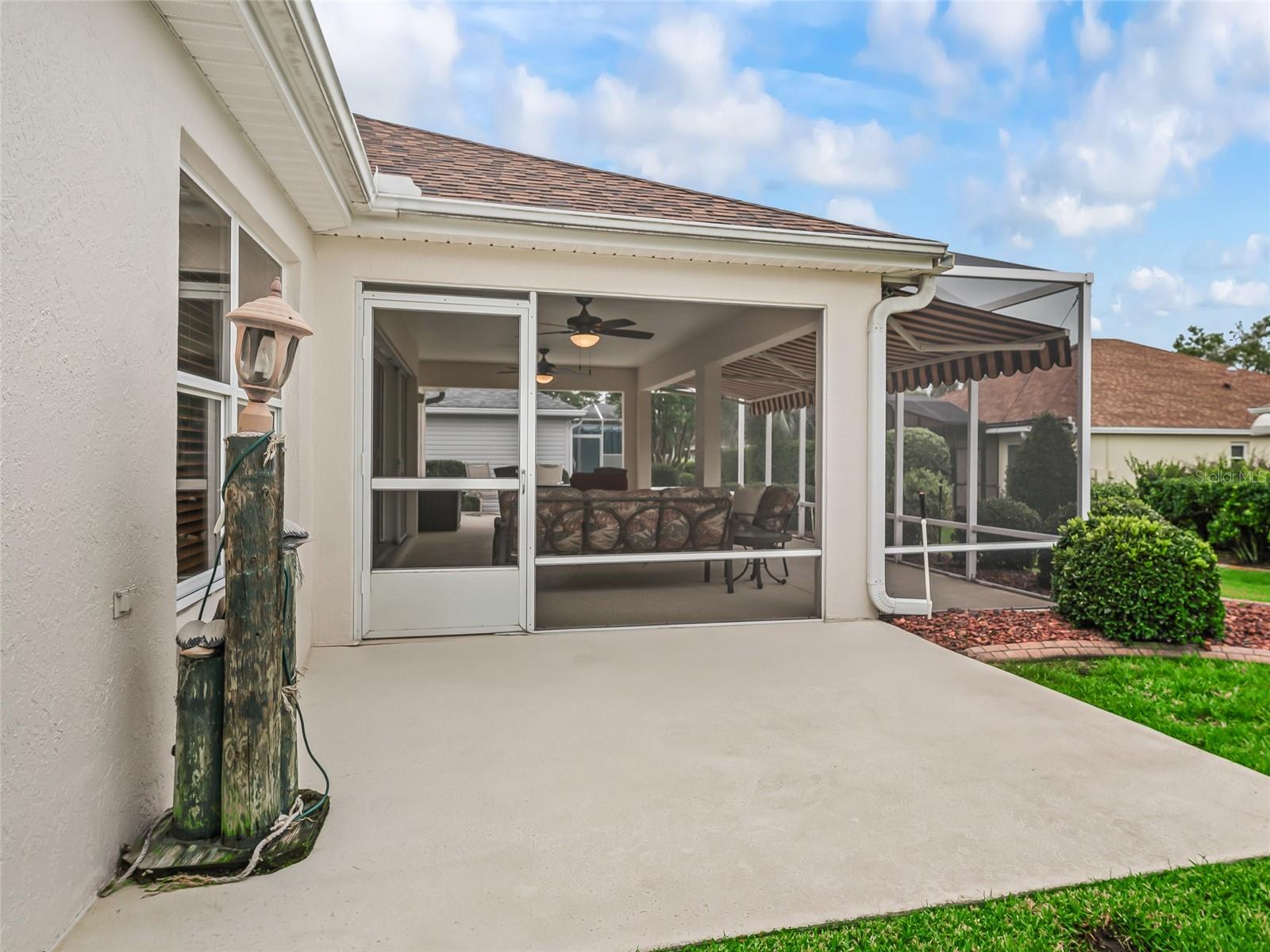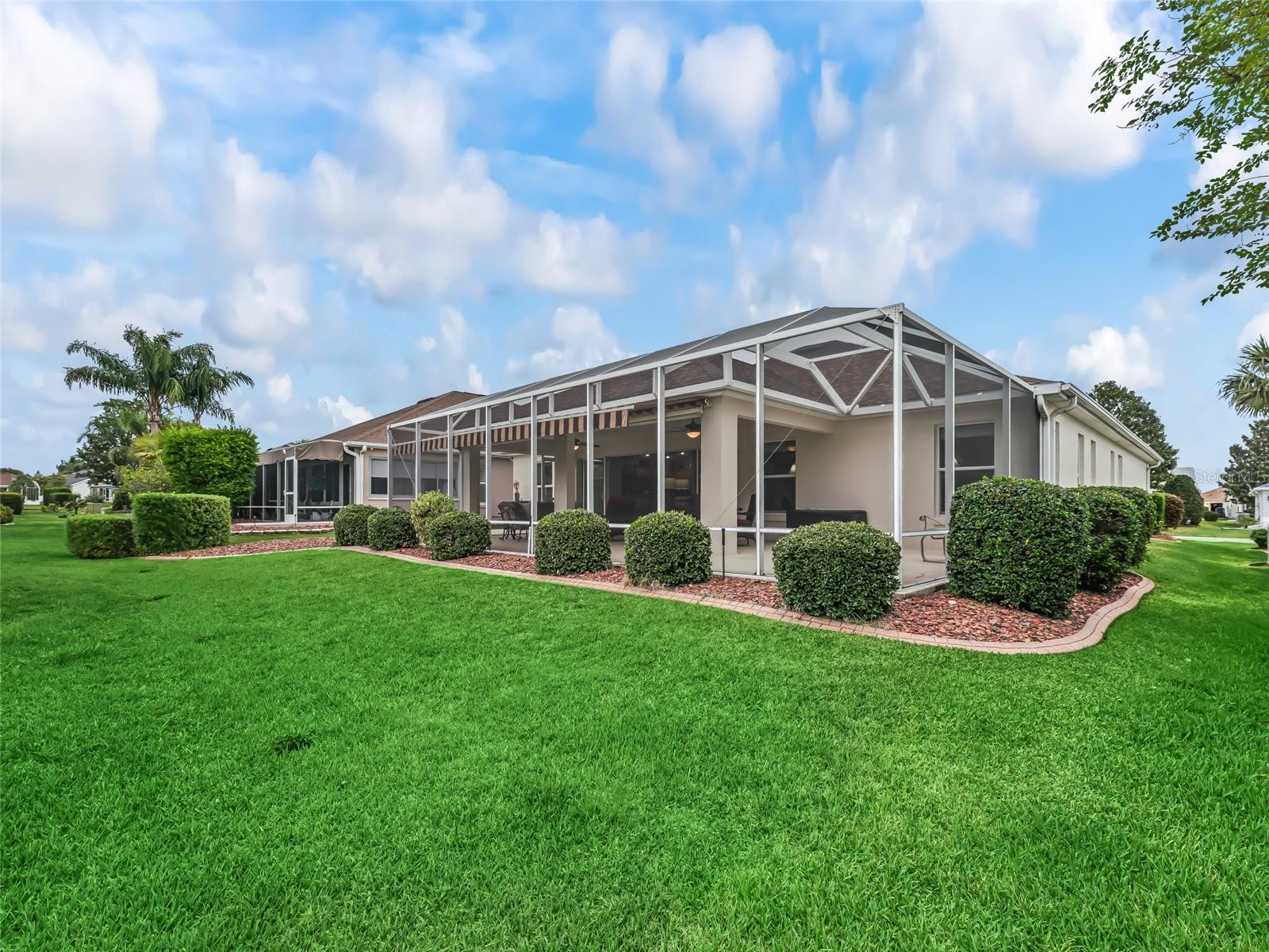 NO BOND. Nestled near the end of a quiet cul-de-sac in the desirable Village of Piedmont, this meticulously maintained one-owner home offers privacy, space, and thoughtful upgrades throughout. Boasting 2,004 SF of living space, this sought-after BLOCK & STUCCO Lantana/Live Oak DESIGNER model sits on an EXTENDED LOT that's 10' DEEPER than standard—plenty of room to enjoy the Florida lifestyle! Step inside to find NO POPCORN ceilings, elegant ROUNDED drywall CORNERS, and beautiful DIAGONAL TILE in the living and wet areas, creating a clean, modern feel. A stand-out feature is the HUGE GLASS DISAPPEARING SLIDER DOORS for and open air concept into the SPACIOUS LANAI! The lanai/ BIRDCAGE (18’ x 38’) feature a new screen enclosure (2022) and an ELECTRIC AWNING—perfect for relaxing any time of day in the shade. The kitchen boasts NEW STAINLESS STEEL appliances (2024), CROWNED HICKORY CABINETS with PULLOUTS, and a gorgeous TILE BACKSPLASH. The garage is extended 2 feet, complete with an EPOXY floor, while the driveway and walkway have been tastefully upgraded with textured paint for added CURB APPEAL. Major updates include: Roof replaced in 2020 HVAC system in 2017 Exterior painted in 2019 This home is truly move-in ready and has been lovingly cared for. Don’t miss your chance to own a piece of paradise in The Villages—schedule your private showing today!