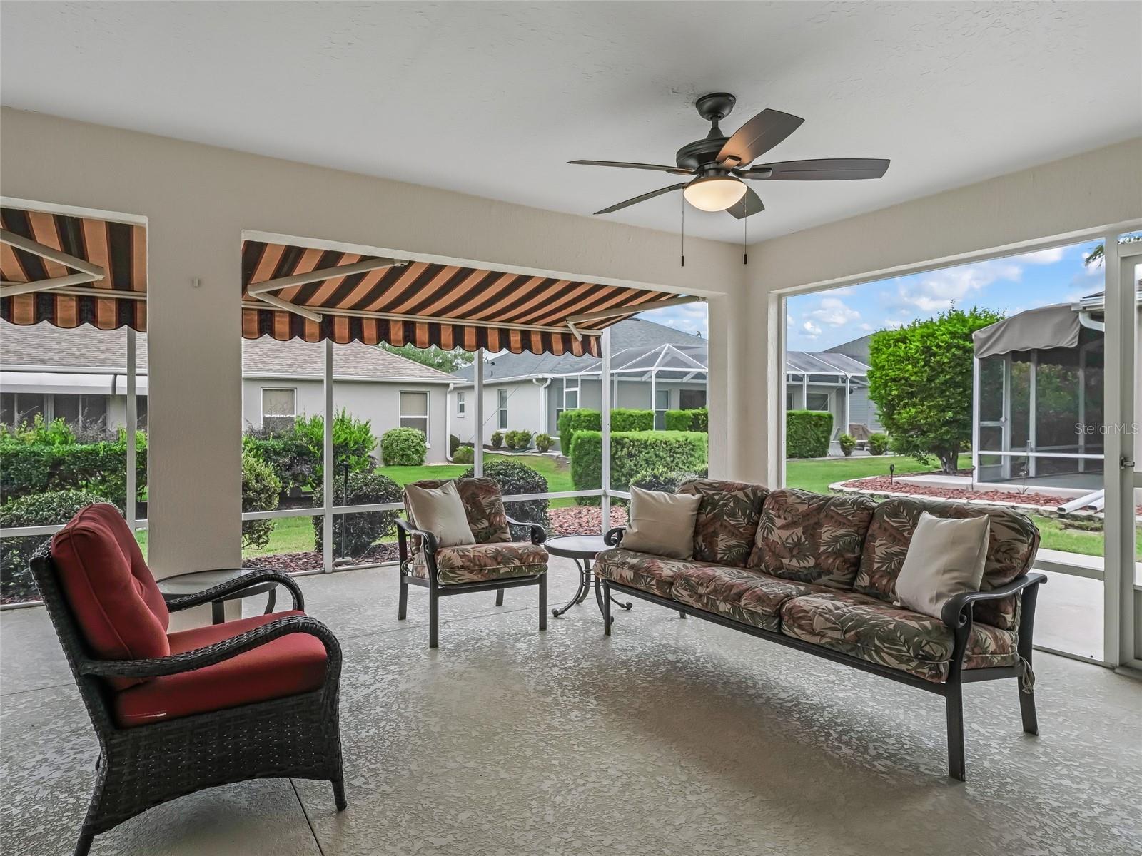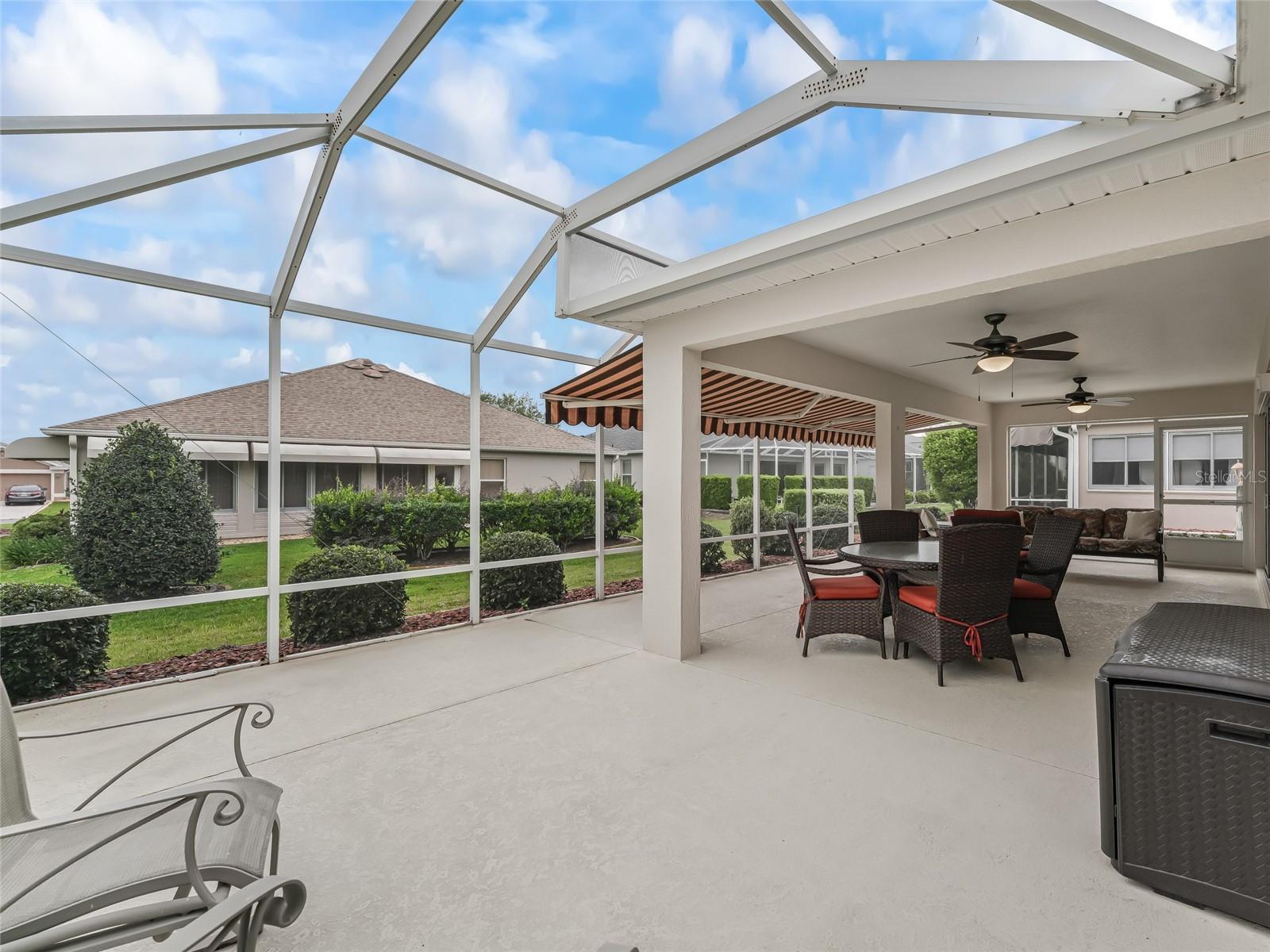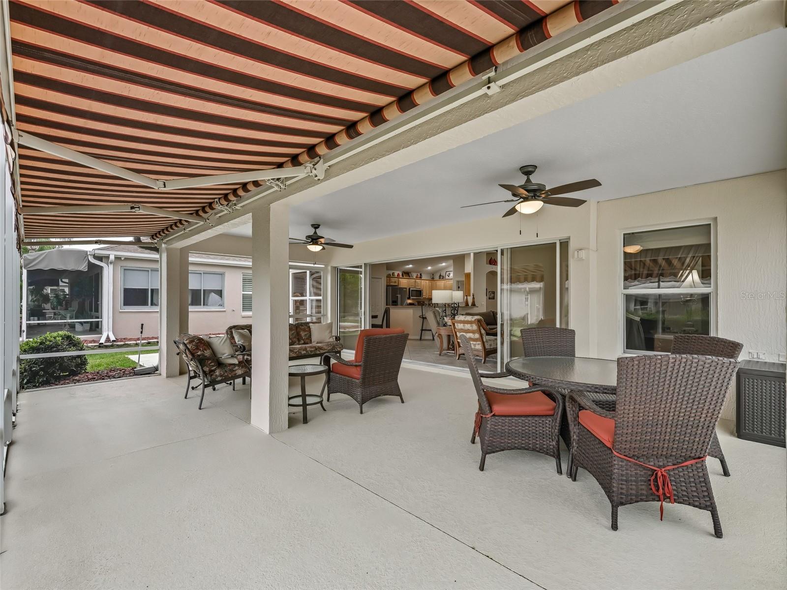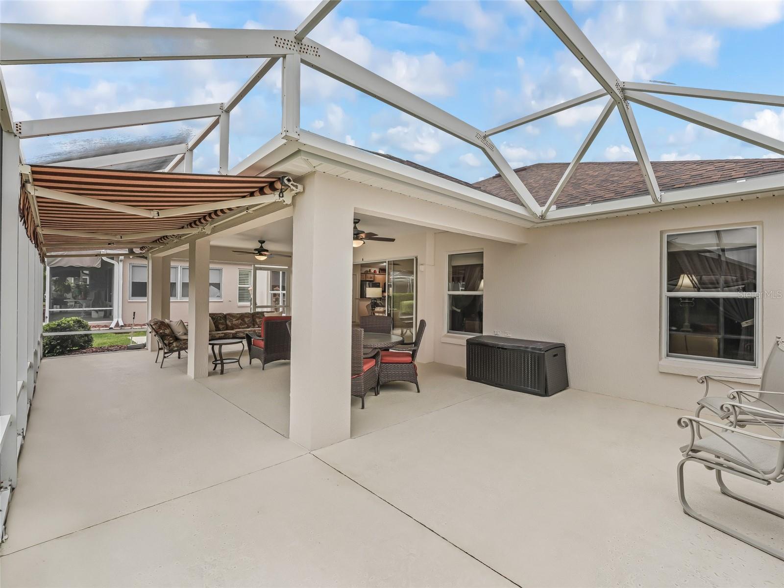 NO BOND. Nestled near the end of a quiet cul-de-sac in the desirable Village of Piedmont, this meticulously maintained one-owner home offers privacy, space, and thoughtful upgrades throughout. Boasting 2,004 SF of living space, this sought-after BLOCK & STUCCO Lantana/Live Oak DESIGNER model sits on an EXTENDED LOT that's 10' DEEPER than standard—plenty of room to enjoy the Florida lifestyle! Step inside to find NO POPCORN ceilings, elegant ROUNDED drywall CORNERS, and beautiful DIAGONAL TILE in the living and wet areas, creating a clean, modern feel. A stand-out feature is the HUGE GLASS DISAPPEARING SLIDER DOORS for and open air concept into the SPACIOUS LANAI! The lanai/ BIRDCAGE (18’ x 38’) feature a new screen enclosure (2022) and an ELECTRIC AWNING—perfect for relaxing any time of day in the shade. The kitchen boasts NEW STAINLESS STEEL appliances (2024), CROWNED HICKORY CABINETS with PULLOUTS, and a gorgeous TILE BACKSPLASH. The garage is extended 2 feet, complete with an EPOXY floor, while the driveway and walkway have been tastefully upgraded with textured paint for added CURB APPEAL. Major updates include: Roof replaced in 2020 HVAC system in 2017 Exterior painted in 2019 This home is truly move-in ready and has been lovingly cared for. Don’t miss your chance to own a piece of paradise in The Villages—schedule your private showing today!