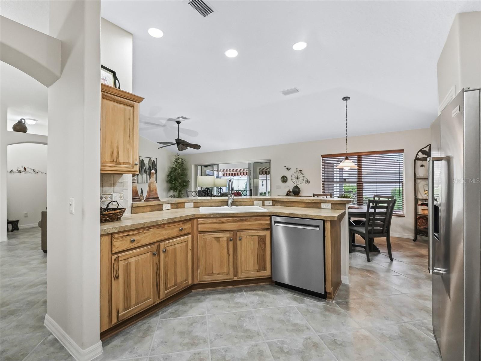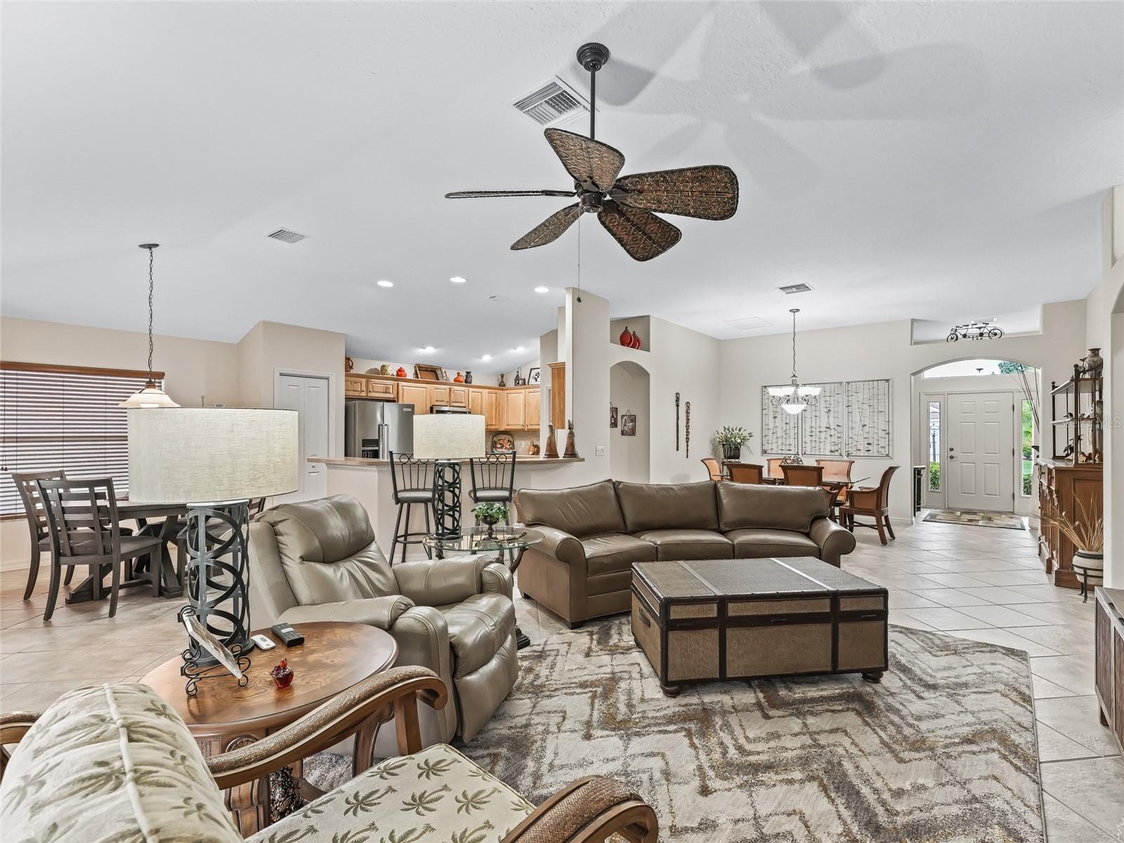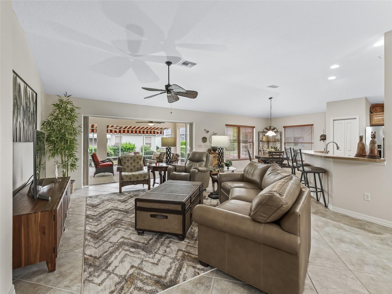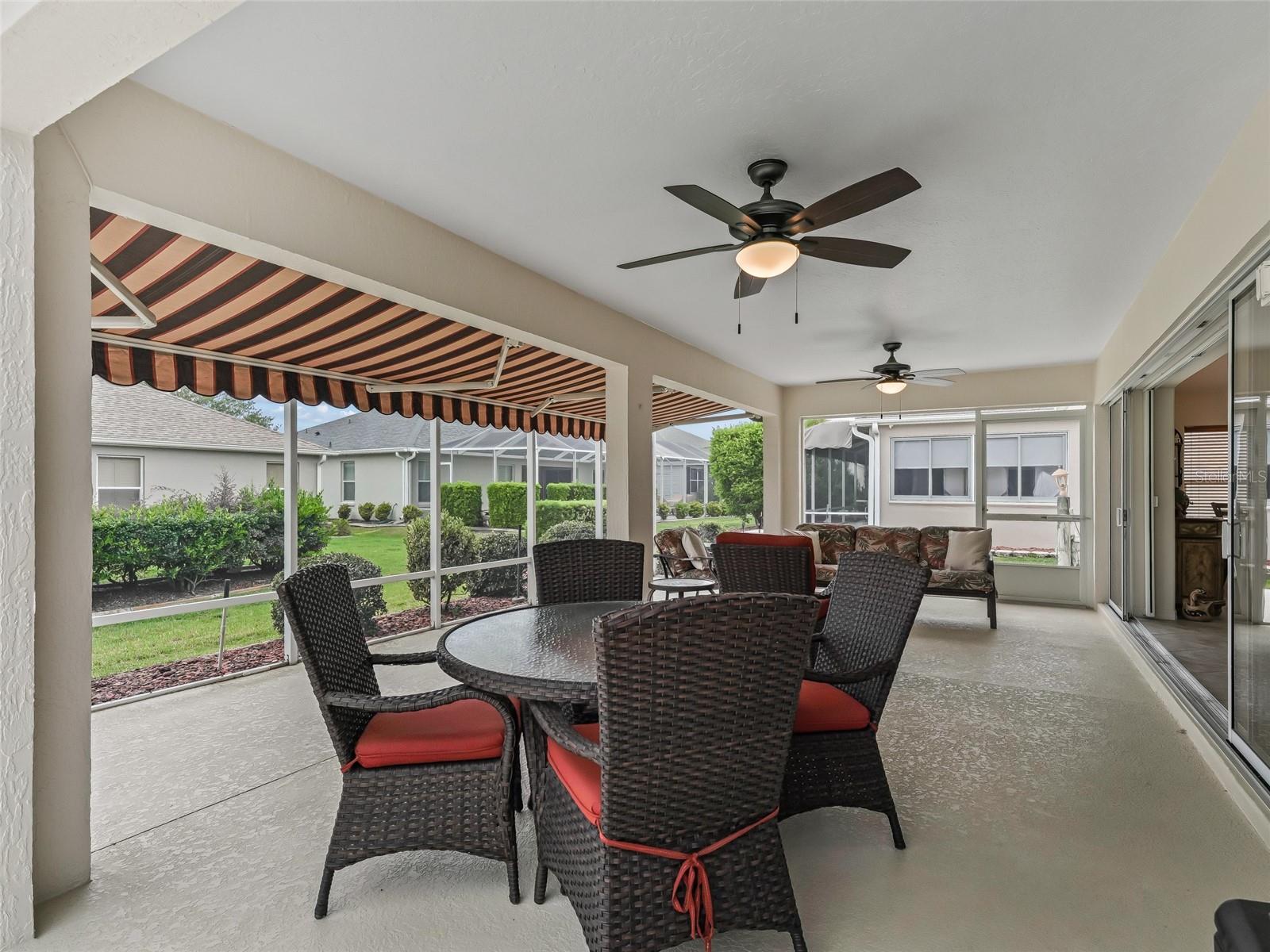 NO BOND. Nestled near the end of a quiet cul-de-sac in the desirable Village of Piedmont, this meticulously maintained one-owner home offers privacy, space, and thoughtful upgrades throughout. Boasting 2,004 SF of living space, this sought-after BLOCK & STUCCO Lantana/Live Oak DESIGNER model sits on an EXTENDED LOT that's 10' DEEPER than standard—plenty of room to enjoy the Florida lifestyle! Step inside to find NO POPCORN ceilings, elegant ROUNDED drywall CORNERS, and beautiful DIAGONAL TILE in the living and wet areas, creating a clean, modern feel. A stand-out feature is the HUGE GLASS DISAPPEARING SLIDER DOORS for and open air concept into the SPACIOUS LANAI! The lanai/ BIRDCAGE (18’ x 38’) feature a new screen enclosure (2022) and an ELECTRIC AWNING—perfect for relaxing any time of day in the shade. The kitchen boasts NEW STAINLESS STEEL appliances (2024), CROWNED HICKORY CABINETS with PULLOUTS, and a gorgeous TILE BACKSPLASH. The garage is extended 2 feet, complete with an EPOXY floor, while the driveway and walkway have been tastefully upgraded with textured paint for added CURB APPEAL. Major updates include: Roof replaced in 2020 HVAC system in 2017 Exterior painted in 2019 This home is truly move-in ready and has been lovingly cared for. Don’t miss your chance to own a piece of paradise in The Villages—schedule your private showing today!
